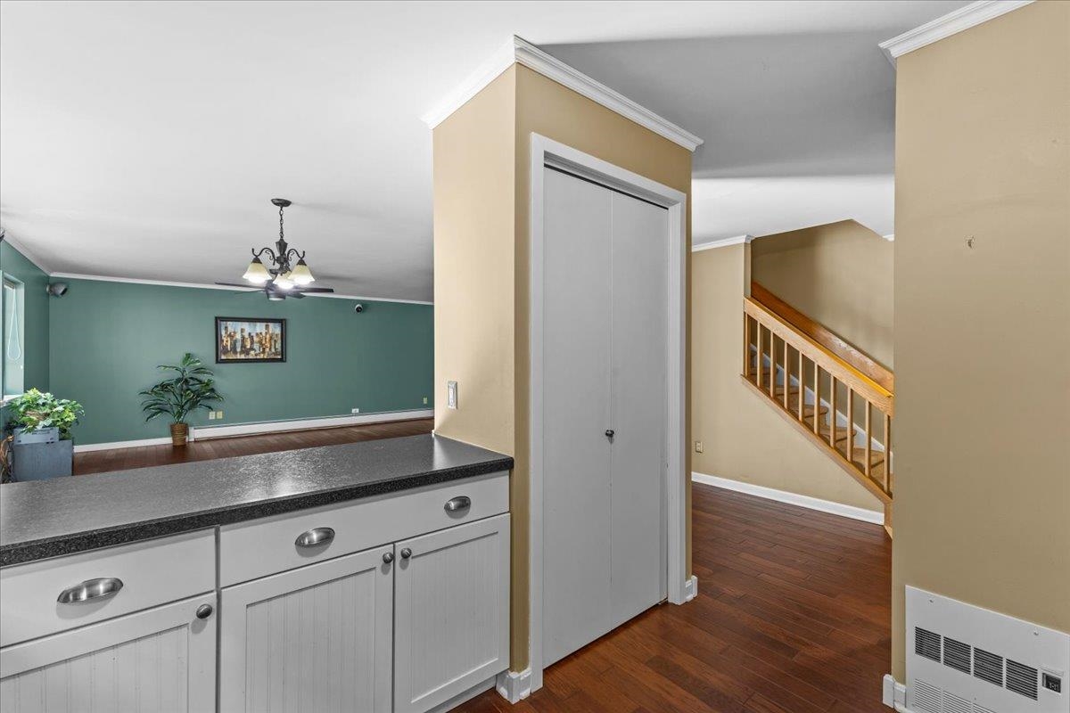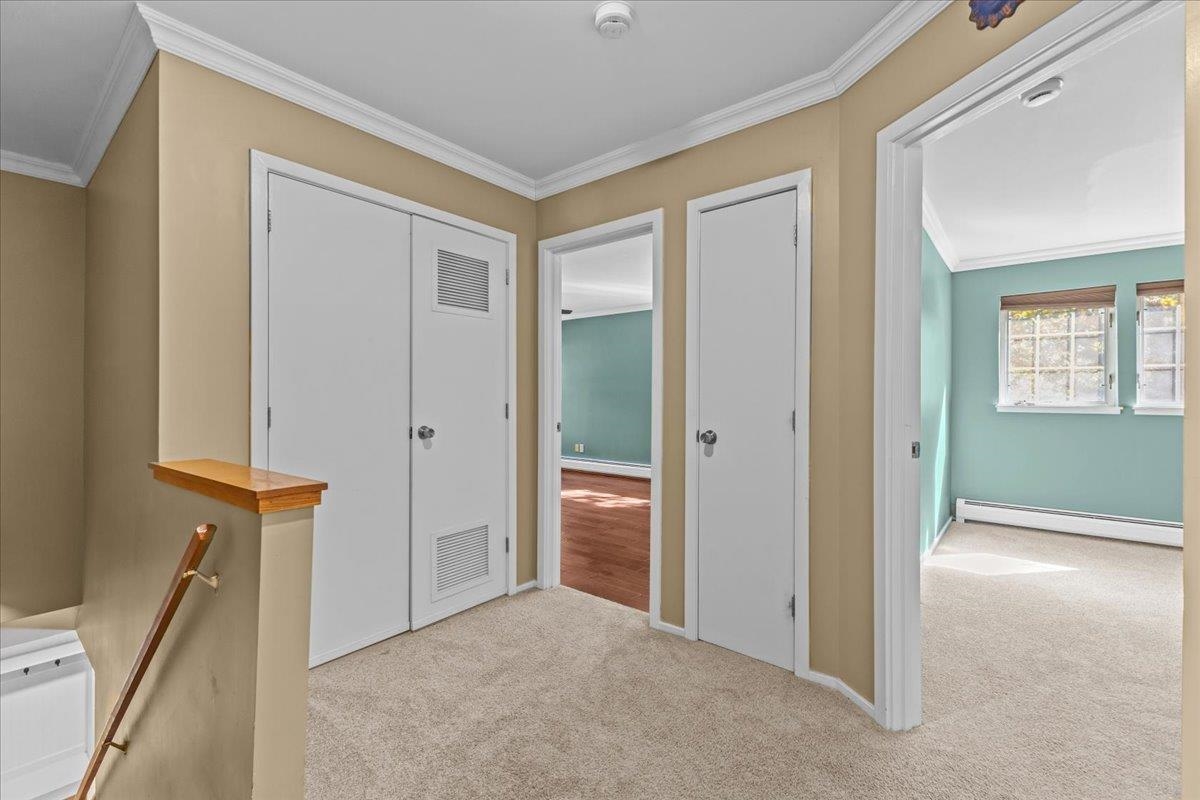 Welcome to this bright and spacious 2-bedroom end unit townhome, tucked away in a prime South Burlington location! Nestled in a peaceful community, this home offers a perfect blend of comfort, convenience, and natural beauty. Come inside to a welcoming foyer complete with hooks and a bench, perfect for organizing coats, boots, and bags. The U-shaped kitchen features a tile backsplash, stainless steel appliances, abundant cabinet space, and a pass-through counter for seamless connection to the open-concept dining and living room. Enjoy your morning coffee with sunshine pouring through the kitchen windows and relax in the afternoon on your private patio, accessible through the living room slider. The living area offers enough space for multiple couches, a TV setup, and even a home office if desired. Built-in surround sound speakers are already mounted and wired for your enjoyment. Upstairs, you'll find a generously sized primary bedroom with a private en suite ¾ bathroom. A second bedroom and full bathroom complete the upper level, while a convenient half bath is located on the main floor. Exciting updates include a brand-new boiler/hot water combo for peace of mind. Outside, enjoy direct access to town nature trails that follow the Potash Brook, just steps from your front door. This move-in-ready home is ideally located just minutes from schools, shopping, dining, I-89 and everything that South Burlington has to offer!