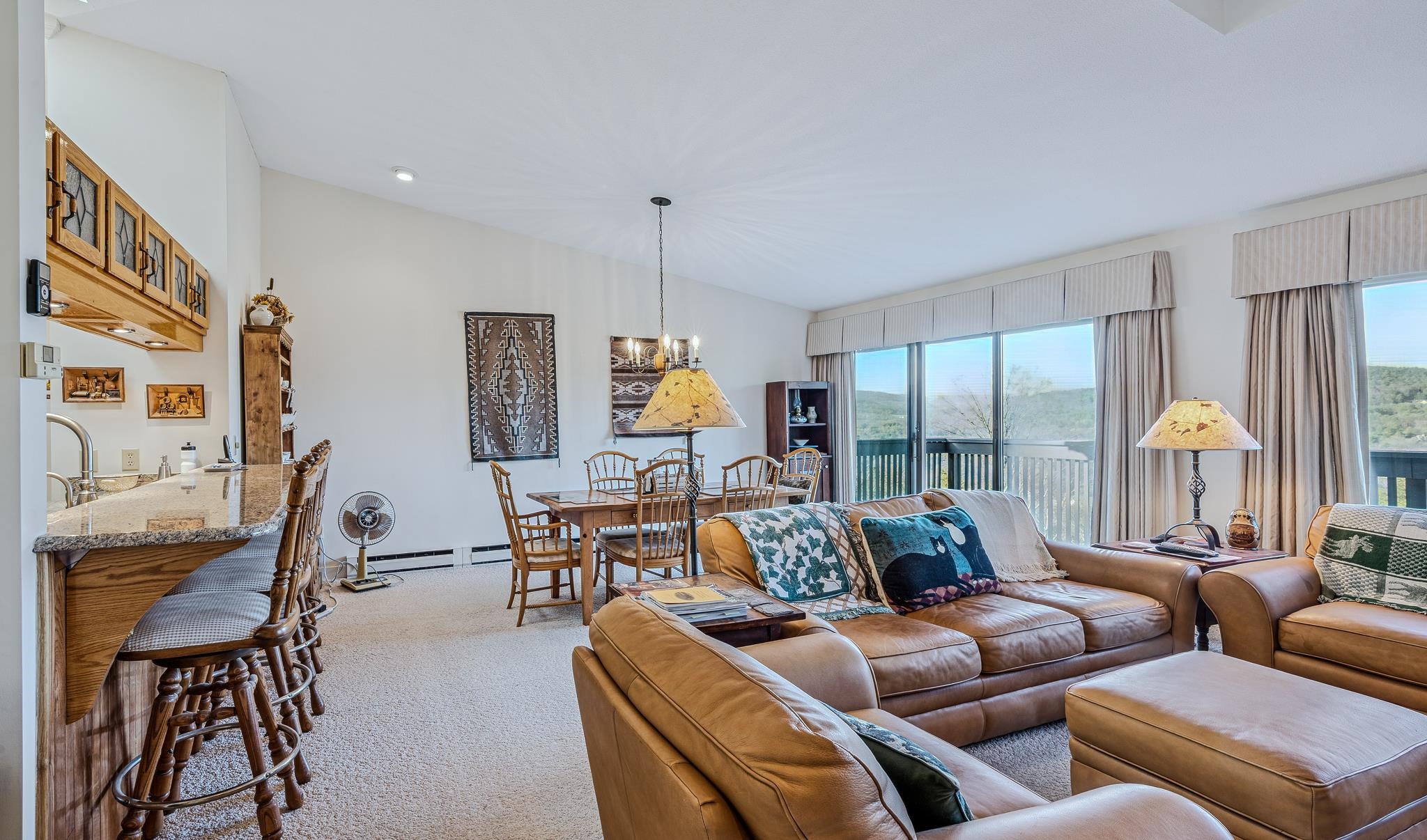 Outstanding 180 degree views of the Quechee Valley ! East, South and West facing for all the passive solar you could ask for. Excellent 3 bedroom and 3 bath townhouse with private on sight in ground pool for owners and guests to use. Unit consists of first level bedroom with beautiful renovated full bath. Galley kitchen with granite counter tops, oak cabinetry and tile flooring. Pass through into the dining and living rooms with bar stools for casual fare. Vaulted ceilings in combo dining /living room areas with wood burning fireplace. Wonderful deck with two awnings for comfort and shade. Lower level consists of two bedrooms and two baths with 2 additional storage rooms or make one into a game room. All tastefully finished. Lower level also has an additional deck for a peaceful retreat. This property has been used sparingly for the last several years and has been used by owners strictly as their second home get away.