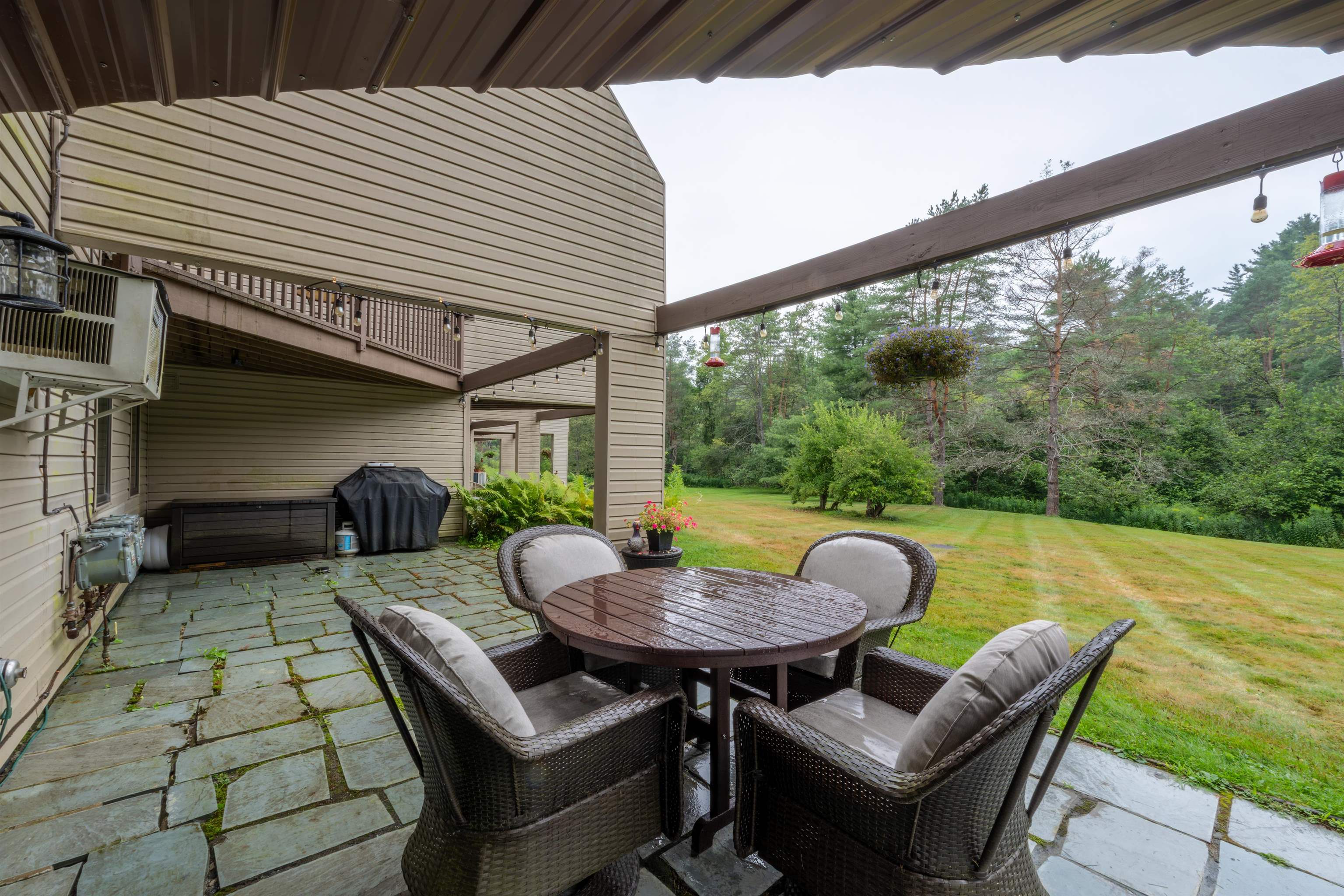 Bright and efficient 1-bedroom ground-level condo in the sought-after Heritage Way association, just one mile from Woodstock Village. This move-in-ready coveted end unit offers comfort, privacy, and numerous recent updates. Features include a new Rinnai furnace (2023), new Anderson sliding glass door and bedroom windows (2024), drop ceiling with added sound insulation, and full-size washer and dryer. The kitchen is equipped with a double oven, and the living area opens to a full slate patio overlooking an expansive yard. Enjoy two outdoor storage areas, a quiet setting, and easy access to the Thompson Senior Center next door. Perfect as a year-round home or a low-maintenance Woodstock retreat close to all village amenities.
