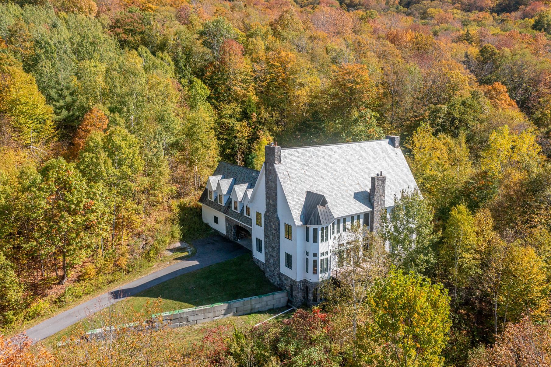 Custom built Dorset Hollow estate offered for the first time since 1998. Located on 10 extremely private acres, this 5, 100 sqft home offers 4 bedrooms and five bathrooms, plus a two car attached garage. Many fine features including: four fireplaces, verdi marble flooring, marvin windows, slate roof, viessmann boiler - all top of the line. The living room is exceptional w large wood burning fireplace, surrounded by 8 ft 12 panel Marvin windows, plus second floor crescent shaped windows, with a ceiling height is over 30 feet. The chef's kitchen complete with THOR double ovens, mini wood burning brick fireplace, center island with butcher block top, verdi marble flooring, soap stone counter tops, wood harbor cabinetry, and a built in seating alcove. The dining room offers 12 ft ceilings, crown moulding, and access to an elevated synthetic sundeck. The den is intimate with attractive brick wood burning fireplace, and a wet bar w copper sink. Additionally, the first has a half bath, and laundry room.The second floor is accessed by a custom two story staircase with fluted design. At the top of the stairs are two good size guest bedrooms, a hallway full tile bath, and large walk-in cedar closet. The primary suite (30x14) offers gas fireplace, 10 ft ceilings, crown moulding and wonderful mountain views. There are two walk-in closets, the primary bathroom offers - sauna, whirlpool tub, tile shower, and double vanity sink. The fourth bedroom is also ensuite, and has hardwood flooring.
