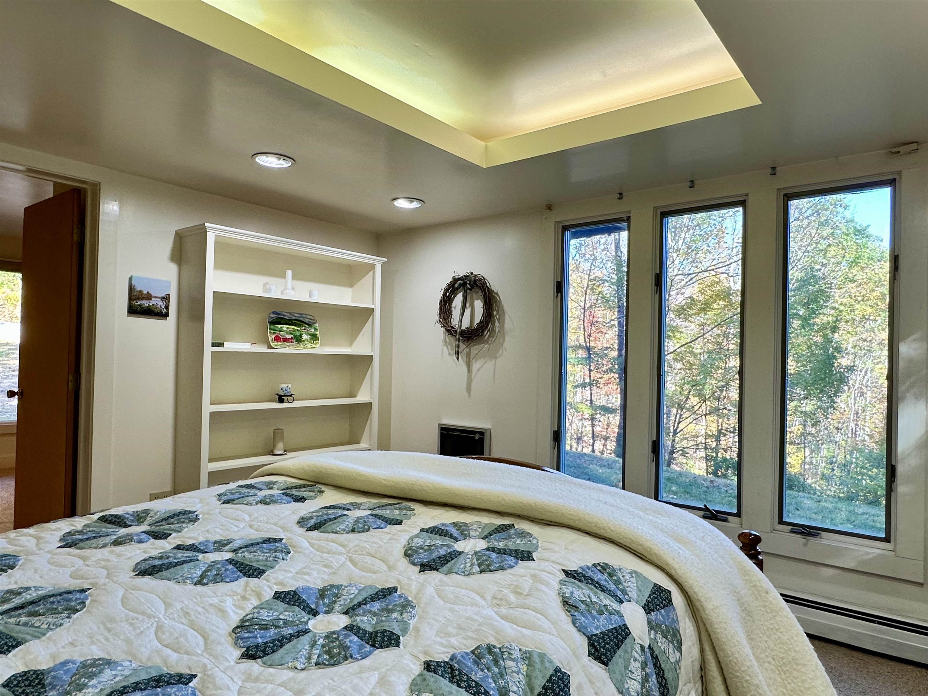 Welcome to your peaceful mountain retreat in the heart of Vermont's premiere ski country. Only minutes from Killington and Pico Mountains, this spacious 2.5-story, 4 bedroom, 3 bathroom home offers the perfect blend of rustic charm and modern comforts. All surrounded by Vermont’s natural beauty and stunning views of Killington Mountain. Step inside to a bright and open living space where the vaulted ceiling, exposed beams, and the large multi-floor windows frame the tranquil forest setting. The inviting great room features a grand stone hearth and wood stove, creating a cozy atmosphere after a day on the slopes. The adjoining dining area and kitchen make entertaining easy, with warm wood cabinetry, ample counter space, and a breakfast bar that’s perfect for gatherings. Off of this space is a wonderful wrap-around deck that offers unobstructed mountain views. Completing this level are two guest bedrooms with each offering its own sense of privacy and relaxation, highlighted by natural light and peaceful woodland or mountain views. The primary suite is located just above this space and has a private entrance overlooking the great room below. Downstairs, a finished walkout lower level provides flexible space for a media room, home office, or guest suite complete with a recessed ceiling, built-in shelving and an additional full bathroom. So if you are into skiing, snowmobiling, hiking, swimming or anything outdoors then this home is a must see. Welcome Home!