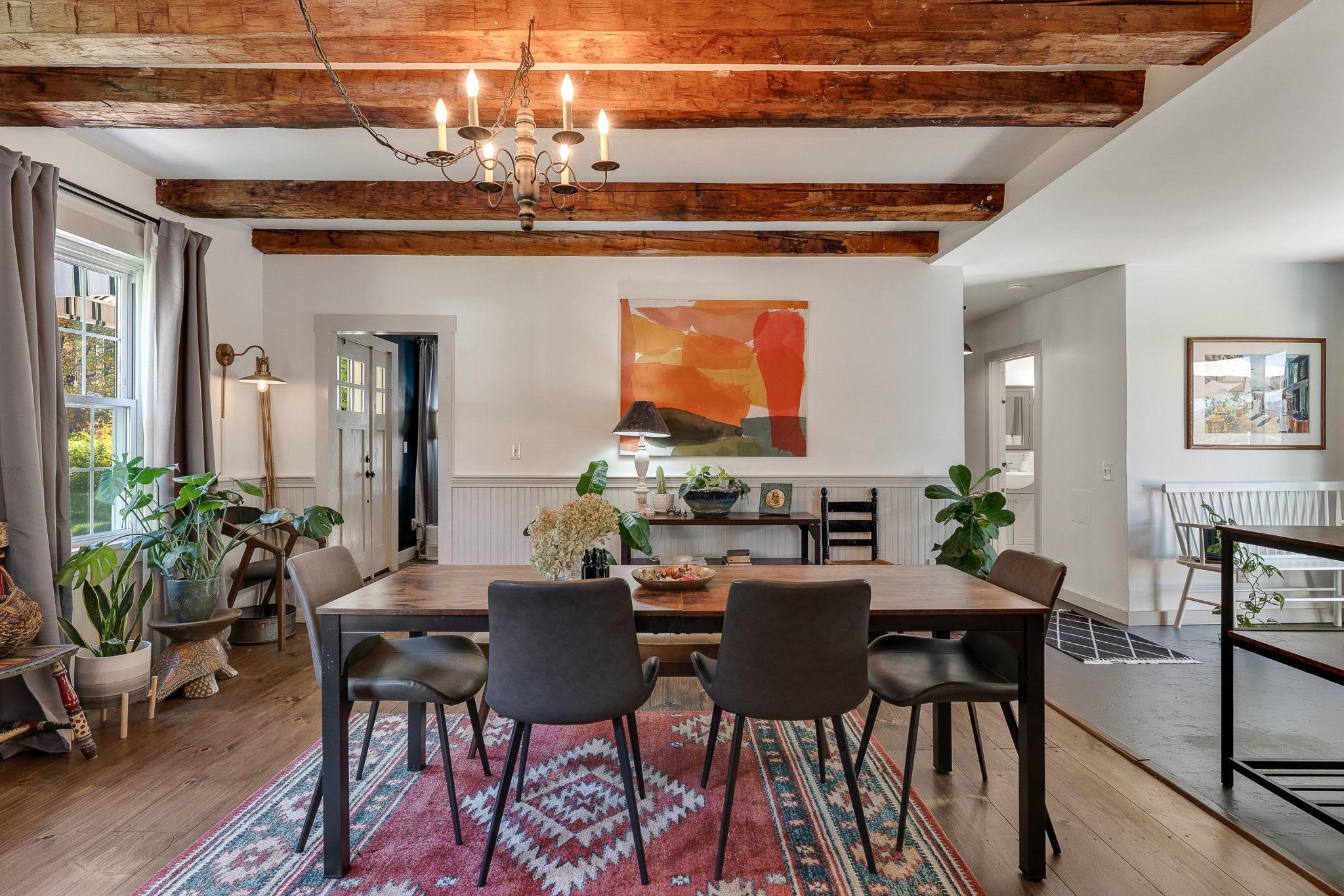 Smartly renovated farmhouse nestled between the village of Stowe and Morristown. Being offered fully finished, a turn-key Vermont dream. First floor full bathroom, second floor ¾ bathroom with custom glass and tile. Large living areas with exposed beams, plenty of space for après-ski game night or family time. Primary bedroom upstairs has a cozy sitting area with loads of charm and character. Comes complete with a sauna, a large two car garage with storage for skis, bikes, tools, and gear, including a large attic. Just under 2 acres of land & abuts both forests and fields. Space for gardens, trails; add a hot tub and make this your oasis! Wide-plank flooring, exposed hand-hewn beams and natural light all compliment its open feel. Views of mountains, close to Stowe and Smugglers Notch Ski Resorts. This home has potential as an income producing vacation rental or as a primary home nestled against the mountains. Only a 5 minute drive to downtown Morristown.