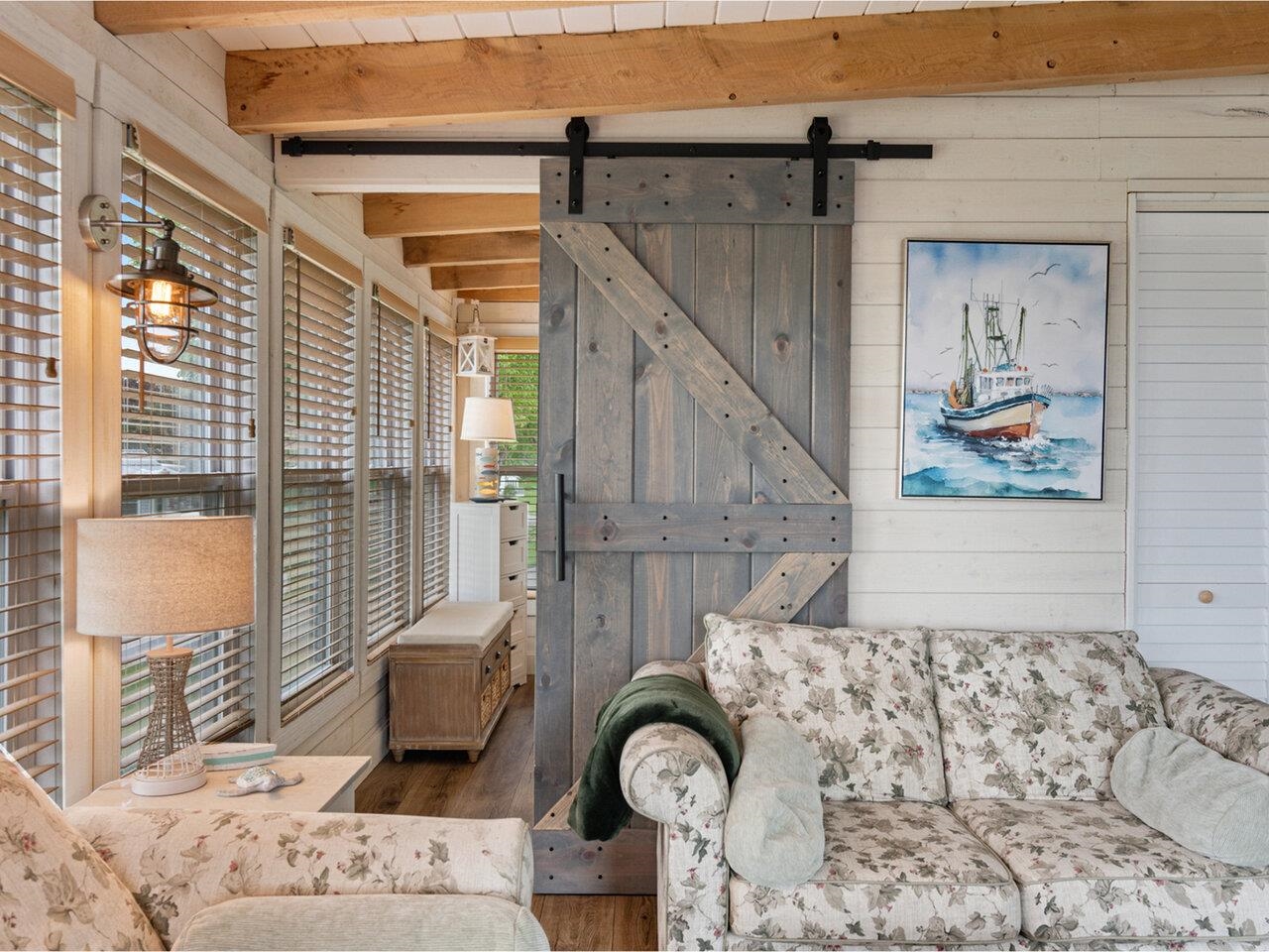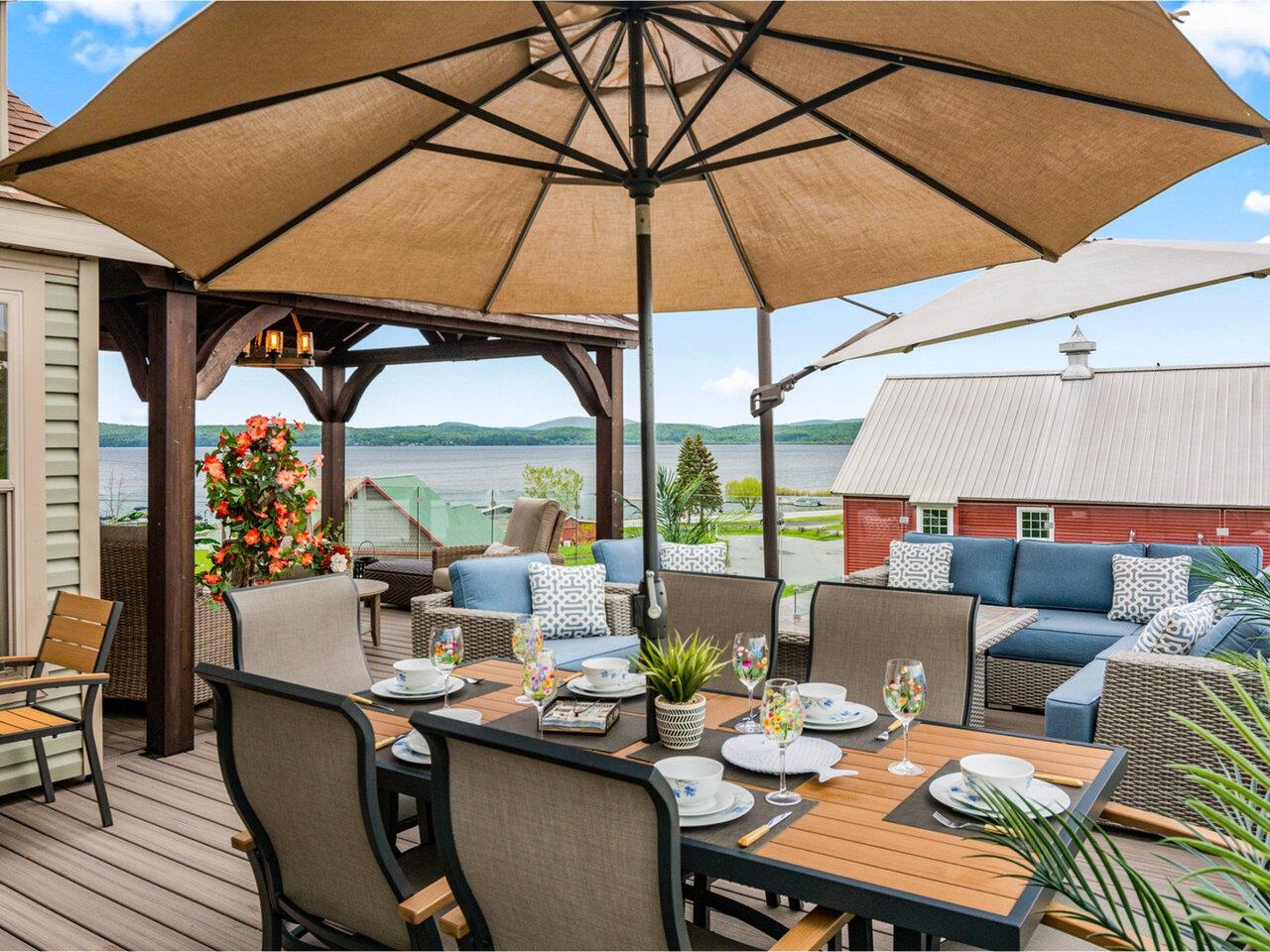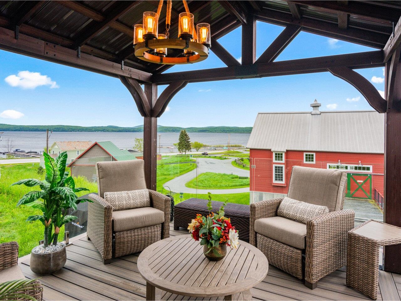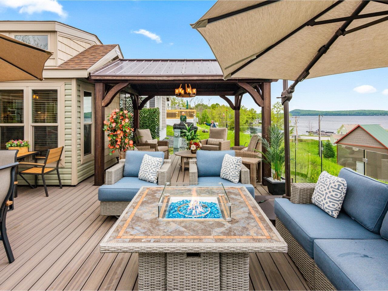 Tucked away in the Champlain Islands, where sunrises and sunsets paint the sky, this spectacular seasonal cottage at Apple Island Resort is a true summer sanctuary! With room to gather, unwind, and host, this partially furnished cottage - complete with 2 bedrooms, 2 bathrooms, and a loft adapts beautifully to what each day brings. The kitchen exudes modern flair complete with an island, farmhouse sink, stainless steel appliances, and crown molding - flowing into an elevated living room with a cozy electric fireplace. The sunroom is a favorite gathering spot, perfect for cozy nights in, with an adjoining guest room tucked behind a stylish barn door. Step outside to a glass-enclosed deck designed to shield you from the breeze without blocking the view - ideal for relaxing evenings by the built-in gas fireplace. Below, a custom stone patio and fire pit invite summer cookouts and starlit stories. A dedicated space under the deck holds kayaks for days on the lake. A perennial garden graces the front of the home. A 10' x 6'11" shed adds both practicality and convenience with a stacked washer and dryer, and a separate electrical panel for the shed and air conditioning. Modern, welcoming, and beautifully designed, this cottage is the perfect place to spend your summer at Apple Island Resort! The seasonal lease fee is $9, 210. Seasonal resort open 5/1 to 10/20.