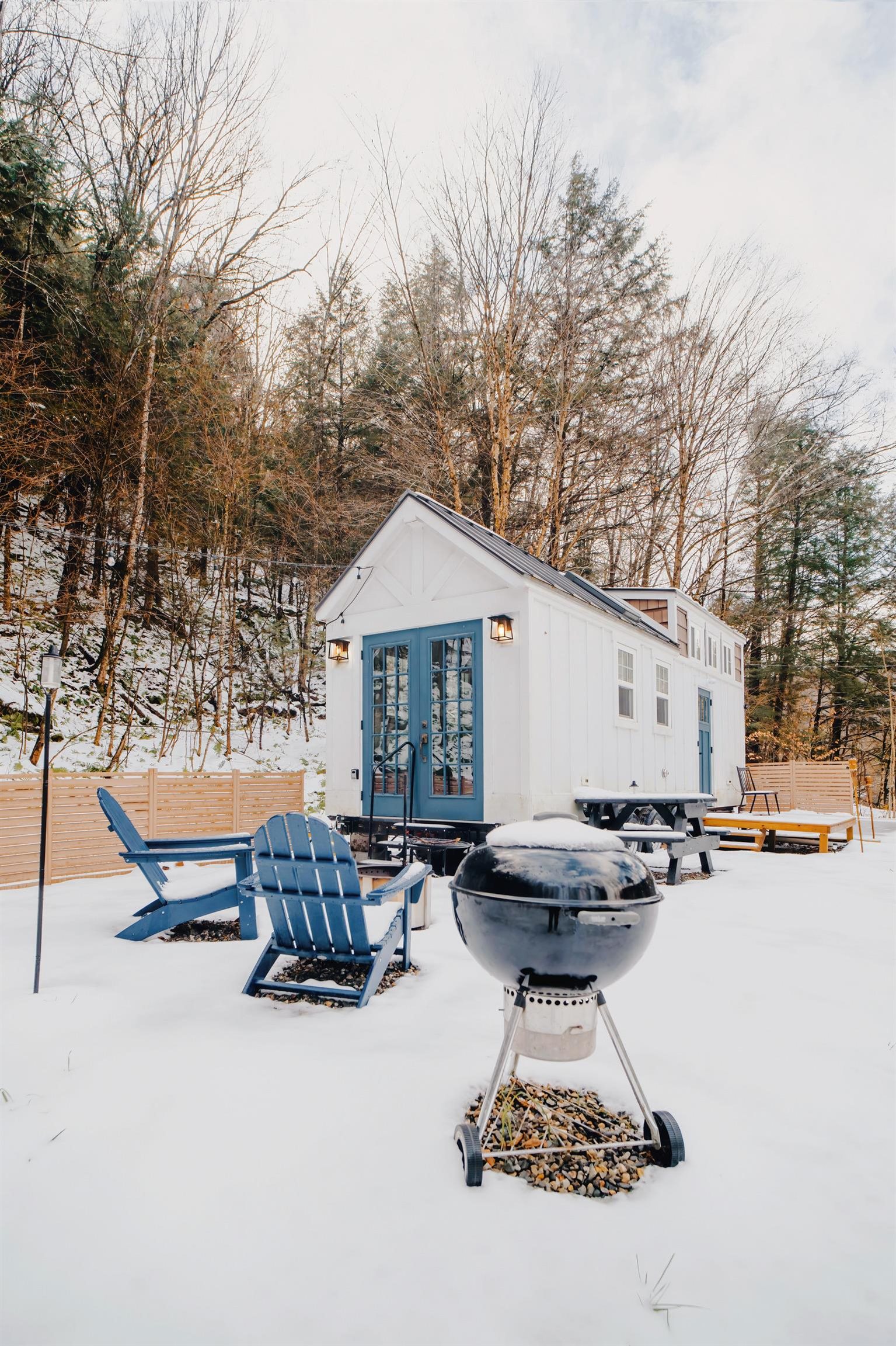 A unique tiny house offering contemporary, Vermont farmhouse luxury in the Green Mountains. Featured on A & E's Living Smaller! This is tiny house vacation living at its finest. The house offers a full kitchen with four-burner gas stove and oven, farmhouse sink, butcher-block countertops, electric fireplace, AC, 40” Smart TV, Starlink WiFi, small soaking bathtub with shower. The bedroom loft with queen bed is accessible by a full set of stairs. A wooded outdoor area with deck, patio, Solo stove, Weber grill, picnic table, and Adirondack chairs name a few features of your outdoor space. Love to hike? Just step out your door ! Come enjoy Vermont in a whole new way! This house lies in a wooded setting across the road from the Ball Mountain Brook. While outside, you can usually hear the brook flowing, which provides nice ambiance! You are just minutes away from some of the best attractions in Southern Vermont. The two nearby state parks, Townshend and Jamaica, have numerous overlook trails and the West River offers kayaking, rafting and tubing. Gourmet dining and designer outlets are a close drive to Manchester, Vermont. Spend a day on the slopes at one of the nearby ski resorts: Stratton, Bromley, Mount Snow, or Magic Mountain. This is the perfect get away to come to on a weekend or overnight. The house has great rental history. Property being sold "turn key". Sellers offering to continue as property managers. Don’t wait ! It won't last long!