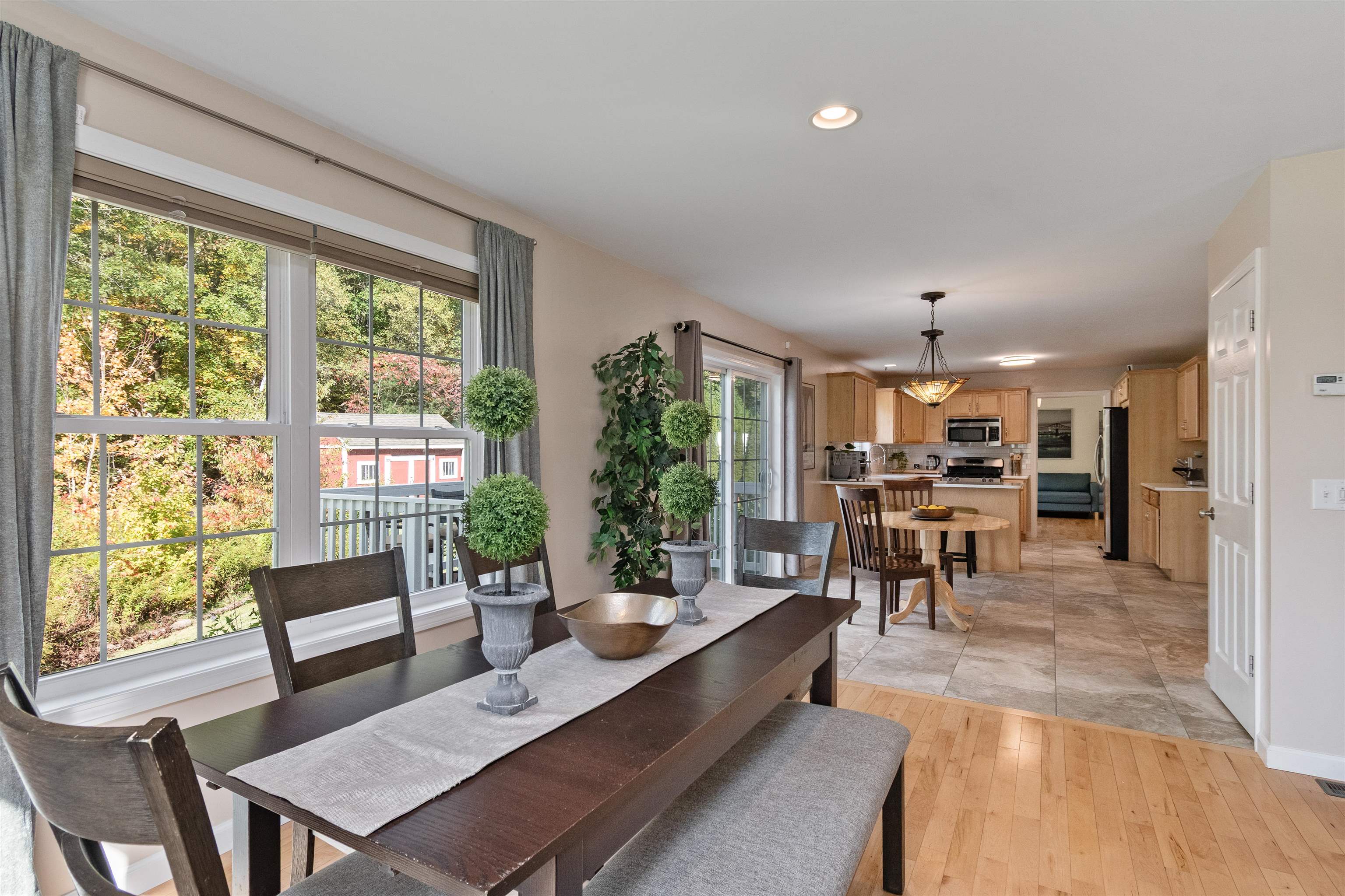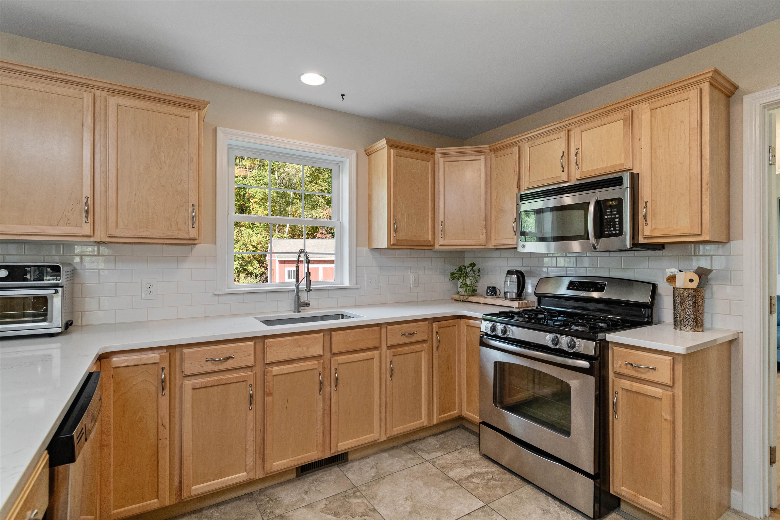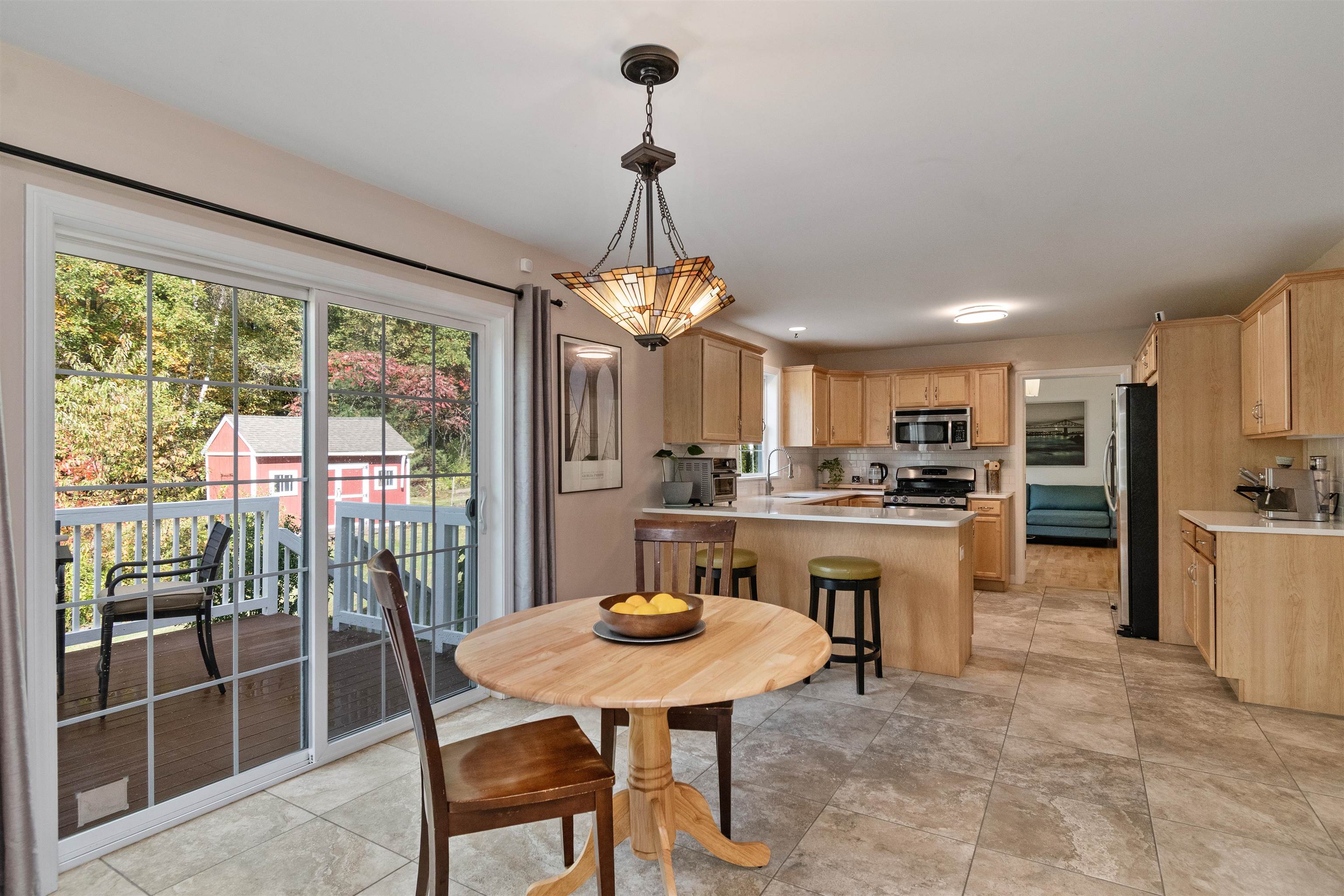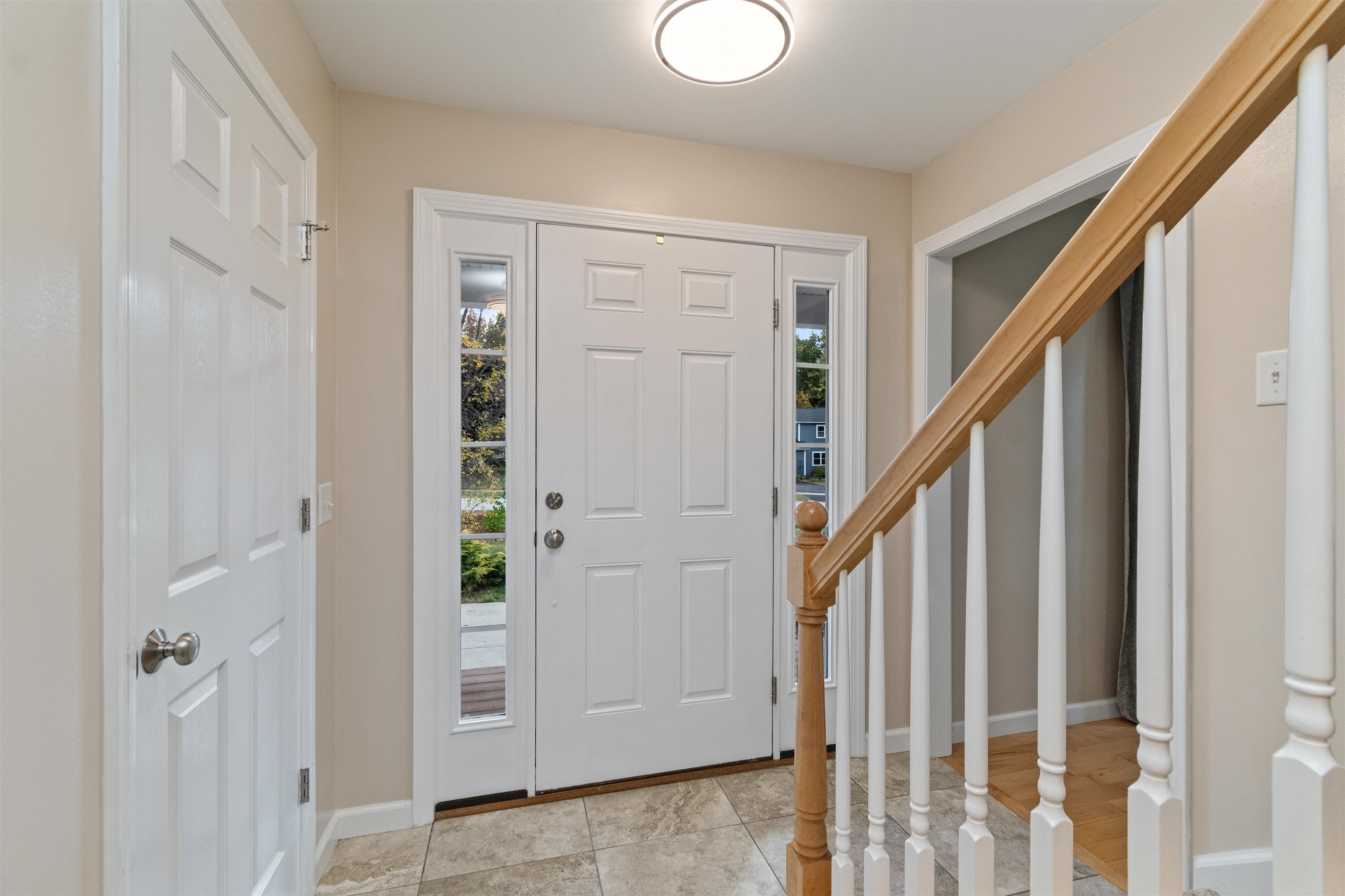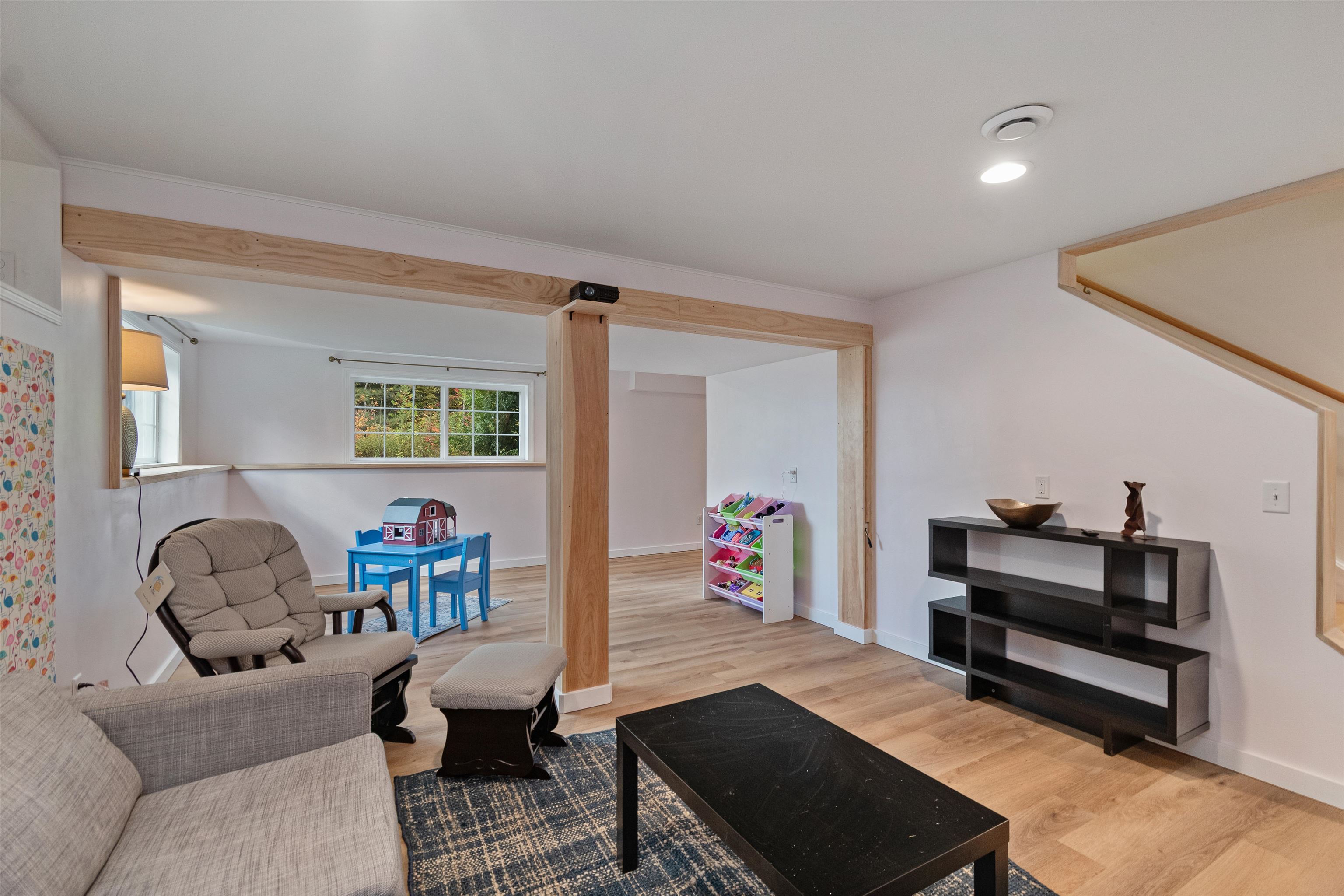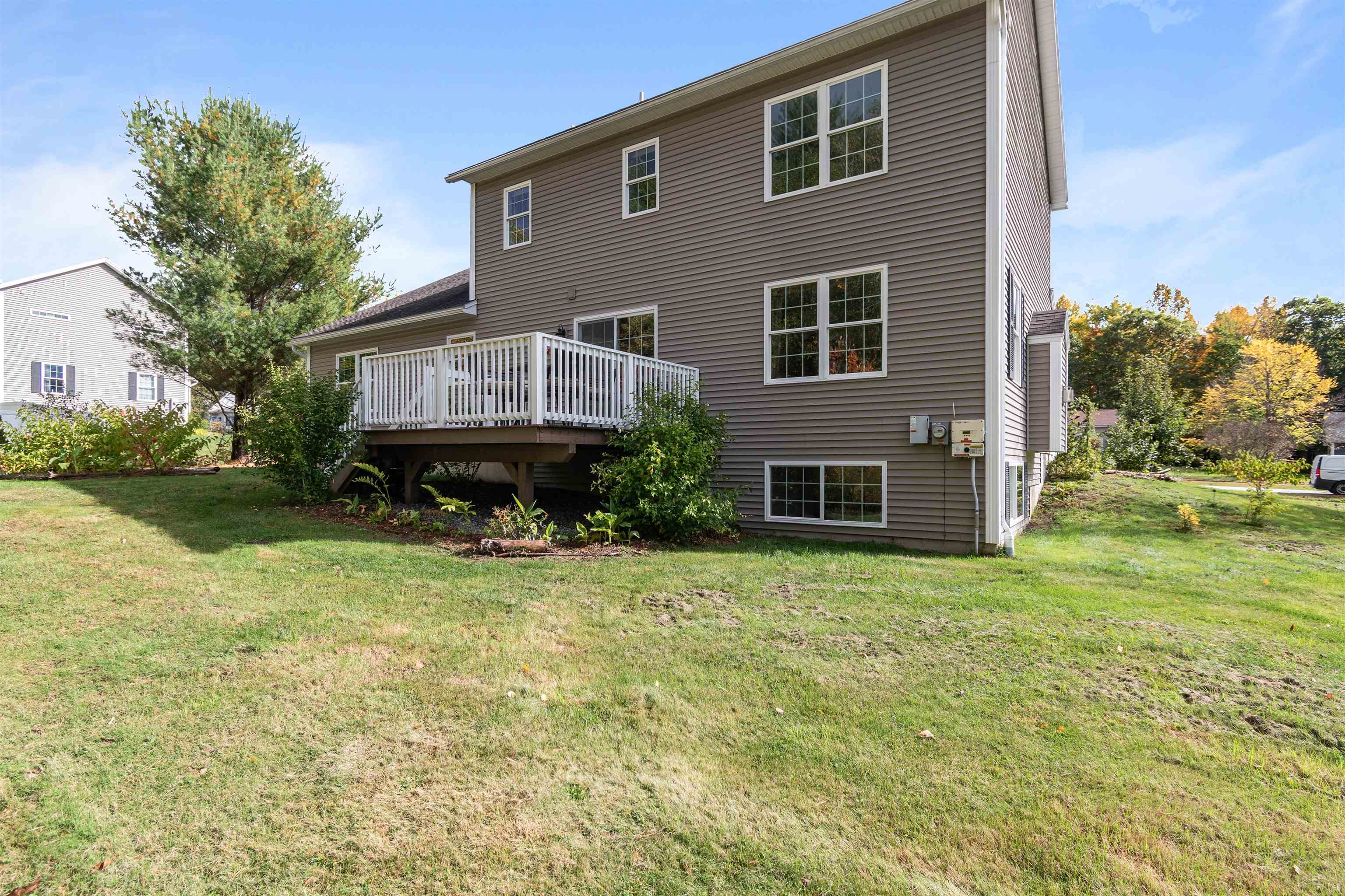Set on 2.76 acres in a wonderful neighborhood, this charming 3-bedroom Colonial blends modern updates, natural beauty and sustainable living. A welcoming front porch invites you into a home filled with calming, warm tones and thoughtful updates. The open-concept living and dining area is perfect for entertaining, centered around a gas fireplace with tiled surround. The spacious, updated kitchen features quartz countertops, tile backsplash, ample cabinetry, room for a table and direct access to the back deck. Off the kitchen, a family room offers you additional flexible space. A convenient mudroom with coat hooks and adjacent laundry room provide functional storage. Upstairs, the primary suite boasts a large walk-in closet with built-ins and a private en suite bath. There’s two additional bedrooms and a full bath on this level. You’ll love the renovated basement with extra living space, luxury vinyl flooring and plenty of storage. Updated lighting throughout, along with an updated bathroom complete this move-in-ready home! Outside, this property truly shines! Enjoy a beautifully landscaped yard with native perennials and fruit trees including apples, cherries, pears, berries, and more. Owned solar panels provide low-to-no electric bills and free EV charging. Located off Route 7, with easy access to I-89 and local amenities, this property is ideal for small-scale homesteading, complete with a wide array of plants and space for livestock or gardens!