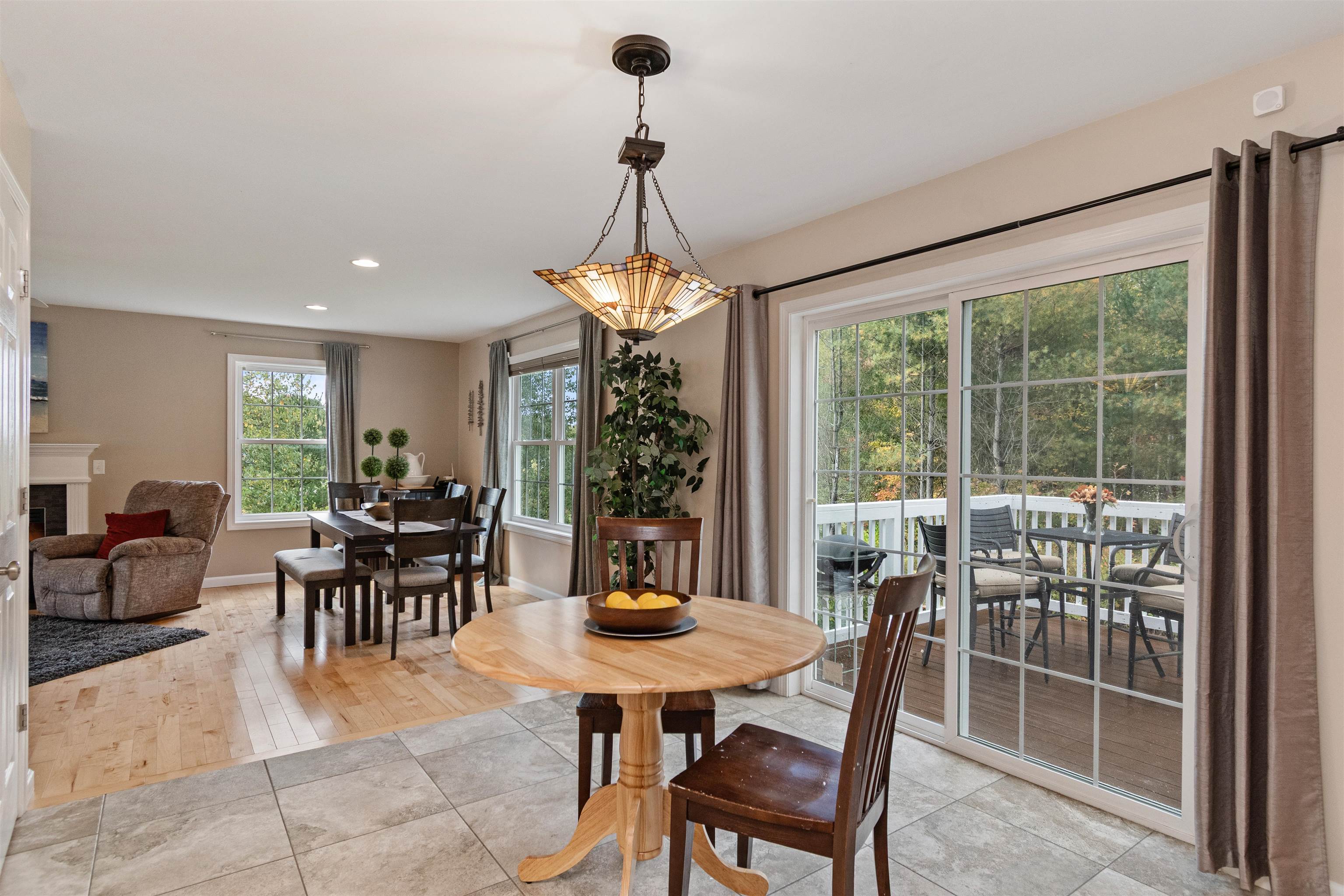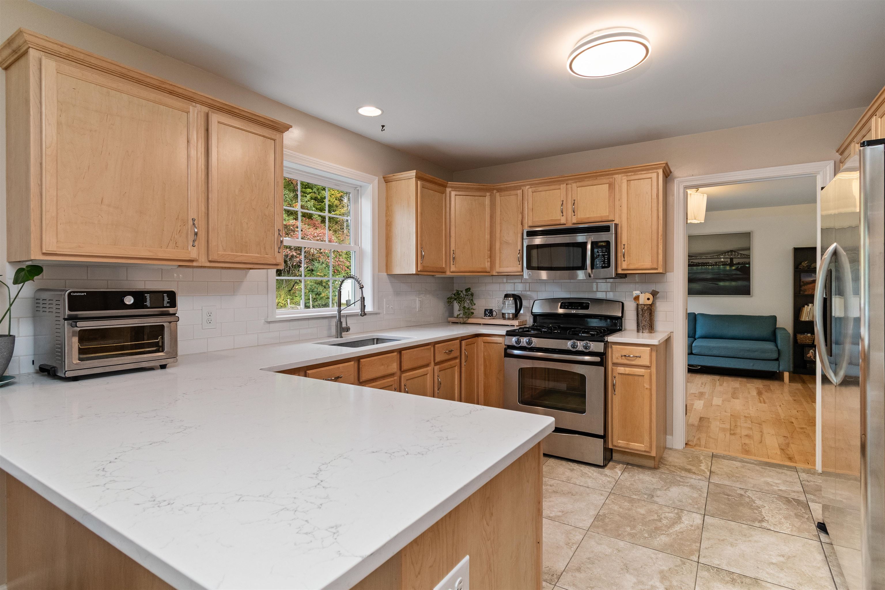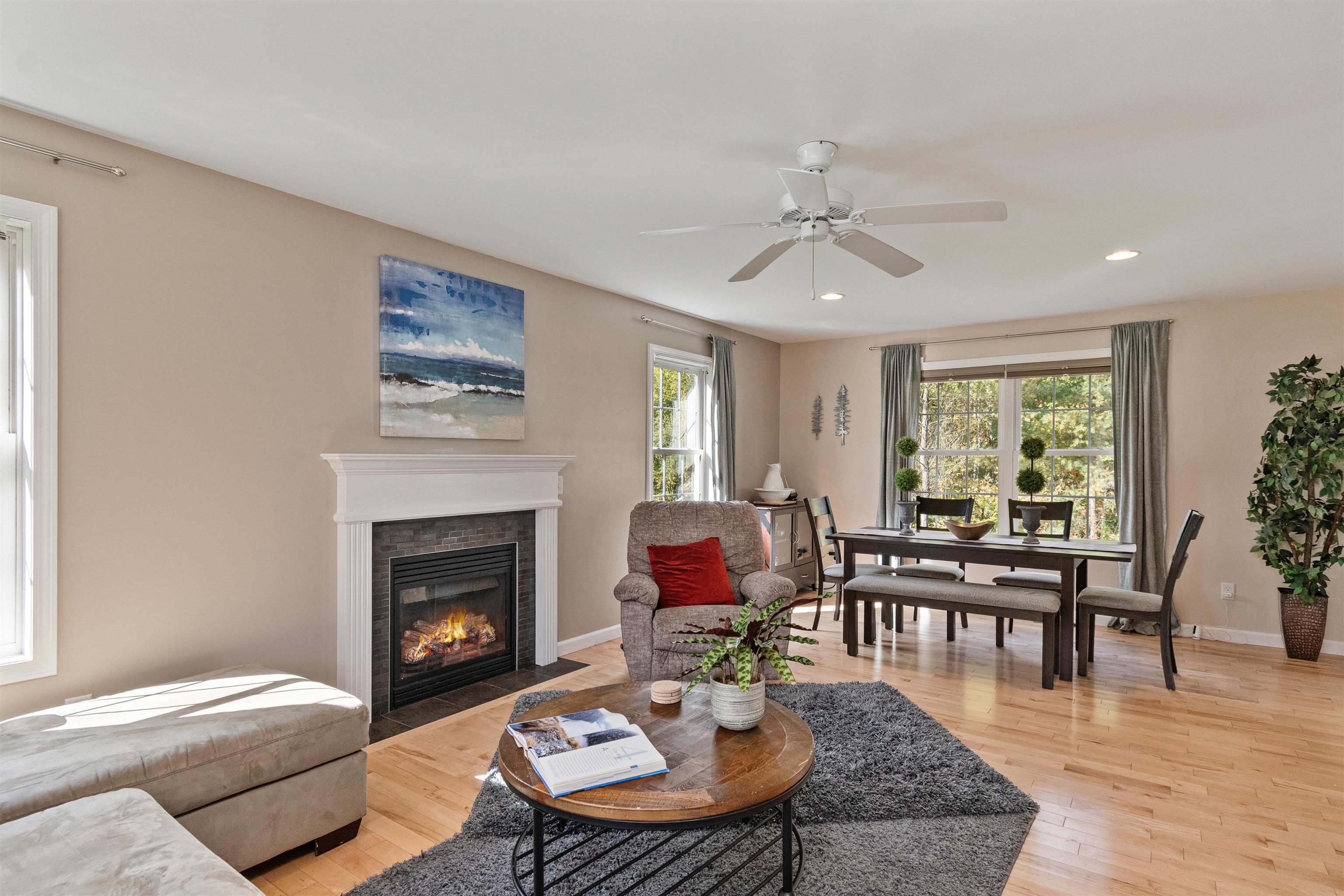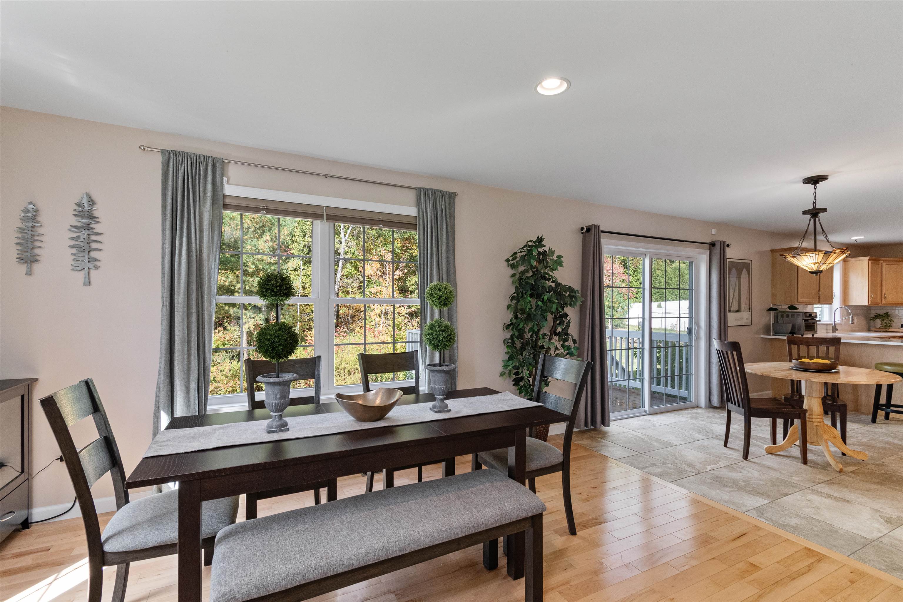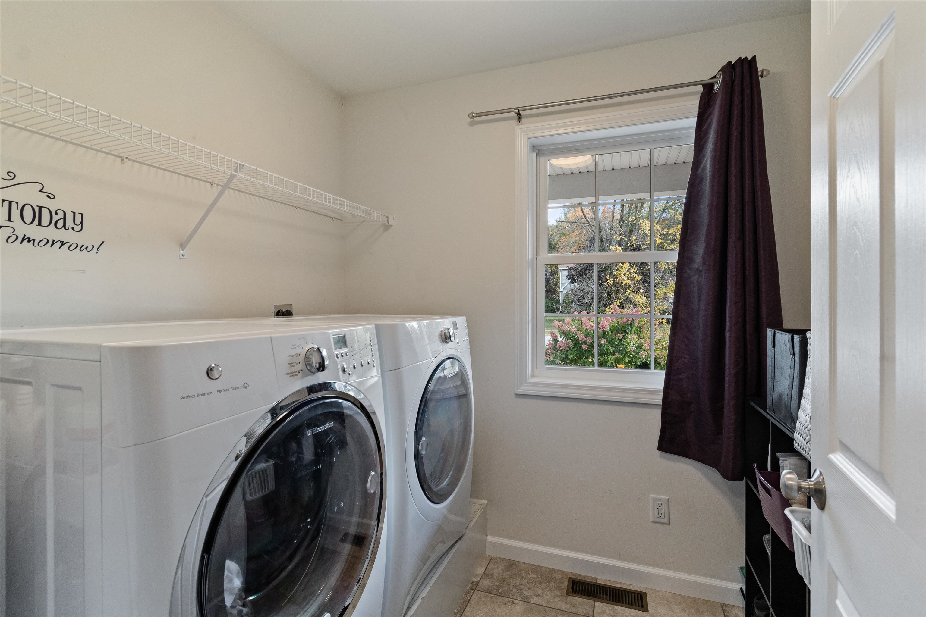 Set on 2.76 acres in a wonderful neighborhood, this charming 3-bedroom Colonial blends modern updates, natural beauty and sustainable living. A welcoming front porch invites you into a home filled with calming, warm tones and thoughtful updates. The open-concept living and dining area is perfect for entertaining, centered around a gas fireplace with tiled surround. The spacious, updated kitchen features quartz countertops, tile backsplash, ample cabinetry, room for a table and direct access to the back deck. Off the kitchen, a family room offers you additional flexible space. A convenient mudroom with coat hooks and adjacent laundry room provide functional storage. Upstairs, the primary suite boasts a large walk-in closet with built-ins and a private en suite bath. There’s two additional bedrooms and a full bath on this level. You’ll love the renovated basement with extra living space, luxury vinyl flooring and plenty of storage. Updated lighting throughout, along with an updated bathroom complete this move-in-ready home! Outside, this property truly shines! Enjoy a beautifully landscaped yard with native perennials and fruit trees including apples, cherries, pears, berries, and more. Owned solar panels provide low-to-no electric bills and free EV charging. Located off Route 7, with easy access to I-89 and local amenities, this property is ideal for small-scale homesteading, complete with a wide array of plants and space for livestock or gardens!