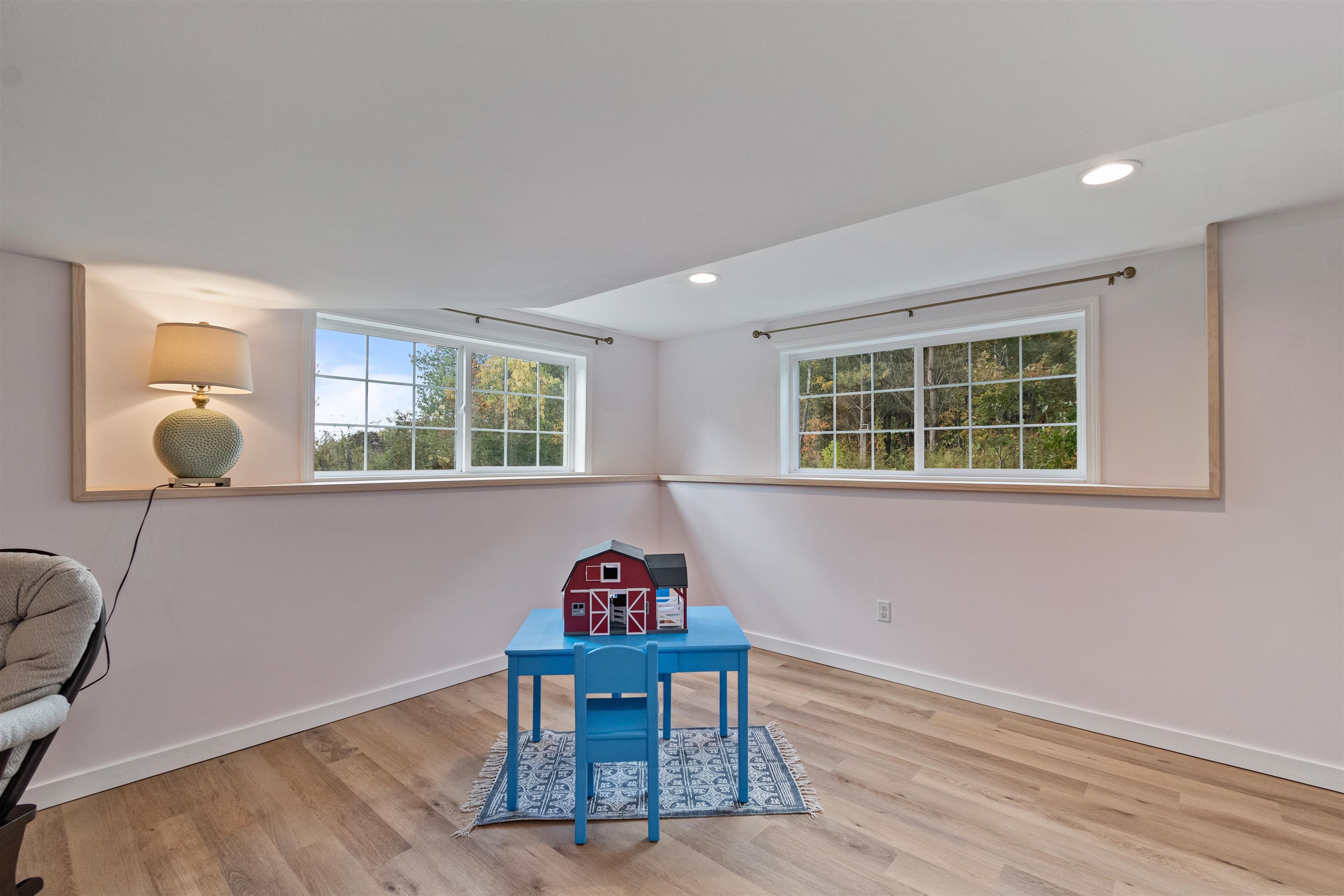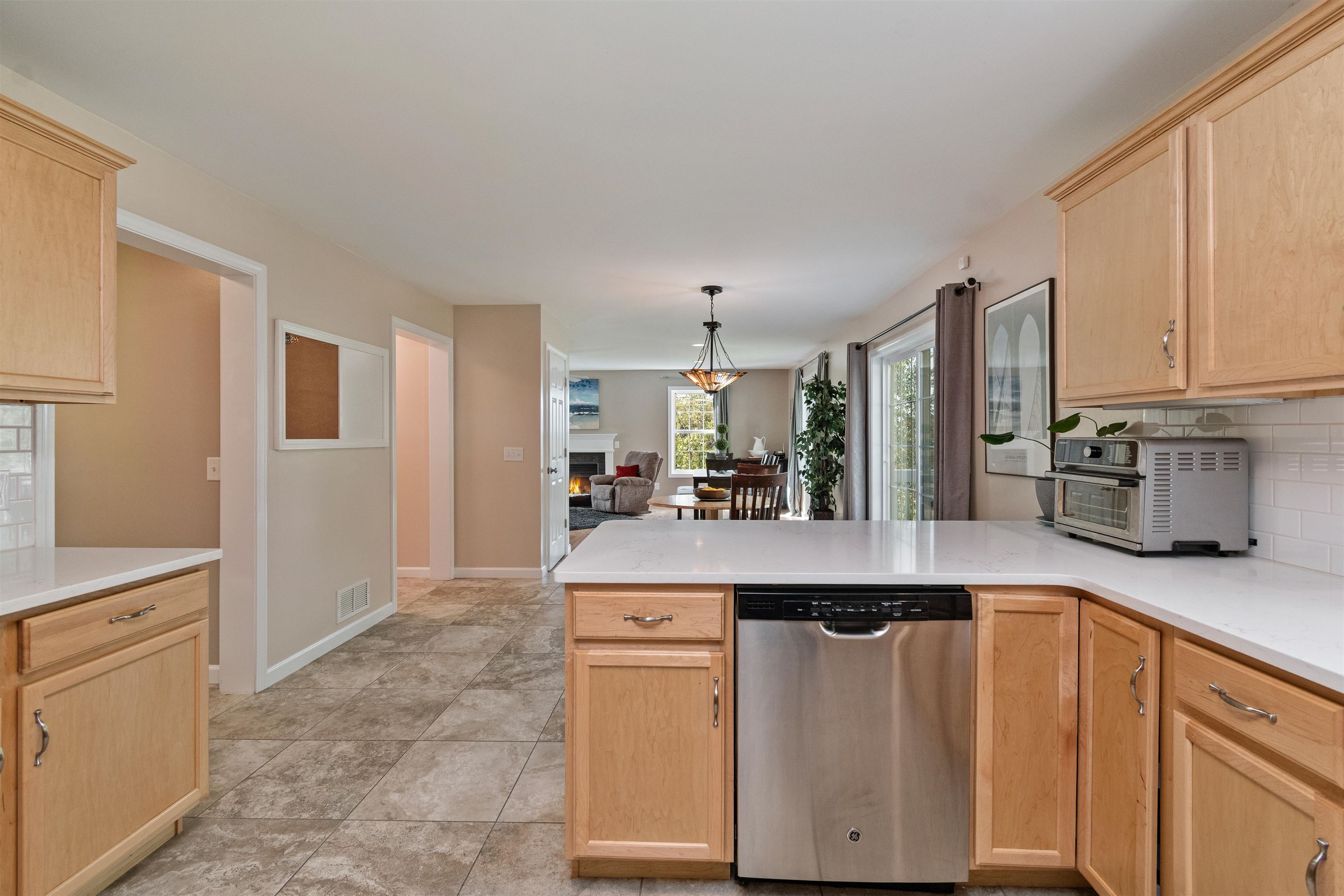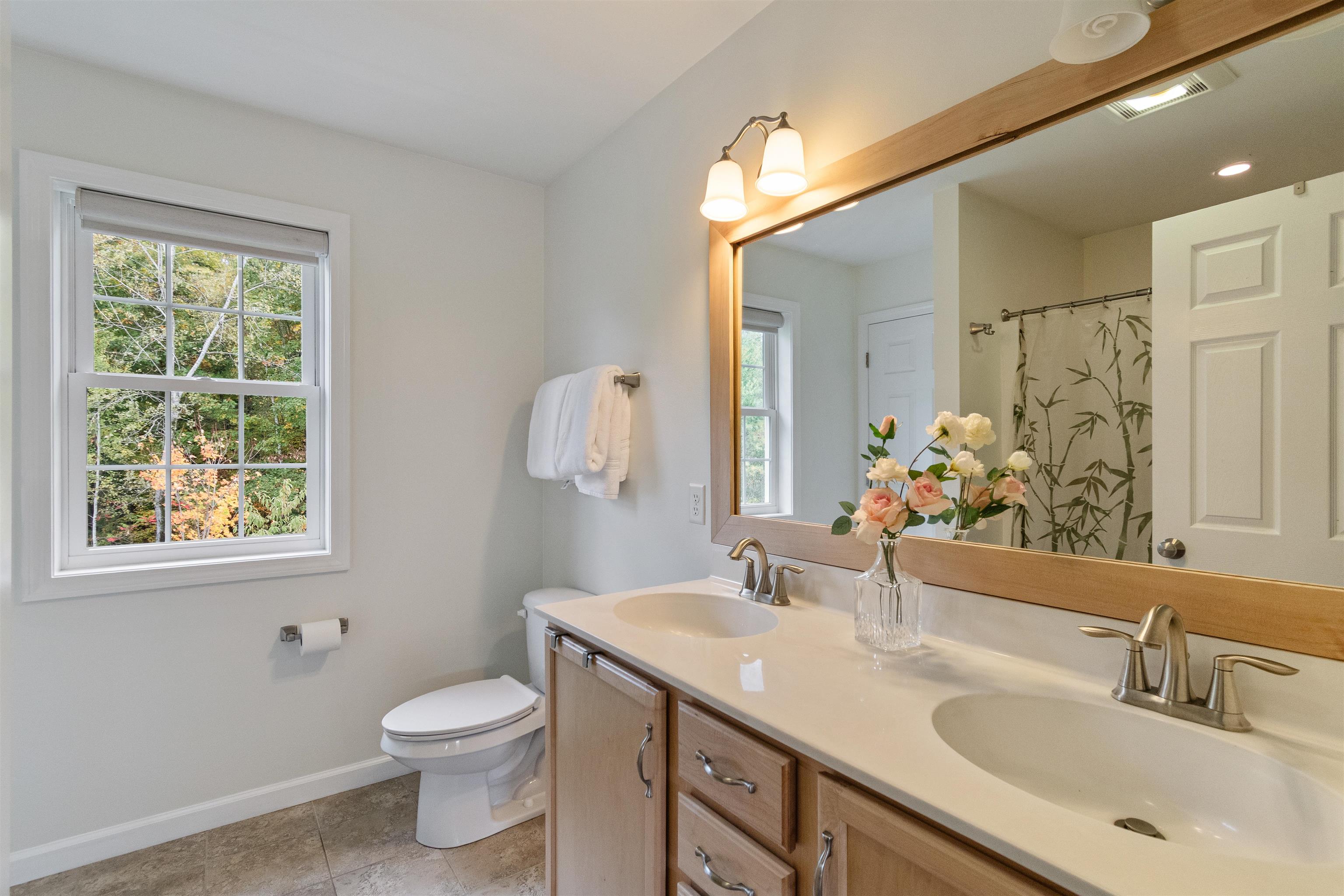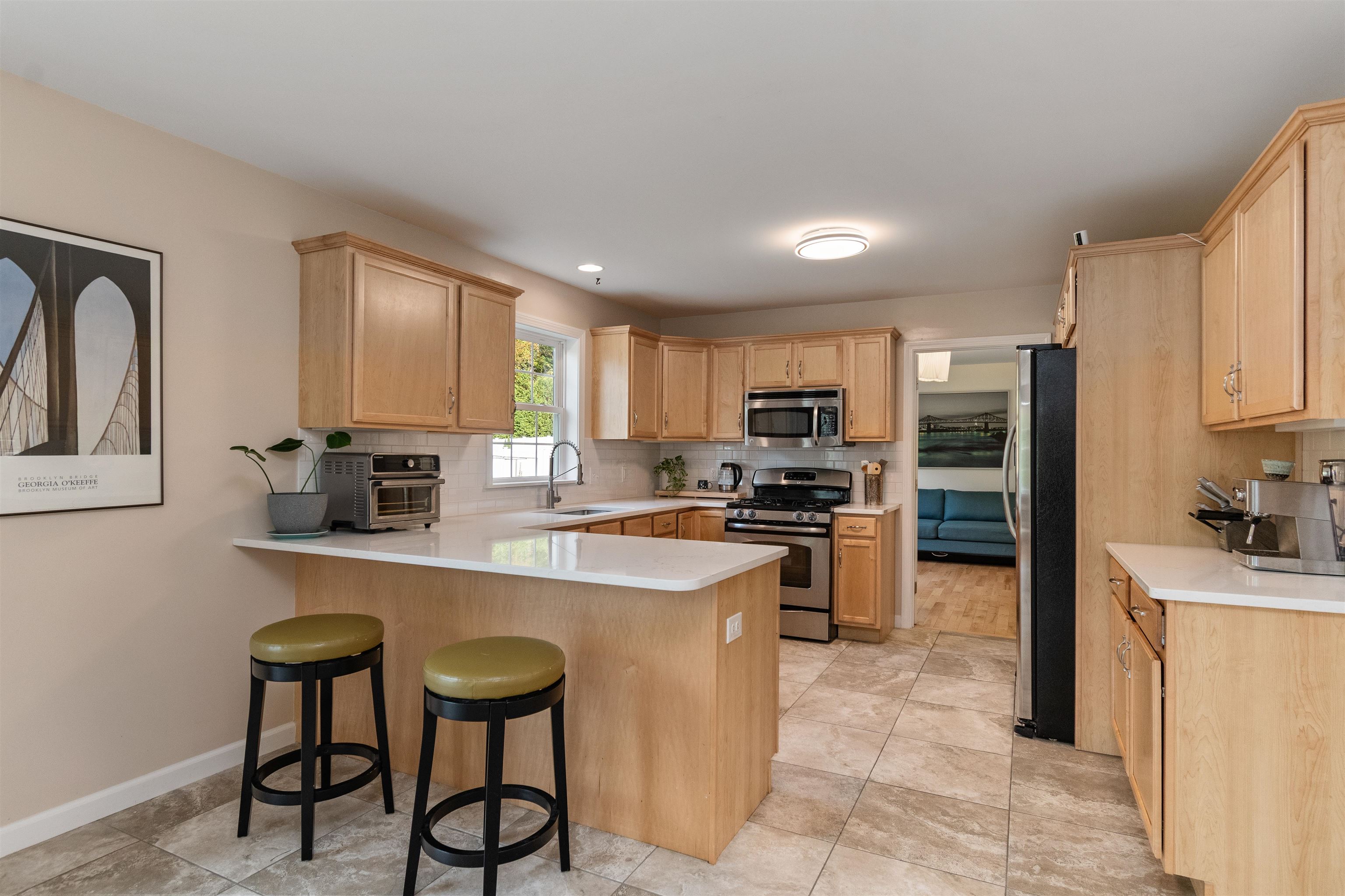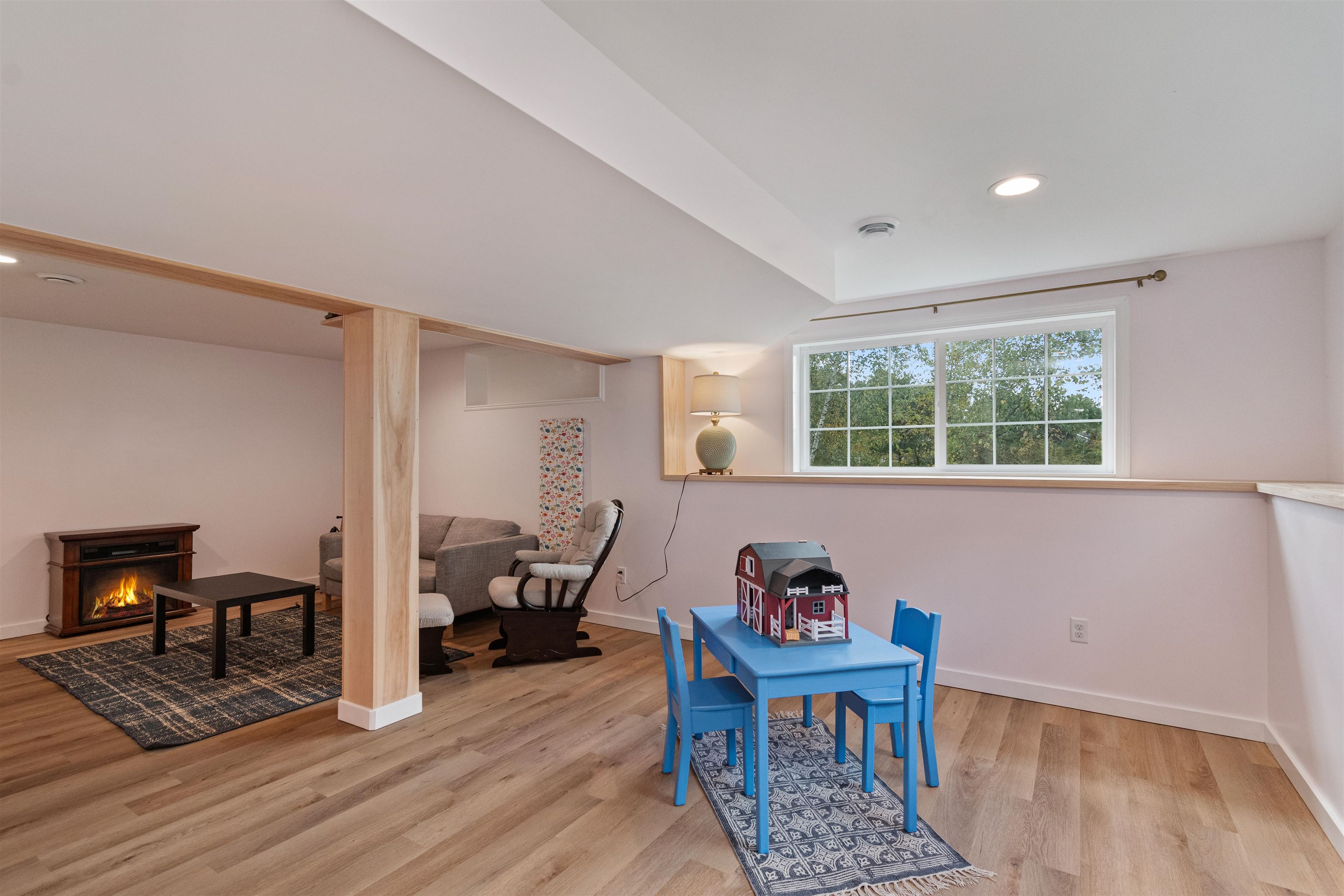 Set on 2.76 acres in a wonderful neighborhood, this charming 3-bedroom Colonial blends modern updates, natural beauty and sustainable living. A welcoming front porch invites you into a home filled with calming, warm tones and thoughtful updates. The open-concept living and dining area is perfect for entertaining, centered around a gas fireplace with tiled surround. The spacious, updated kitchen features quartz countertops, tile backsplash, ample cabinetry, room for a table and direct access to the back deck. Off the kitchen, a family room offers you additional flexible space. A convenient mudroom with coat hooks and adjacent laundry room provide functional storage. Upstairs, the primary suite boasts a large walk-in closet with built-ins and a private en suite bath. There’s two additional bedrooms and a full bath on this level. You’ll love the renovated basement with extra living space, luxury vinyl flooring and plenty of storage. Updated lighting throughout, along with an updated bathroom complete this move-in-ready home! Outside, this property truly shines! Enjoy a beautifully landscaped yard with native perennials and fruit trees including apples, cherries, pears, berries, and more. Owned solar panels provide low-to-no electric bills and free EV charging. Located off Route 7, with easy access to I-89 and local amenities, this property is ideal for small-scale homesteading, complete with a wide array of plants and space for livestock or gardens!