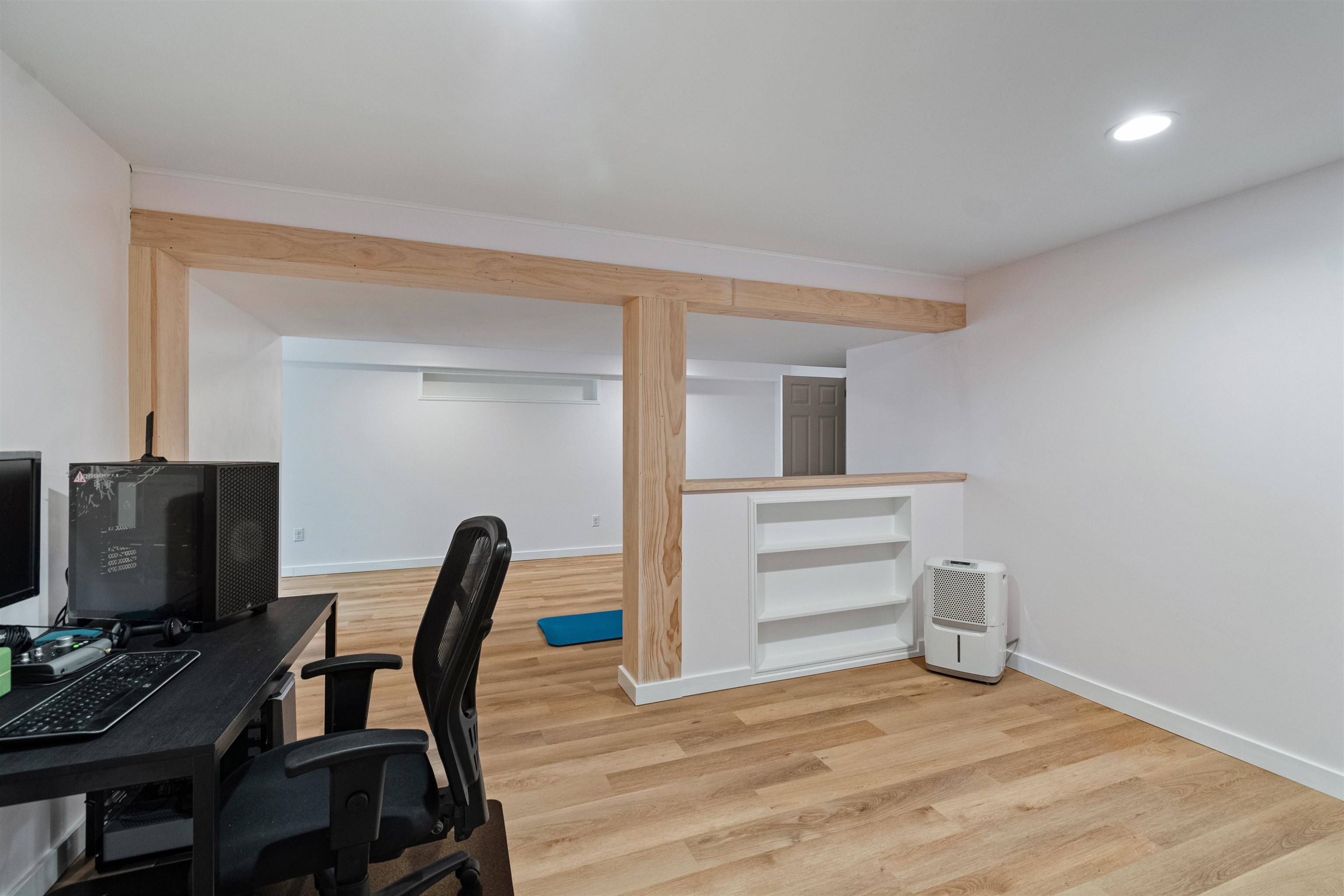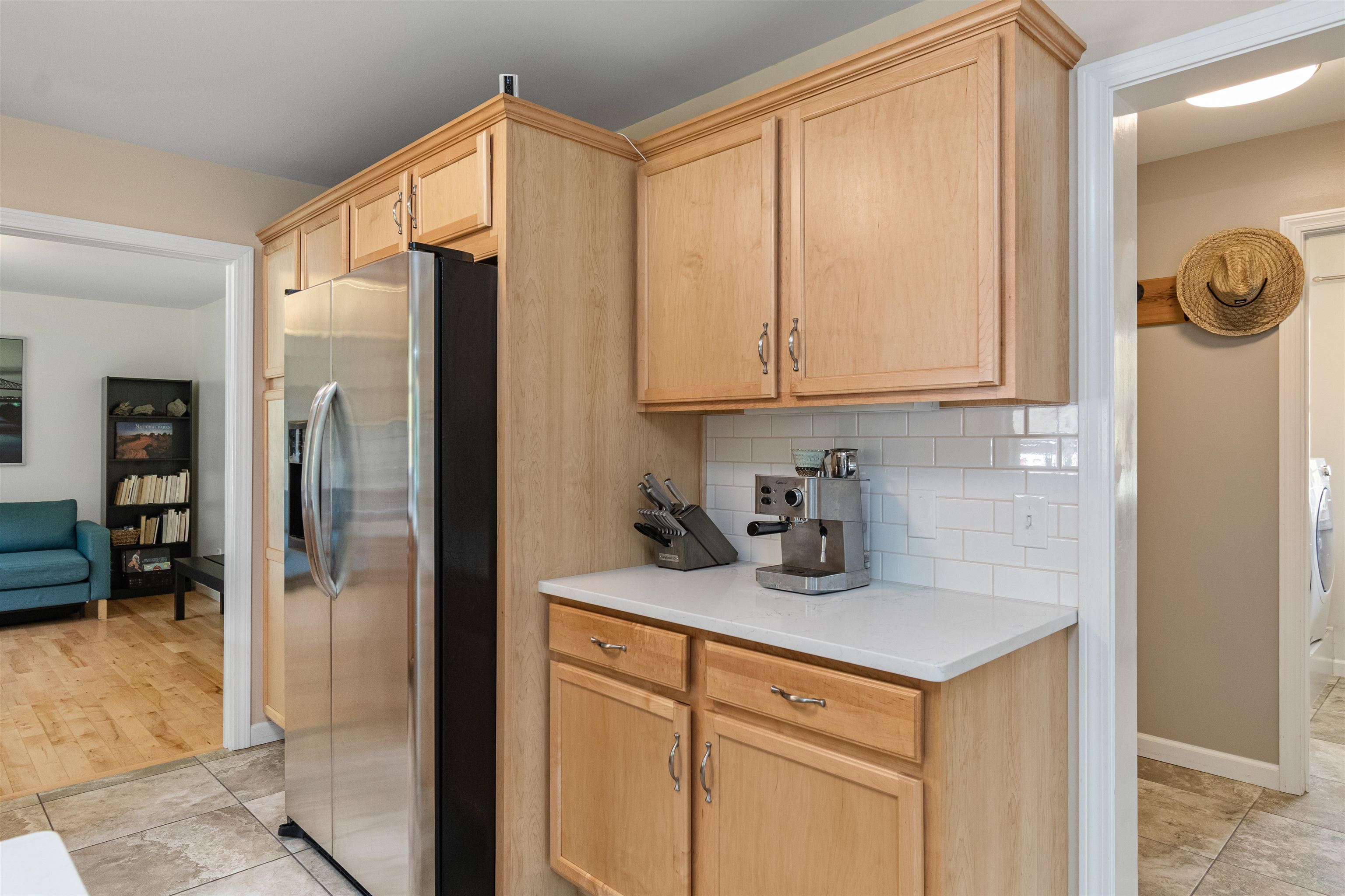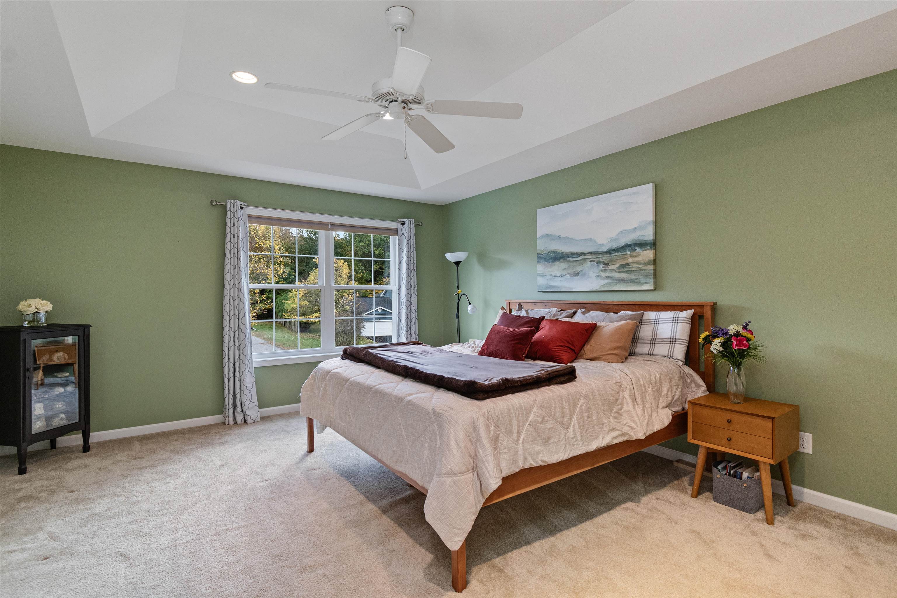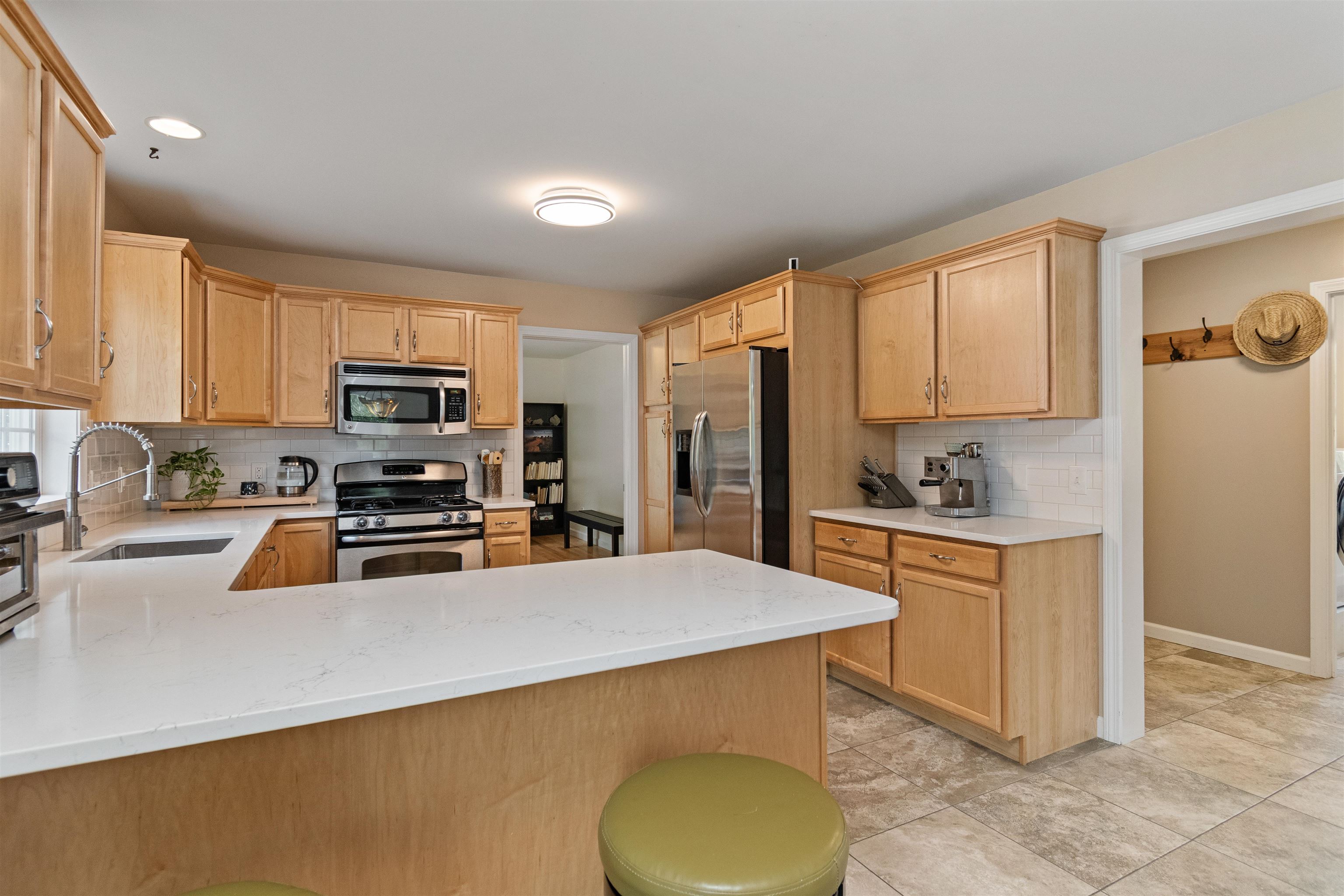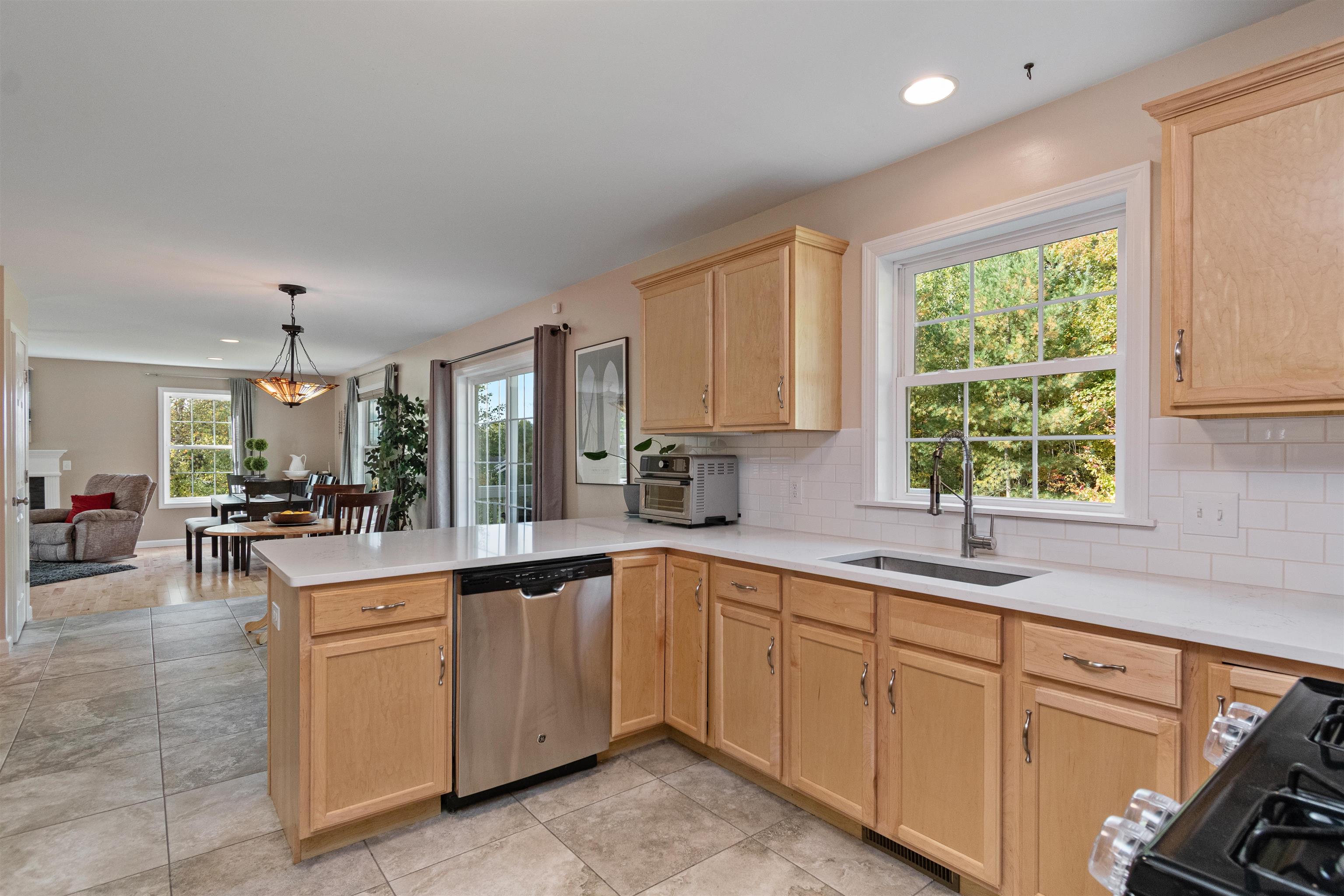 Set on 2.76 acres in a wonderful neighborhood, this charming 3-bedroom Colonial blends modern updates, natural beauty and sustainable living. A welcoming front porch invites you into a home filled with calming, warm tones and thoughtful updates. The open-concept living and dining area is perfect for entertaining, centered around a gas fireplace with tiled surround. The spacious, updated kitchen features quartz countertops, tile backsplash, ample cabinetry, room for a table and direct access to the back deck. Off the kitchen, a family room offers you additional flexible space. A convenient mudroom with coat hooks and adjacent laundry room provide functional storage. Upstairs, the primary suite boasts a large walk-in closet with built-ins and a private en suite bath. There’s two additional bedrooms and a full bath on this level. You’ll love the renovated basement with extra living space, luxury vinyl flooring and plenty of storage. Updated lighting throughout, along with an updated bathroom complete this move-in-ready home! Outside, this property truly shines! Enjoy a beautifully landscaped yard with native perennials and fruit trees including apples, cherries, pears, berries, and more. Owned solar panels provide low-to-no electric bills and free EV charging. Located off Route 7, with easy access to I-89 and local amenities, this property is ideal for small-scale homesteading, complete with a wide array of plants and space for livestock or gardens!