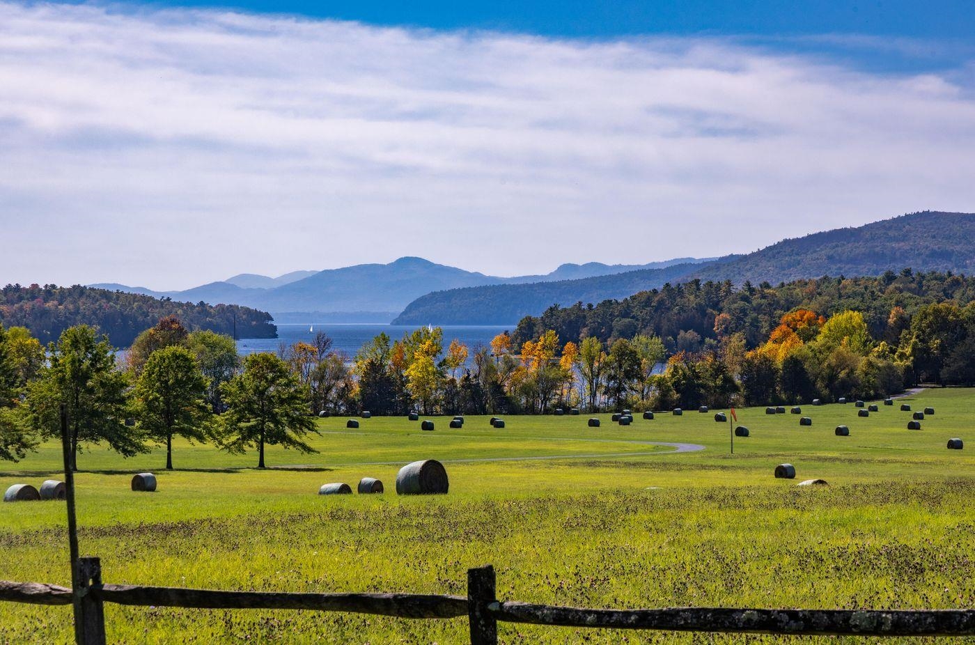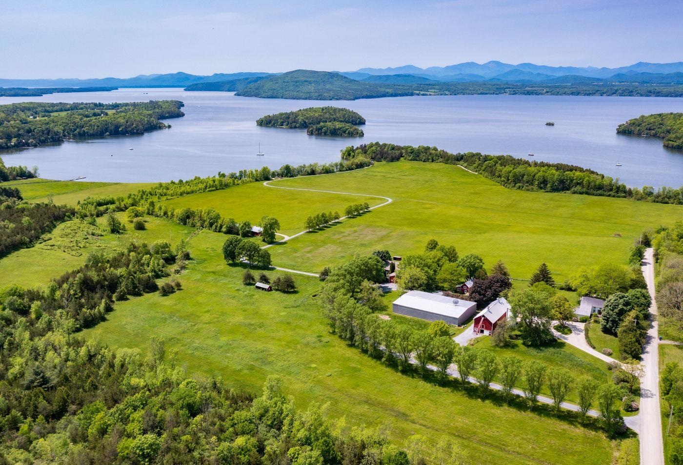 Set across 91± acres of open pasture, mature woodland, and 2, 929± feet of Lake Champlain shoreline, this extraordinary Charlotte estate offers a rare blend of natural beauty and enduring privacy. The traditional-style 5-bedroom main residence features old growth pine floors, hand-hewn beams, multiple fireplaces, a sunroom, and a kitchen outfitted with Viking appliances and a vintage Elmira woodstove. A separate 2-bedroom guesthouse provides lake views and flexible accommodations for guests or staff. Purpose-built for both daily living and large-scale recreation, the property includes a 21-stall horse barn with two tack rooms, a regulation indoor riding arena, and a red barn with hay storage, workshop, and finished office. A private grass airstrip and 48-foot hangar offer rare aerial access. Landscaped grounds feature a spring-fed pond, curated gardens, stone paths, and rolling pastures that lead to the shorelines—just 30 minutes from downtown Burlington.
