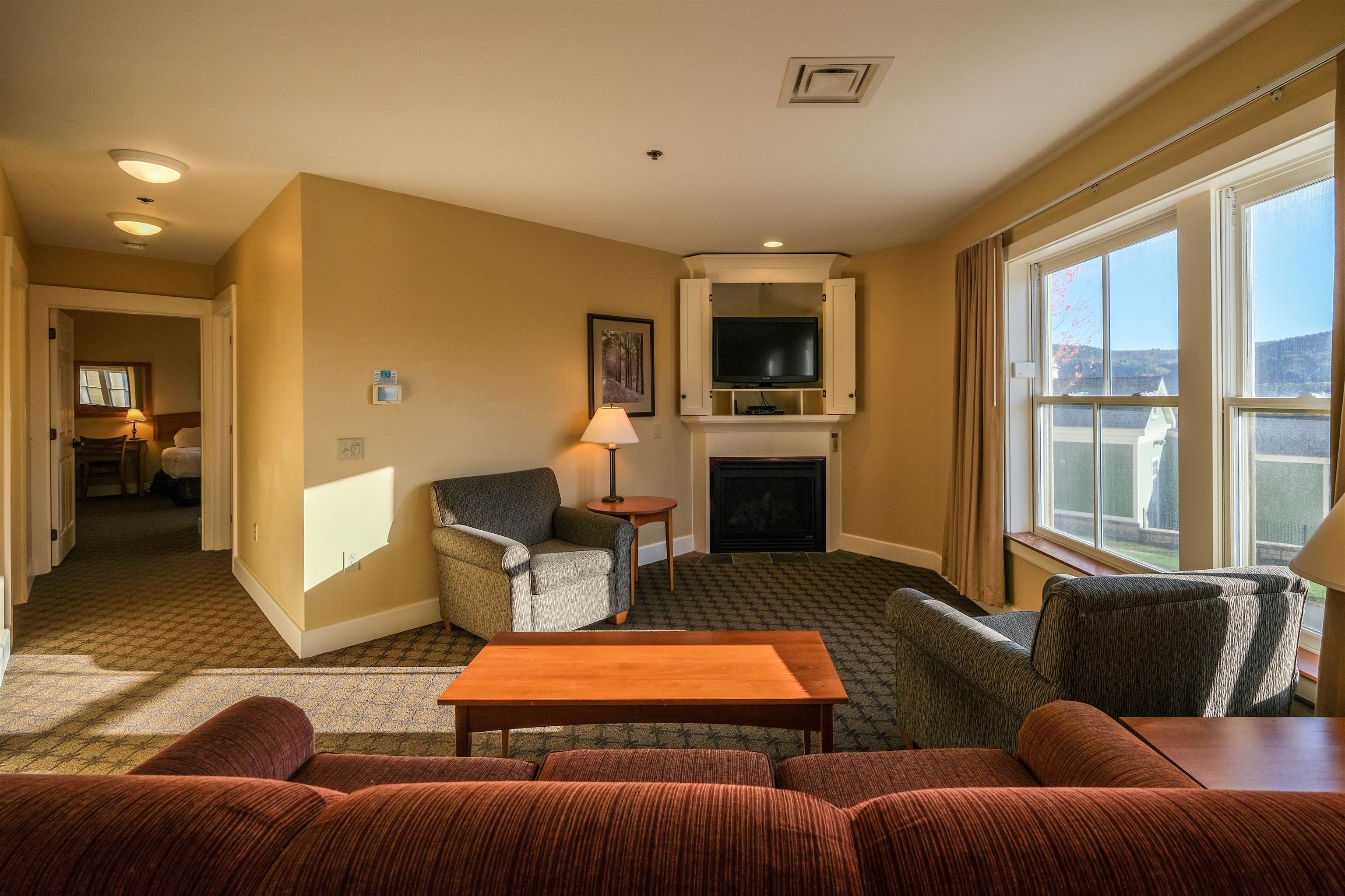 Jackson Gore on Okemo Mountain with this slopeside two-bedroom, two-bathroom corner condominium offering spectacular valley views. Thoughtfully designed for comfort and convenience, this residence features a open-concept living room with a gas fireplace, dining area, and a fully equipped kitchen—perfect for relaxing after a day on the mountain. The primary bedroom offers a king bed, while the second bedroom includes a queen bed, and a queen sleeper sofa in the living room provides additional accommodations. Located in the heart of Okemo’s Jackson Gore Village, this condo has ski-in/ski-out access all winter long. Enjoy underground heated parking, valet service, and gear lockers for ultimate convenience. Resort amenities include a restaurant and bar, cozy lounge areas with wood fireplaces, ski shop, ski school, arcade, and a playground for family fun. After skiing or hiking, unwind in the year-round heated outdoor pool and hot tub or head to The Spring House for access to the indoor pool, hot tub, fitness center, yoga studio, sauna, locker rooms, and pickleball court. Beyond the resort, the Okemo Valley offers an abundance of year-round recreation with a golf course, lakes, hiking trails, and the vibrant village of Ludlow, home to charming restaurants, shops, and local schools. Whether you’re looking for a mountain getaway or an investment opportunity with premier amenities, this Jackson Gore condo delivers the perfect blend of luxury and location on Okemo Mountain. ROFR