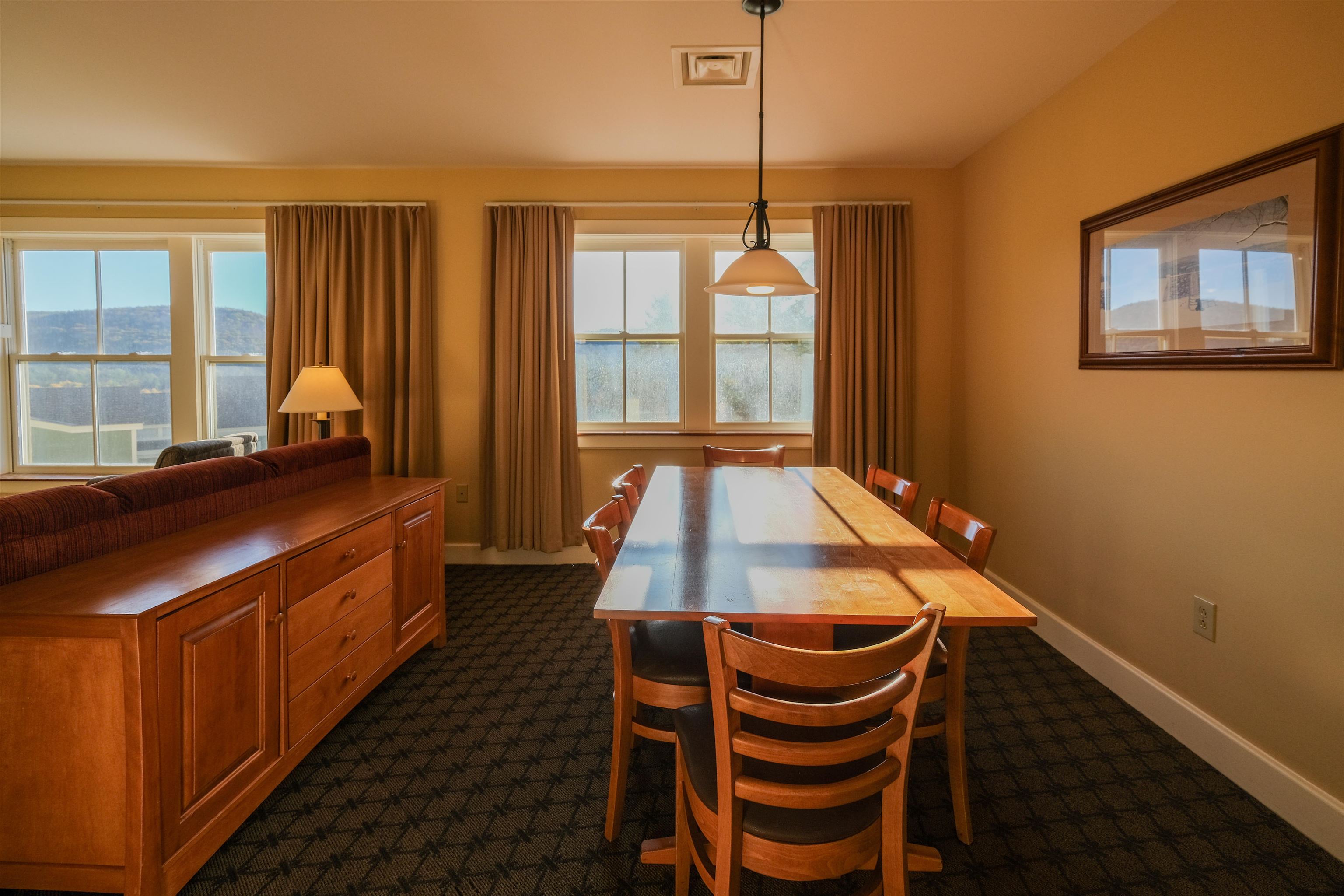 - Dining Area, Draperies, Elevator, 1 Fireplace, Furnished, Hot Tub, Kitchen/Dining, Living/Dining, Primary BR w/ BA, Natural Light, Sauna, Security Door(s), Common Heating/Cooling