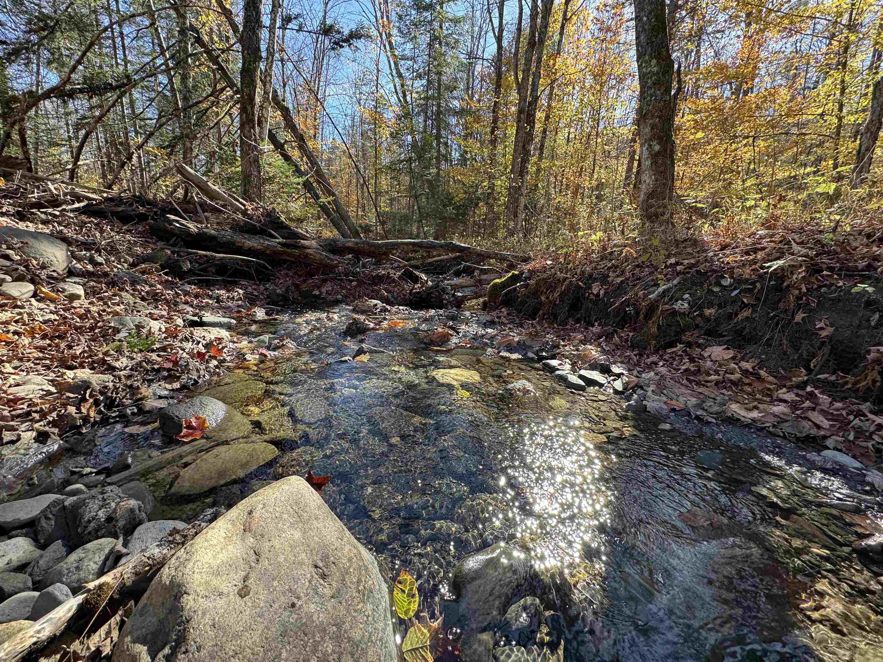 Truly one of the most peaceful and beautiful 25 +/- acre hardwood lots you'll ever walk around. Plenty of evidence of a variety of wildlife. A spring fed brook runs through the property from top to bottom and it did not dry up during the drought. In the past, the owners have seen fish and other critters in several swimming pools. A 24' x 24' unfinished camp is located just off the town road for convenient access year round. Washington Electric Coop services the property and other utilities are available, but not currently hooked up to the camp. With a top of the line standing seam metal roof, the camp is ready for your improvements. Inside the included storage unit is vinyl siding ready to be installed. A new shallow well jet pump system is included to go along with the buried water line to the brook as the seasonal water source for the property. The building appears to sit on concrete blocks. This property will NOT qualify for a residential loan. Cash, construction or land loans only.