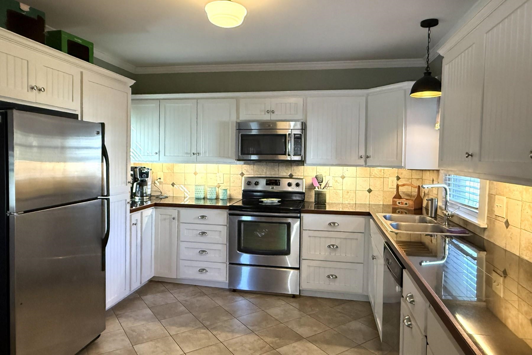 - Dishwasher, Disposal, Dryer, Microwave, Refrigerator, Washer, Electric Stove, Electric Water Heater