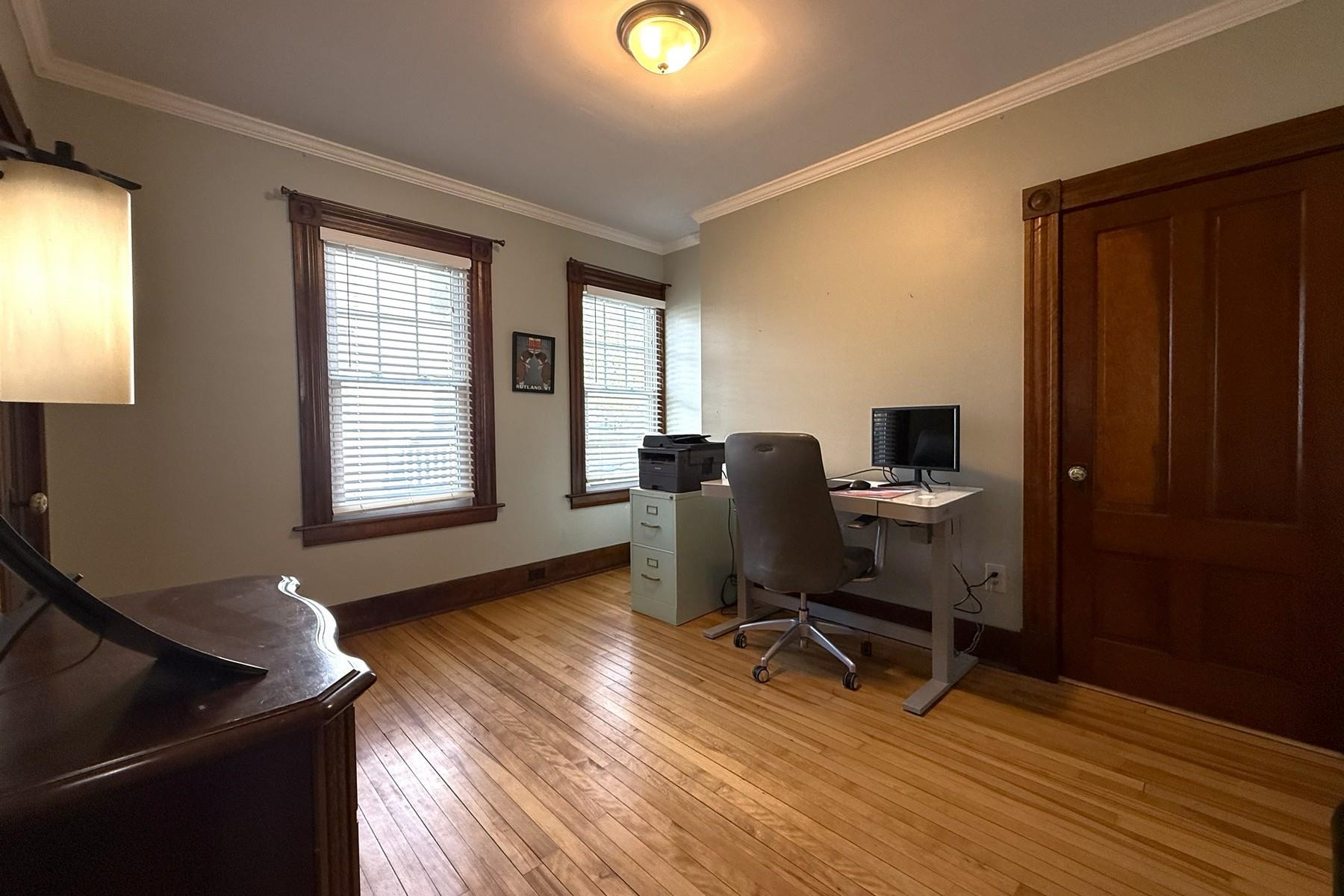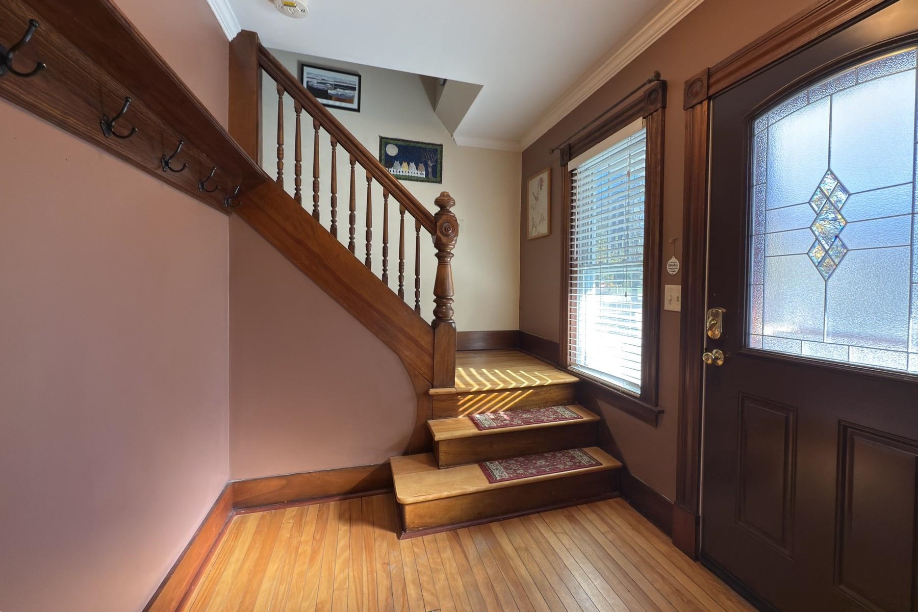 Introducing this Gambrel Gem, a perfect combination of classic charm and modern convenience. You'll love its timeless appeal, with rich original woodwork and hardwood floors throughout, complemented by its easy-care profile thanks to features like vinyl siding, replacement windows, updated plumbing & wiring, mini-split units, and modernized kitchen & baths. The main level is built for effortless living and entertaining, offering a sun-drenched living room with large windows and a welcoming dining room ideal for hosting gatherings. The dining room opens to a spacious cook's kitchen, equipped with sleek stainless steel appliances and plenty of counter space to unleash your culinary skills. The main level is rounded out by a versatile first-floor bedroom (or office) and a 3/4 bath. Upstairs, a spacious primary bedroom with dual closets anchors two additional generously-sized bedrooms and a full bath. A finished attic room provides flexible bonus space, perfect for a range of uses. Outside, enjoy a low-maintenance yard and a detached one-car garage. Within walking distance to in-town conveniences and easy access to outdoor recreation, including Rutland Country Club, Pine Hill Park, and legendary Killington-Pico ski resorts. Showings available starting 10.17.25.