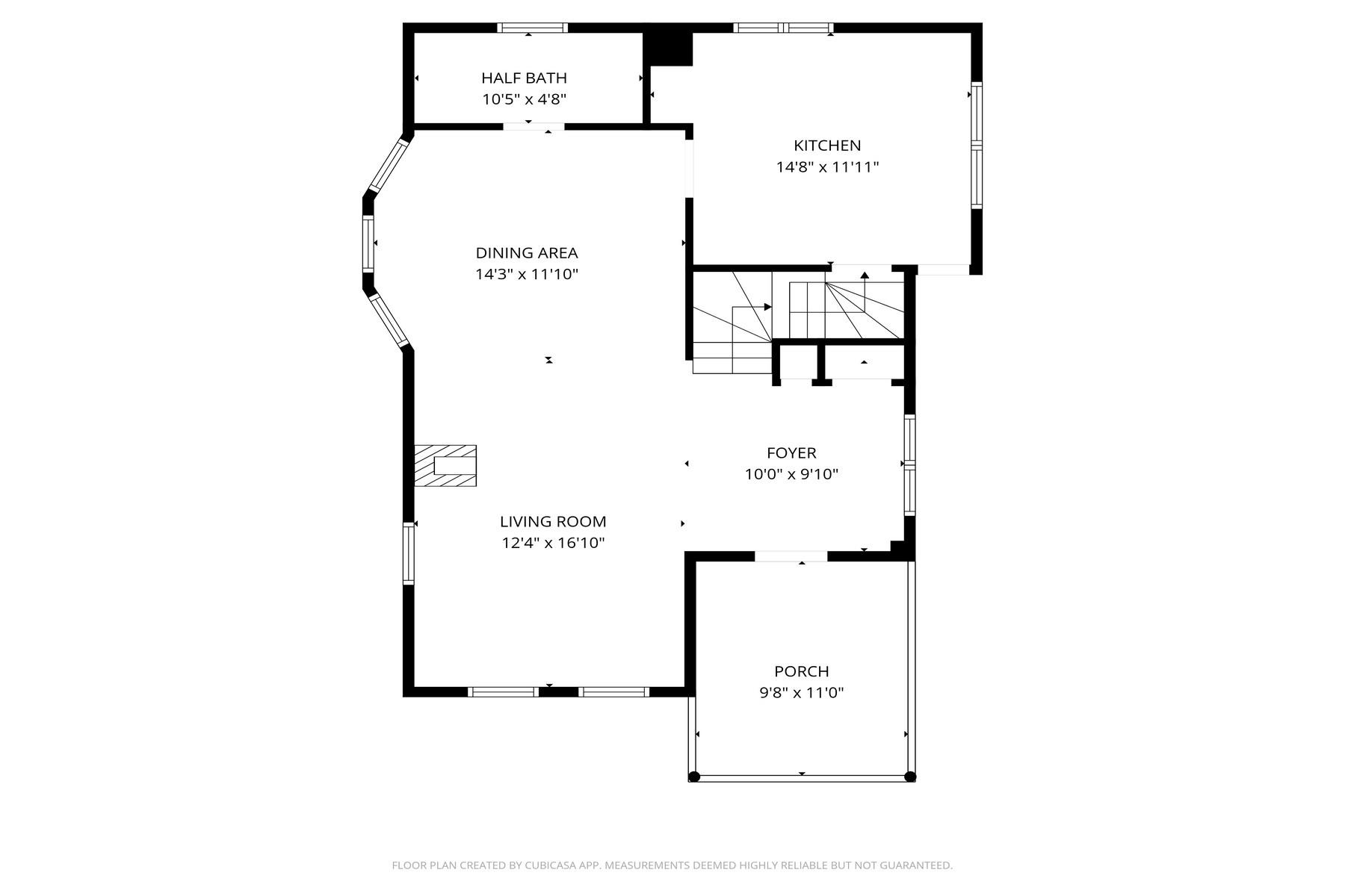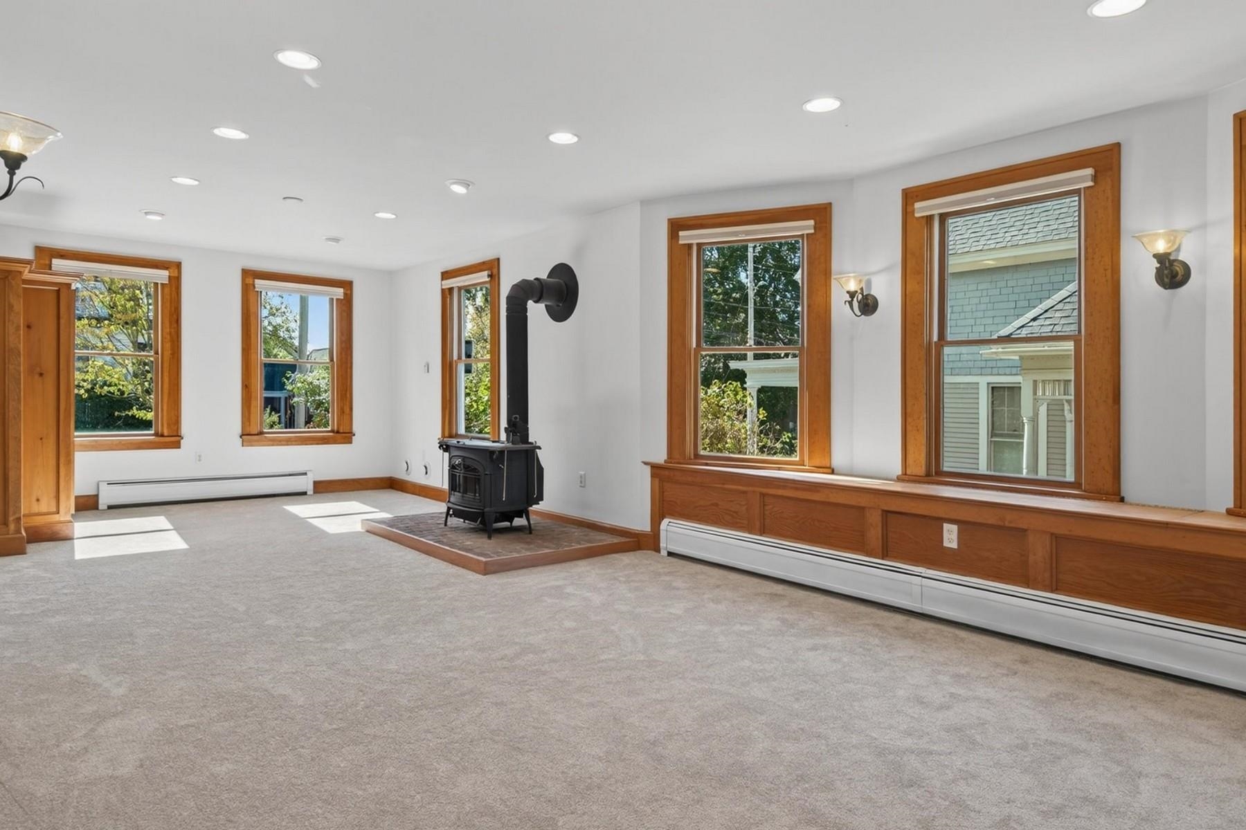 - Blinds, Dining Area, Hearth, Living/Dining, Natural Light, Natural Woodwork, Walkup Attic