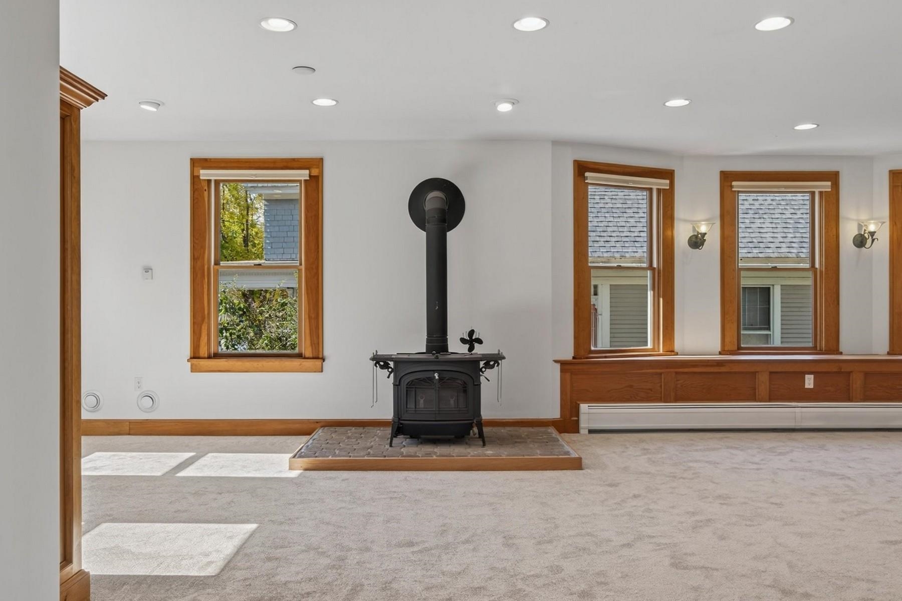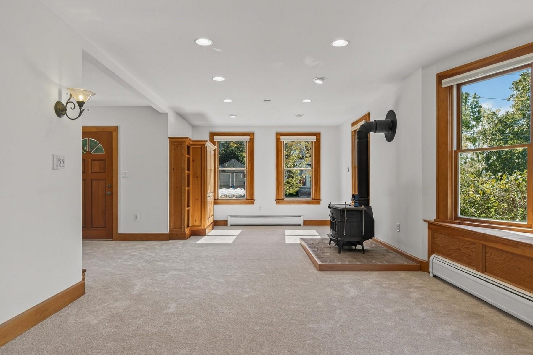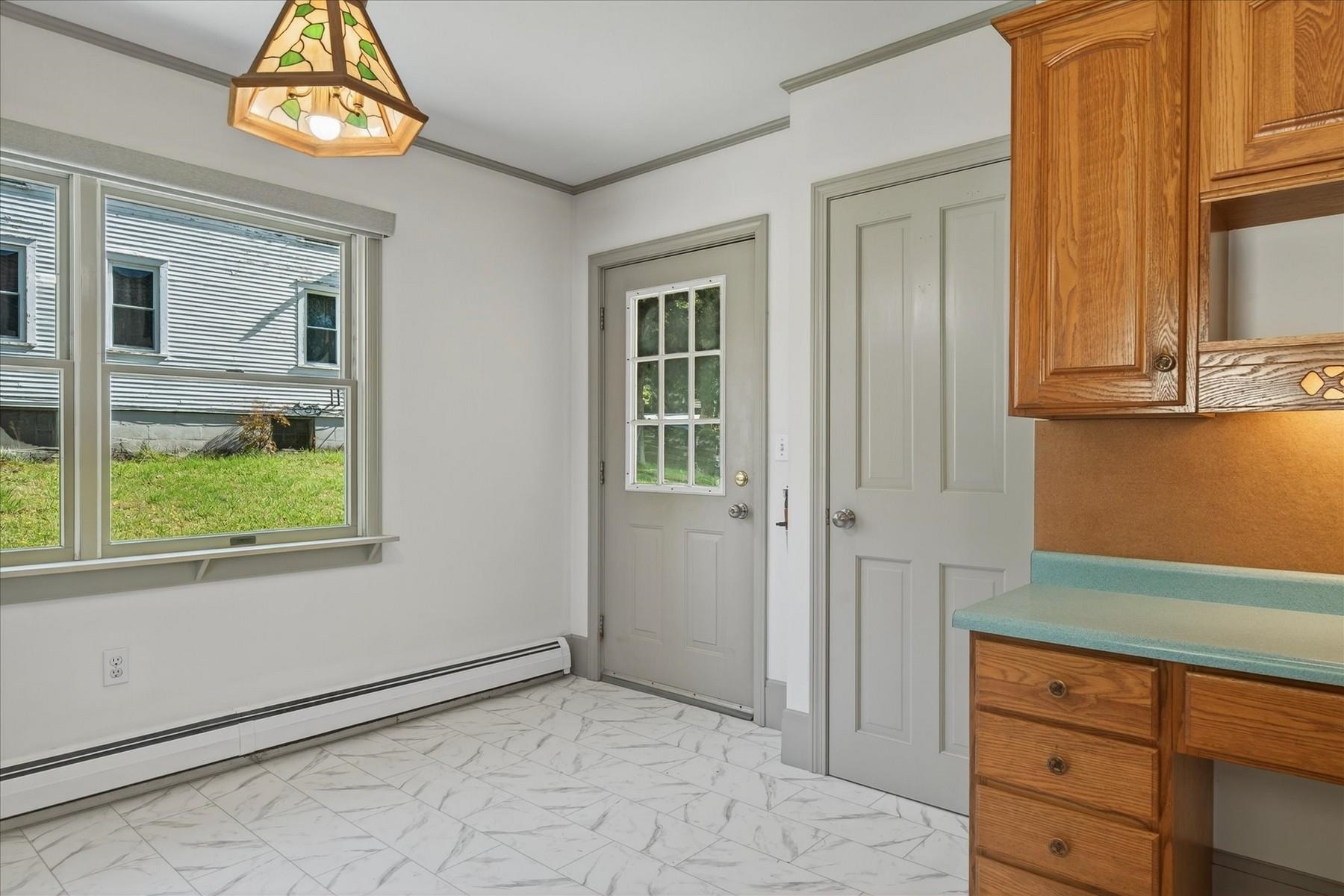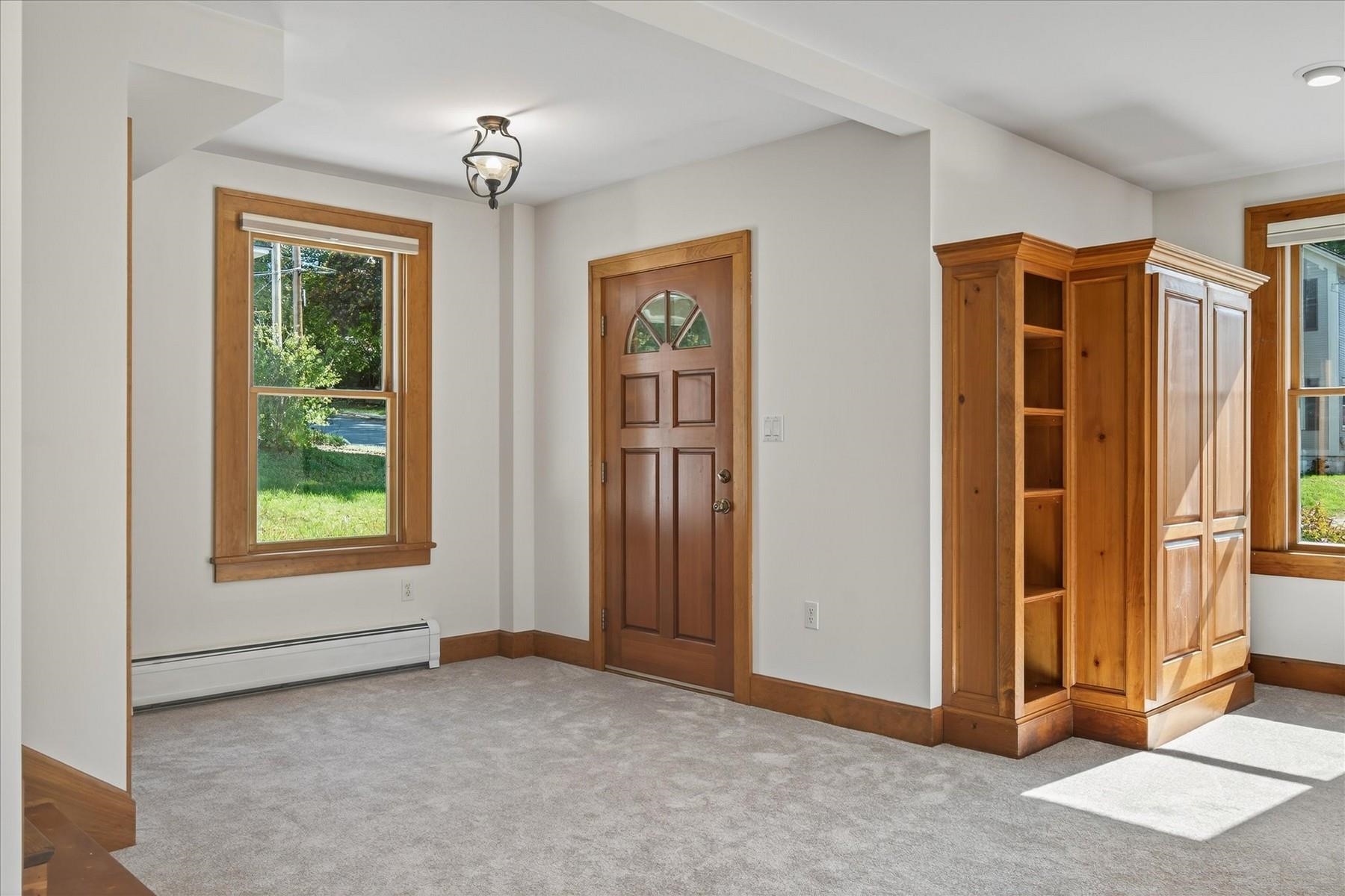 Tucked away on a dead-end street, this inviting home offers the perfect blend of comfort, character, and convenience. Enjoy the landscaped front yard, a backyard with a privacy fence, and easy access to Rotary Park—just steps away for playtime on the playground, a match on the tennis courts, or open field activities. Inside, the home balances a casual warmth with timeless charm. The welcoming front entry leads to a cozy living room and a spacious dining area filled with natural light. Fresh new carpeting complements the gorgeous natural woodwork throughout. The large kitchen features oak cabinetry with crown molding, a pantry cabinet, new flooring, and plenty of room to add an island. A built-in desk area adds convenience for meal planning, work-from-home needs, or keeping the household organized. Upstairs, you’ll find three comfortable bedrooms—including a spacious primary with generous closet space and wood floors. A full bath completes the second floor. Smart upgrades enhance both comfort and energy efficiency, including newer Andersen windows, attic insulation, basement weatherization, a brand-new heat pump water heater, and the installation of a wood stove that has been recently cleaned and is ready for the heating season. Two classic covered porches, a paved driveway, and a detached garage—a must for Vermont winters—add to the home’s appeal. With its prime location, thoughtful updates, and welcoming feel, this property is truly a place to call home.
