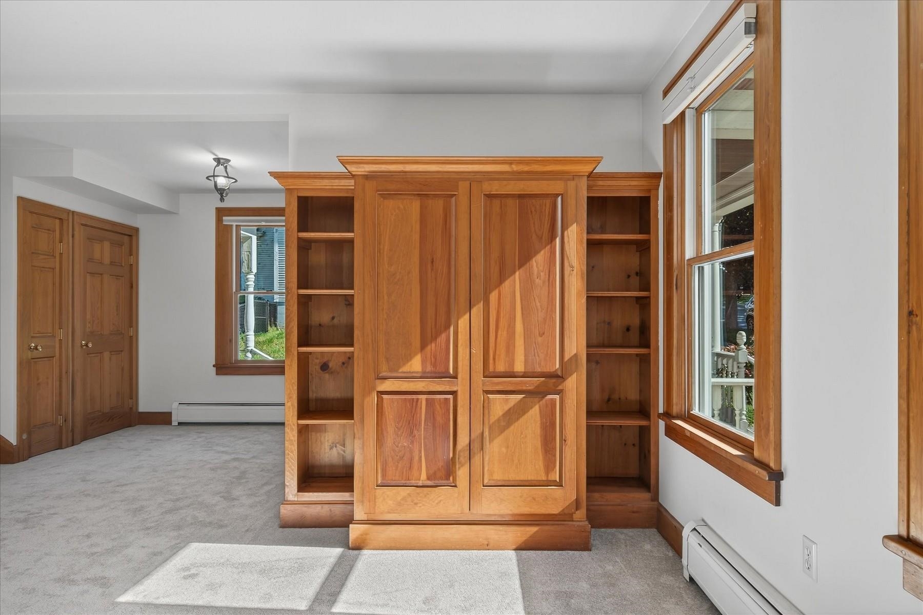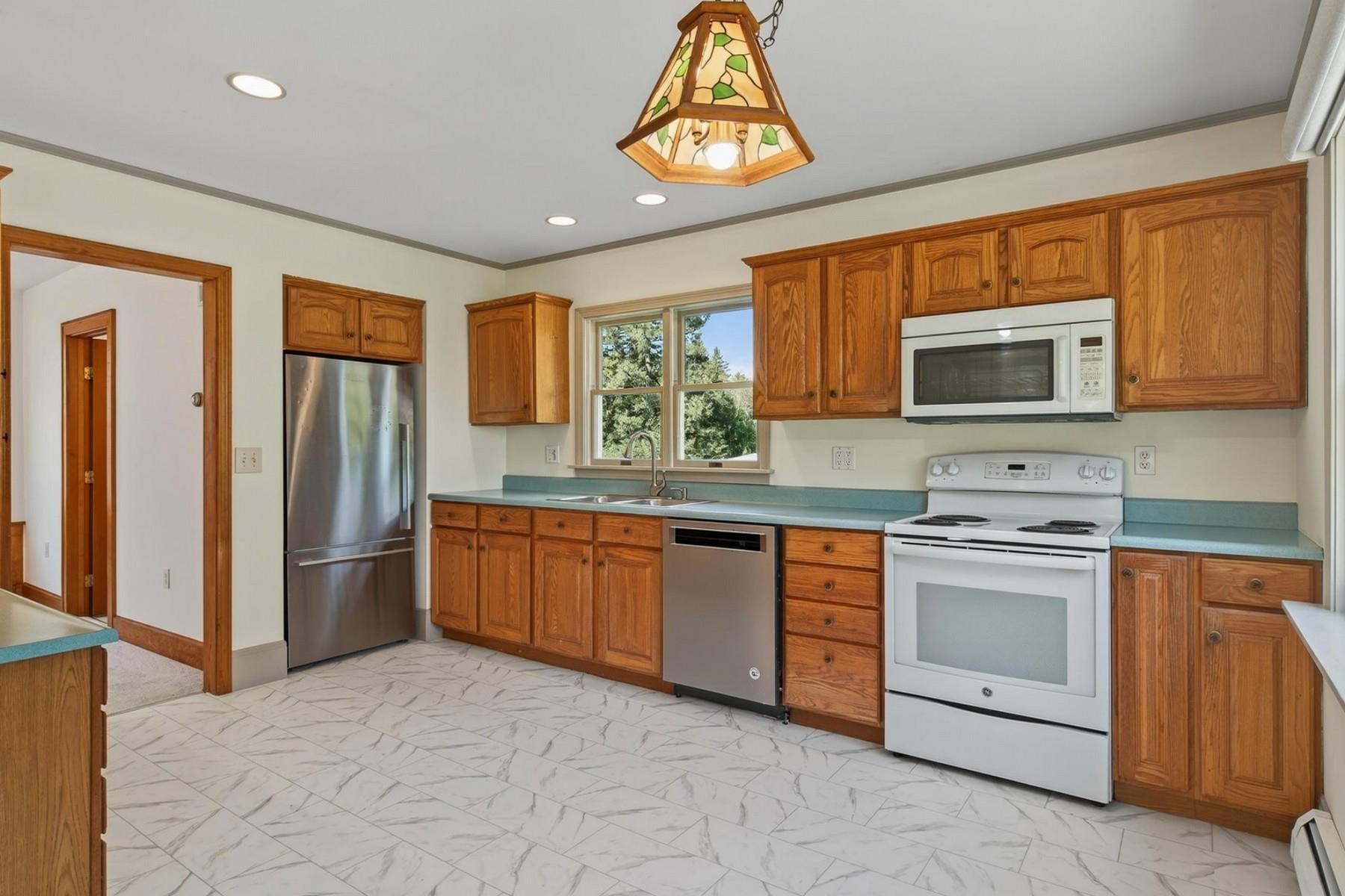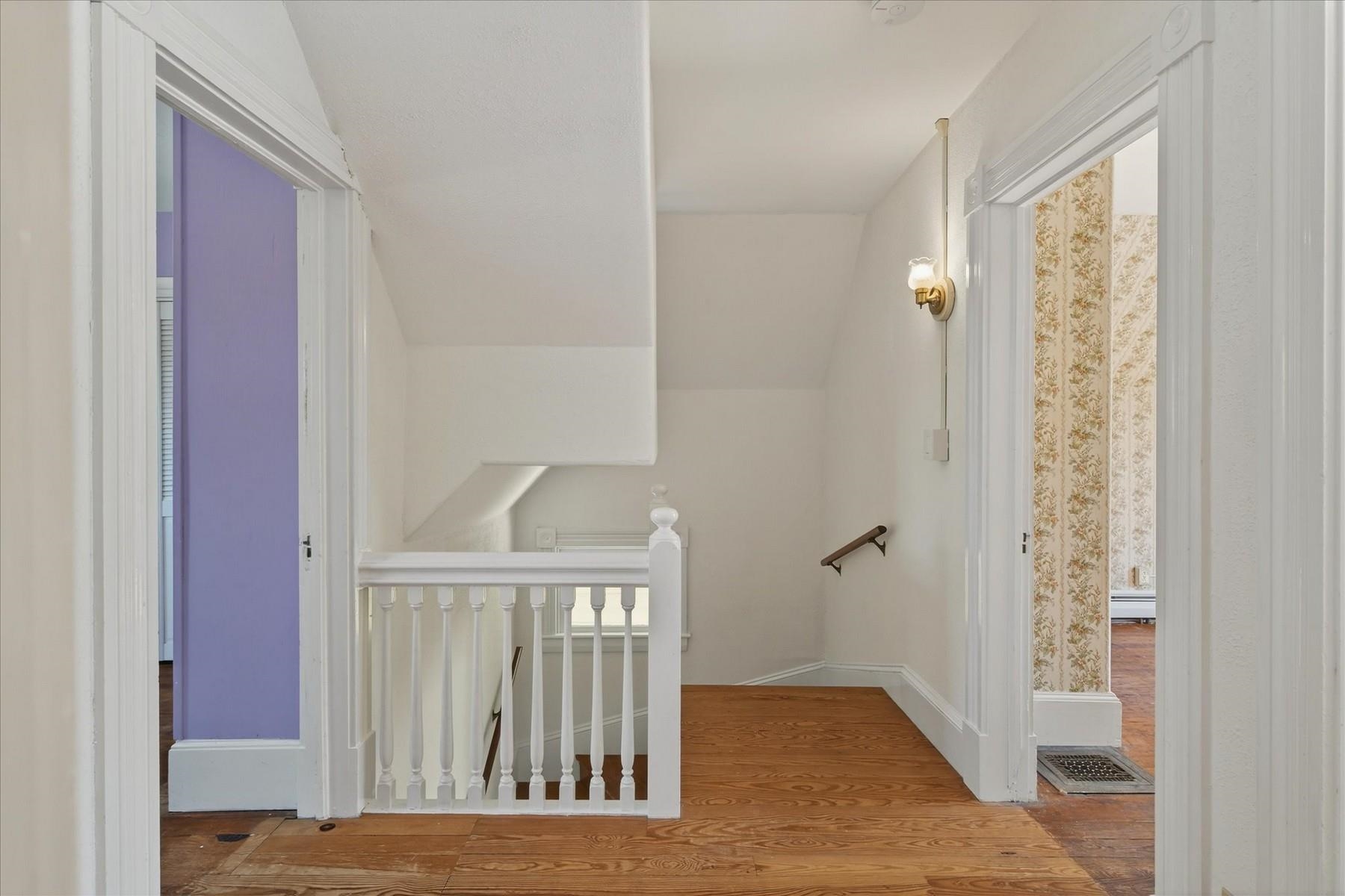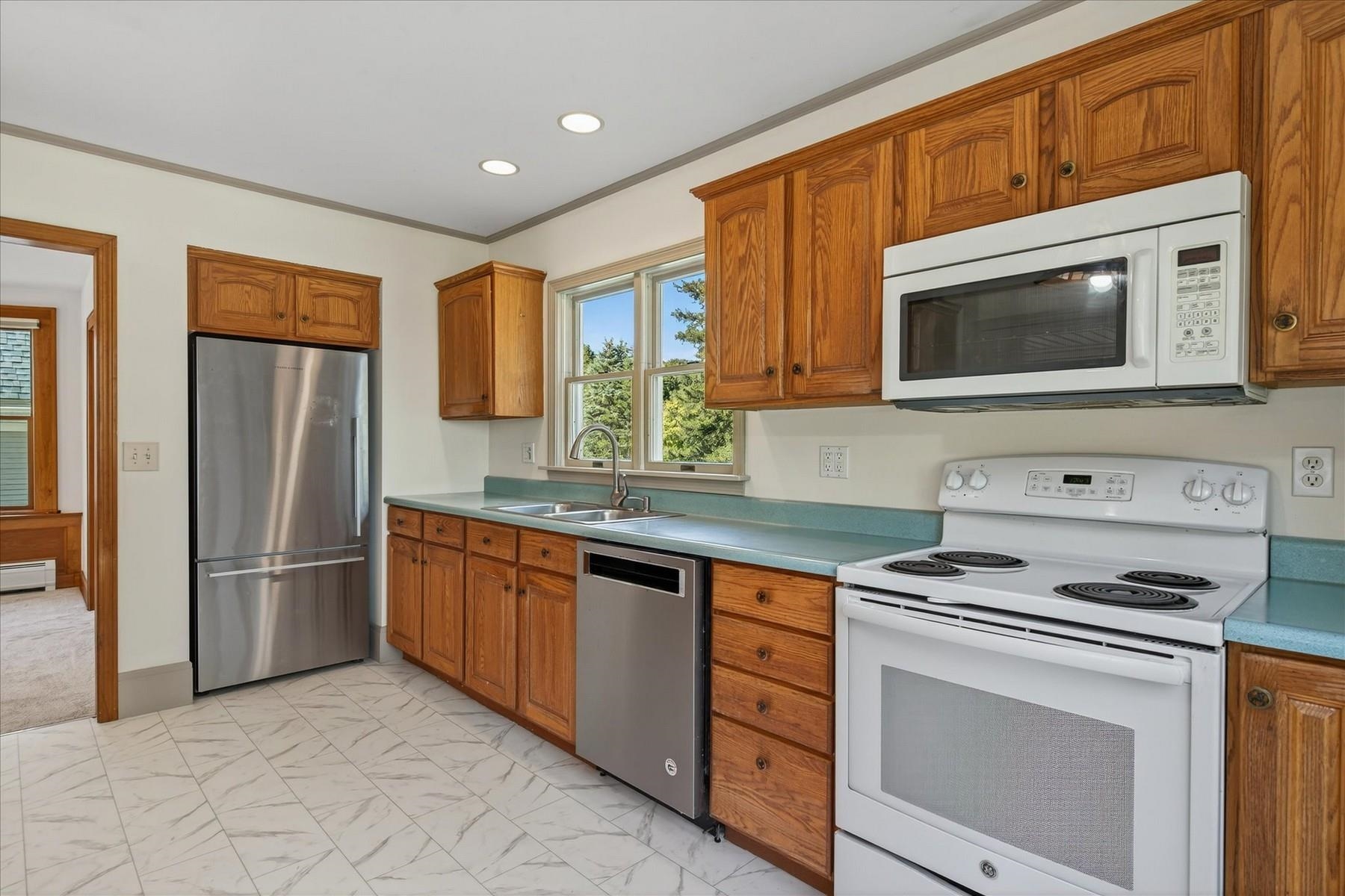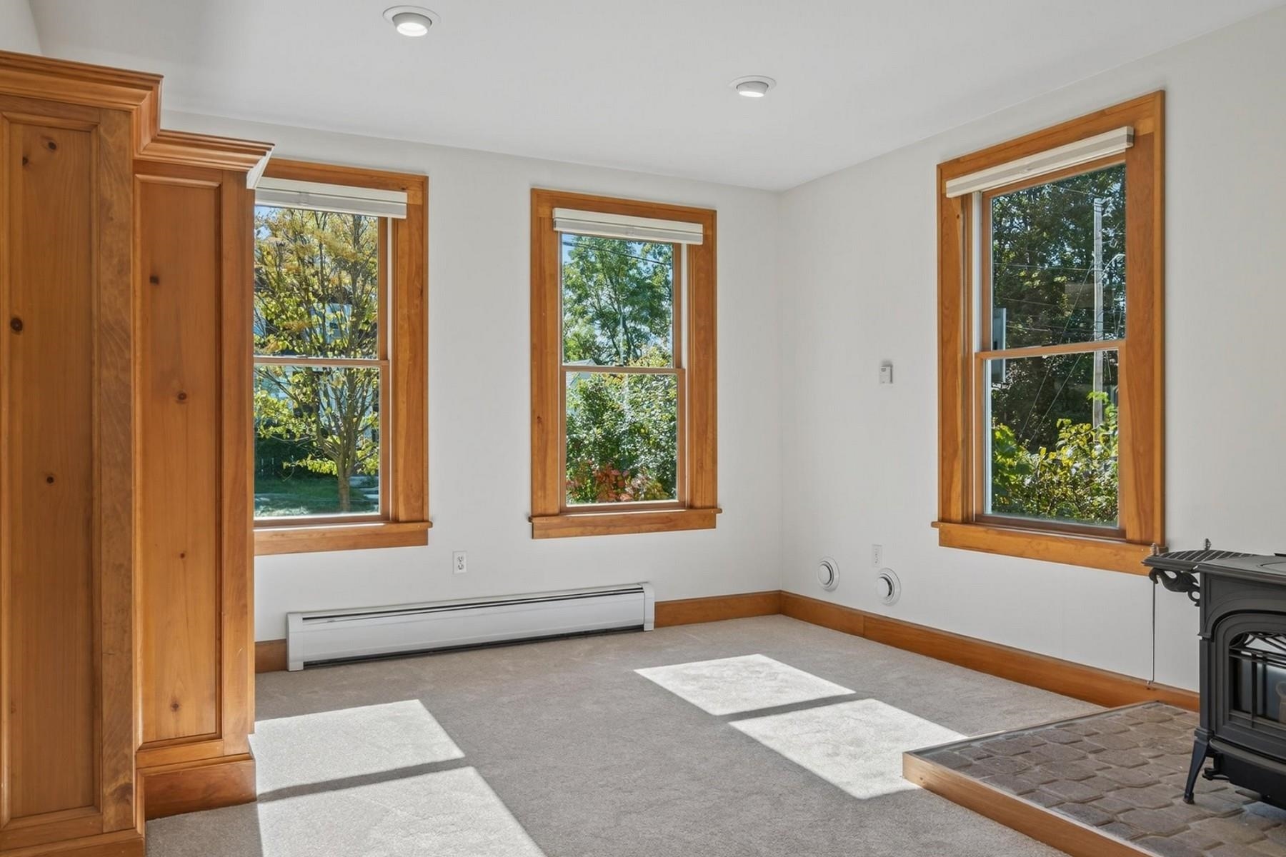 Tucked away on a dead-end street, this inviting home offers the perfect blend of comfort, character, and convenience. Enjoy the landscaped front yard, a backyard with a privacy fence, and easy access to Rotary Park—just steps away for playtime on the playground, a match on the tennis courts, or open field activities. Inside, the home balances a casual warmth with timeless charm. The welcoming front entry leads to a cozy living room and a spacious dining area filled with natural light. Fresh new carpeting complements the gorgeous natural woodwork throughout. The large kitchen features oak cabinetry with crown molding, a pantry cabinet, new flooring, and plenty of room to add an island. A built-in desk area adds convenience for meal planning, work-from-home needs, or keeping the household organized. Upstairs, you’ll find three comfortable bedrooms—including a spacious primary with generous closet space and wood floors. A full bath completes the second floor. Smart upgrades enhance both comfort and energy efficiency, including newer Andersen windows, attic insulation, basement weatherization, a brand-new heat pump water heater, and the installation of a wood stove that has been recently cleaned and is ready for the heating season. Two classic covered porches, a paved driveway, and a detached garage—a must for Vermont winters—add to the home’s appeal. With its prime location, thoughtful updates, and welcoming feel, this property is truly a place to call home.