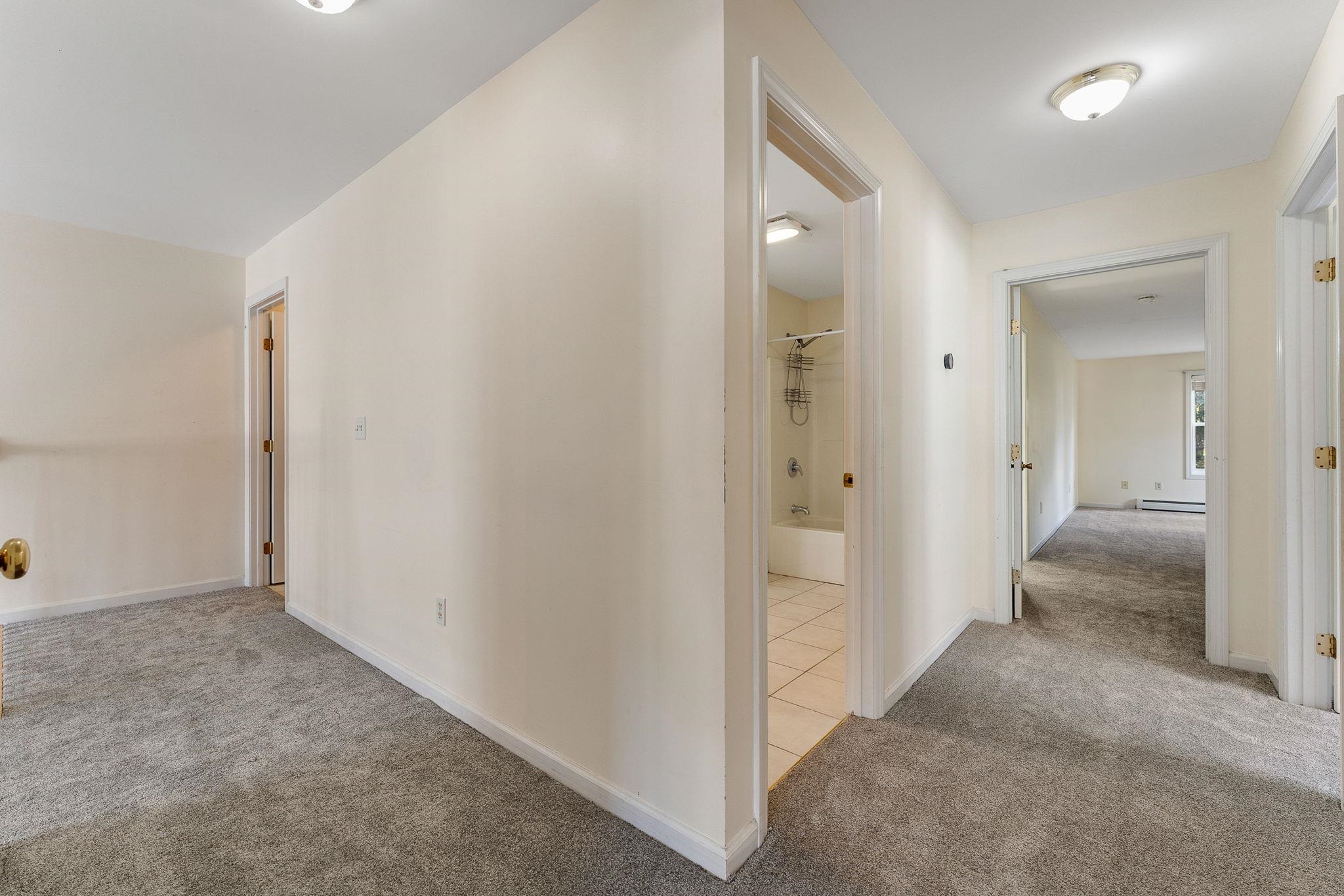Welcome to Oak Ridge Condominiums—a sought-after community with an in-ground pool, tennis courts, playground, and nearby trails. This spacious 3-bedroom, 3-bath townhouse features brand new carpet, tile, hardwood floors and a smart, open layout. The main level offers a formal living room with gas fireplace, a bright kitchen with island, and a dining/family area that opens to a private deck. A half bath sits conveniently off the garage entry. Upstairs, the primary suite includes a walk-in closet and a full bath with soaking tub, shower, and double sinks. Two additional bedrooms, a full bath, and a laundry room complete the level. The unfinished basement adds great storage potential. Enjoy tree-lined views, quiet cul-de-sac, easy access to The Essex Experience and Indian Brook Reservoir, and a quick commute to Burlington.