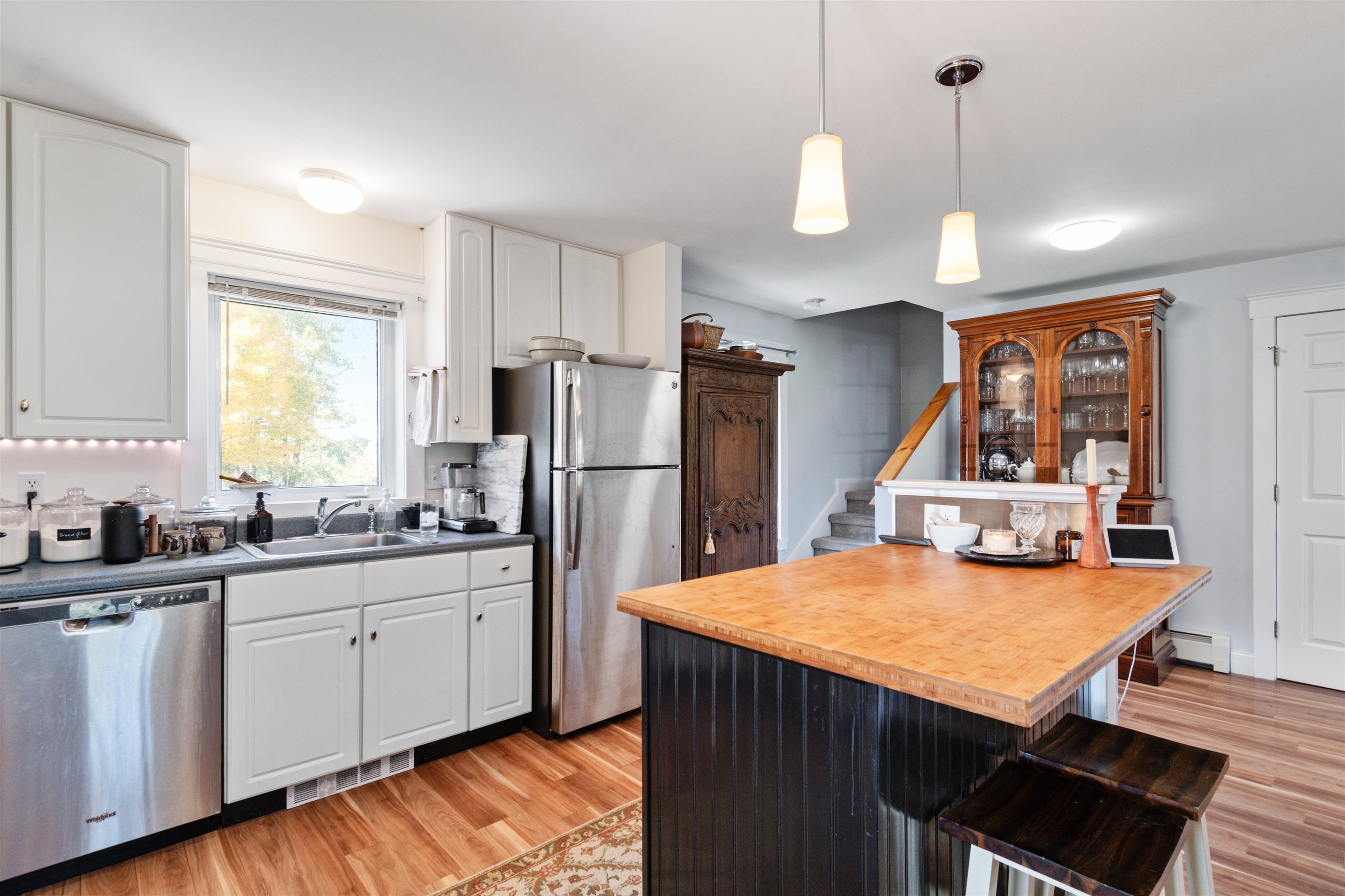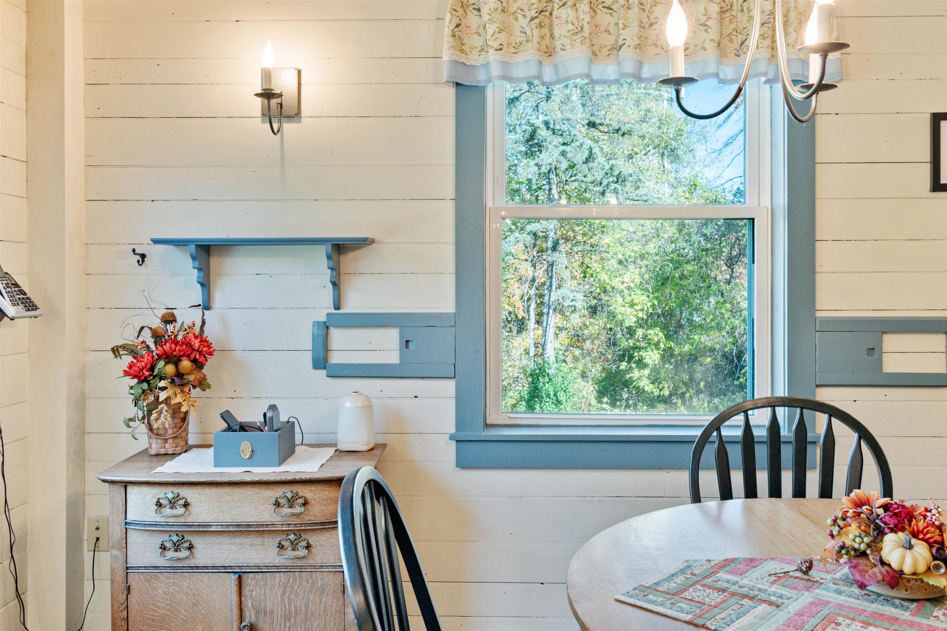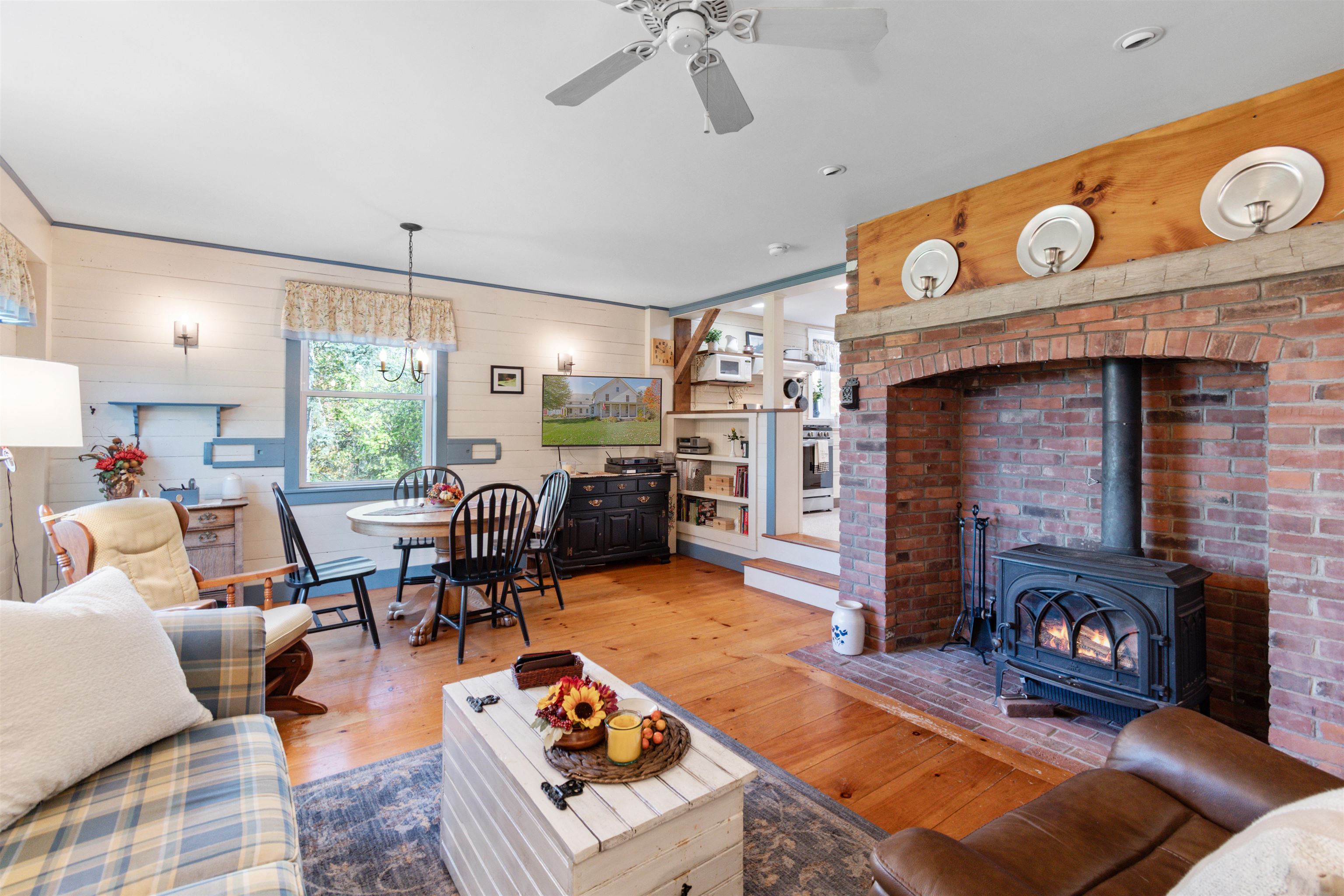 - Blinds, Dining Area, 1 Fireplace, Hearth, In-Law/Accessory Dwelling, Primary BR w/ BA, Natural Light, Natural Woodwork, Walk-in Closet, Wood Stove Insert, 2nd Floor Laundry, Attic with Pulldown
