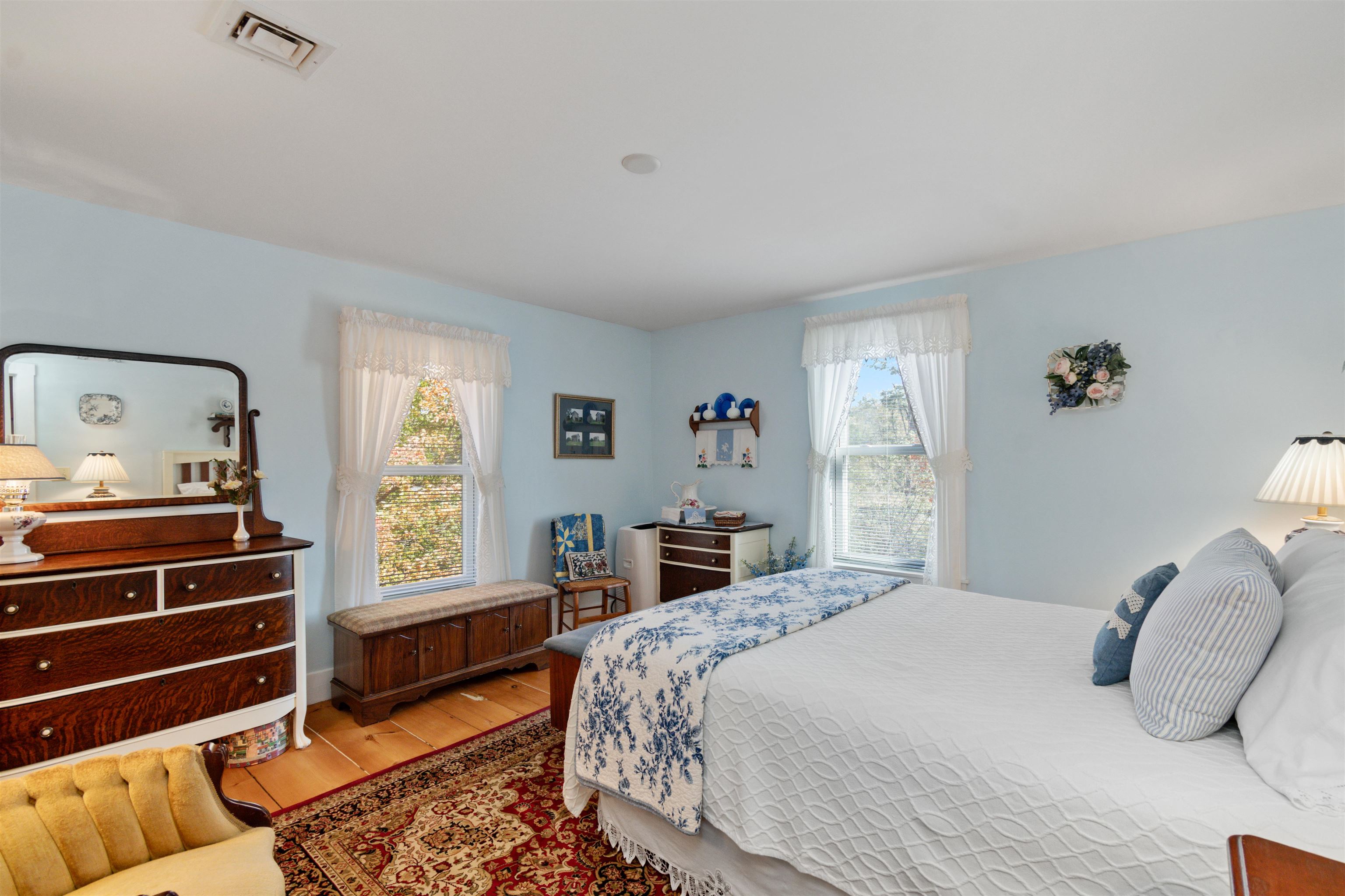 Welcome home! This Vermont farmhouse set on over 55 acres near Elm Hill Farm will leave you breathless. The vintage details are unmatched including wide-plank wood floors throughout, original sliding pocket doors, vintage light fixtures, board-and-batten walls, and a charming checkered tile entry. A spacious foyer welcomes you into the main level, open to a formal sitting room which transitions into the formal dining space. The kitchen offers easy flow to both formal and casual dining spaces, creating a perfect layout for everyday living and entertaining. An additional cozy family room centers around a hand-laid stone fireplace. Large windows fill the living areas with natural light, a main-level office provides flexibility for remote work, creative space, or study. Upstairs, four generous bedrooms & two full baths provide peaceful retreats with classic farmhouse character and ample storage. Outside, two covered front porches invite quiet moments and seasonal enjoyment. A new barn-style garage with concrete floor offers great space for storage, workshop use, or hobbies. The 55-acre parcel includes open pasture currently hayed by a local farmer and borders Vermont-protected wetlands that enhance the natural views and privacy. A separate-entry apartment offers flexible living or income potential. Great opportunity for multi-generational living or a family homestead. Recent updates include a newer furnace, windows, roof and central AC. Conveniently located near in Colchester VT.