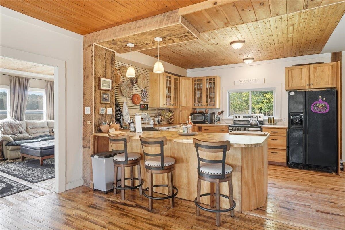 - Ceiling Fan, Dining Area, Wood Fireplace, 1 Fireplace, Hearth, Kitchen Island, Kitchen/Dining, Laundry Hook-ups, Natural Light, Natural Woodwork