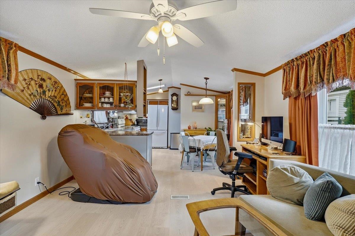 - Ceiling Fan, Draperies, Kitchen/Dining, Natural Light