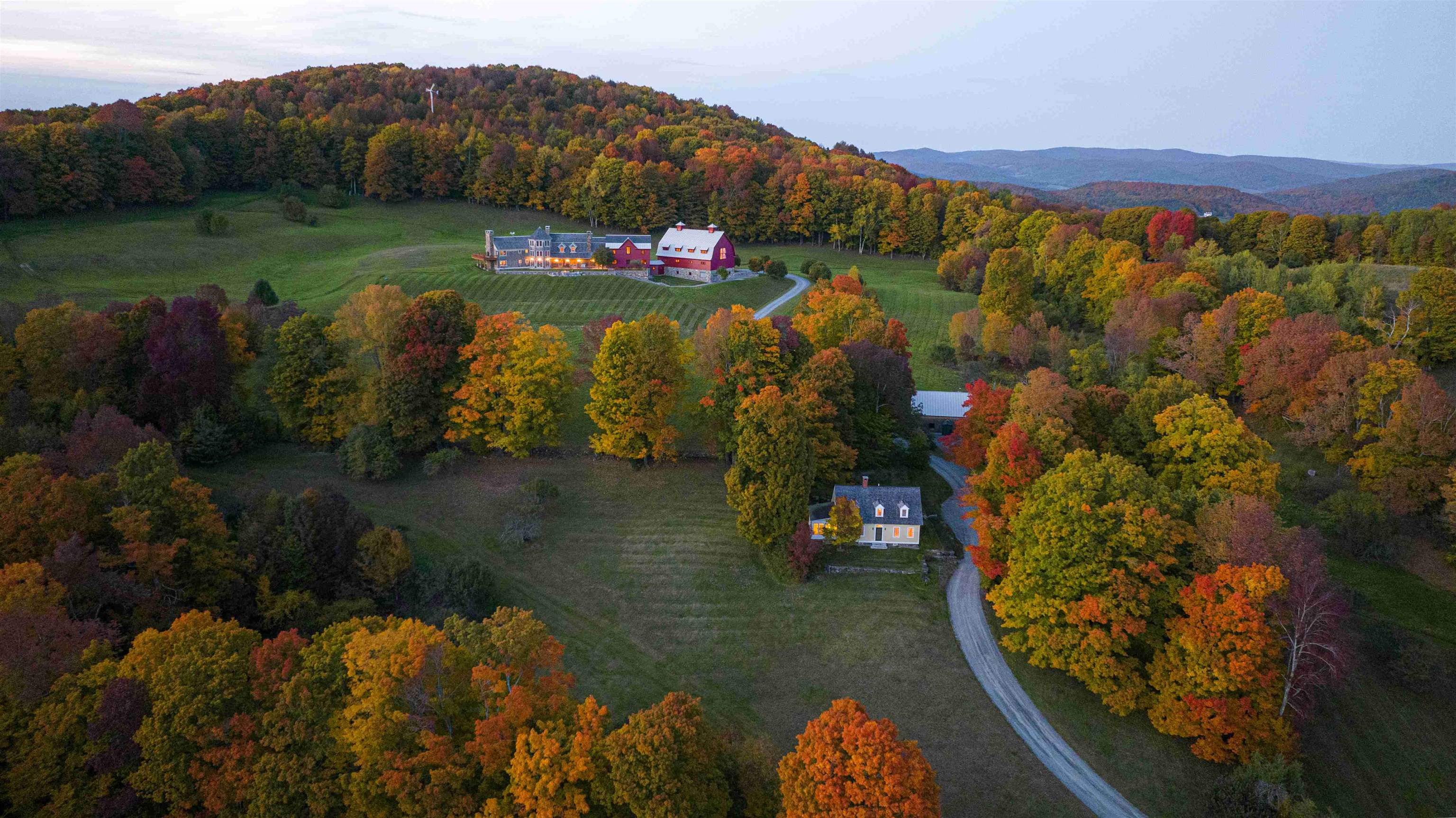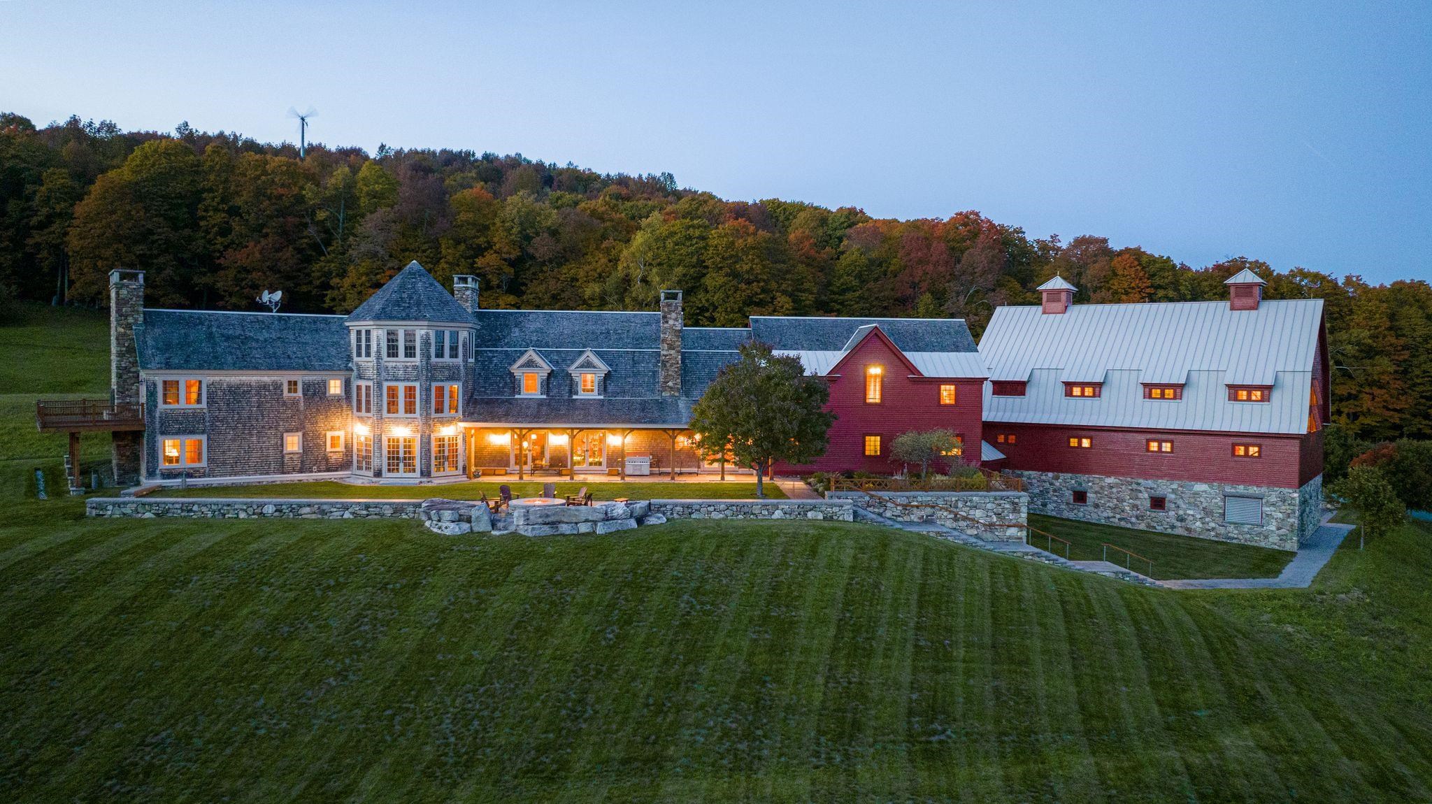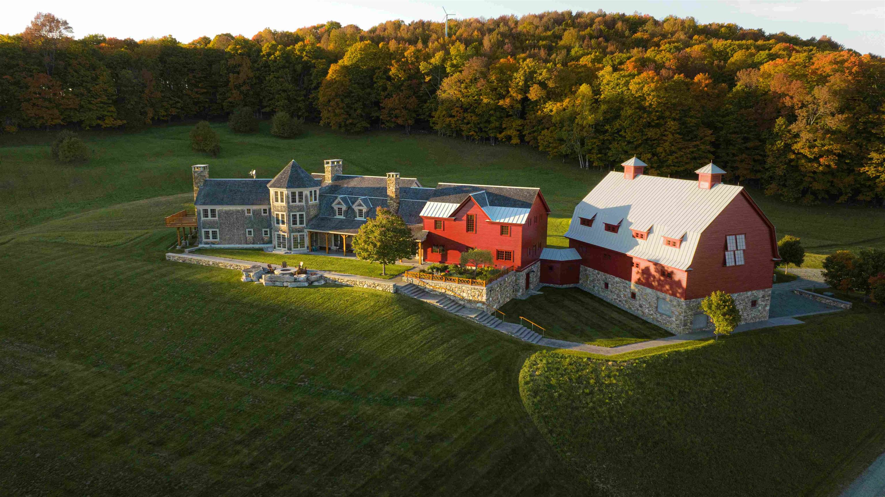 Star Hill Farm is completely private, hidden on a hillside with pastoral and mountain views in the heart of South Woodstock. From the valley floor to the top of Meetinghouse Hill, you will be inspired by its beauty, a mesmerizing 183.7+/- acre oasis over gorgeous terrain with fields, woodlands, trails, and stone walls. The historic 2-bedroom guest house and party barn are fully restored, and located next to the swimming pond. The main residence, completed in 2010, consists of the center core with porch - for cooking, gathering and entertaining; the owner’s quarters with a 2nd floor suite and 2 bedrooms below; the guest wing with 3 first-level bedrooms, second-floor game room and adjacent 8-bed bunk room and a 4-story octagon with wine cellar at the base and flexible multi-use spaces above. All 7 bedrooms are ensuite plus 3 powder rooms. The attached gambrel barn is a professional grade gymnasium with 6-car heated garage underneath. The interior is like a grand lodge in the American West while the exterior with shingles and gambrel barn is traditional New England. The systems and mechanicals are all commercial grade. The finishes and craftsmanship are consistently superb. The atmosphere is relaxed and fun. As a complete fully furnished package, each and every attribute at Star Hill Farm - the location, land, exposure, privacy, views, guest house, barn, pond, residence and gymnasium- is exceptional, creating one of the finest properties in Vermont.