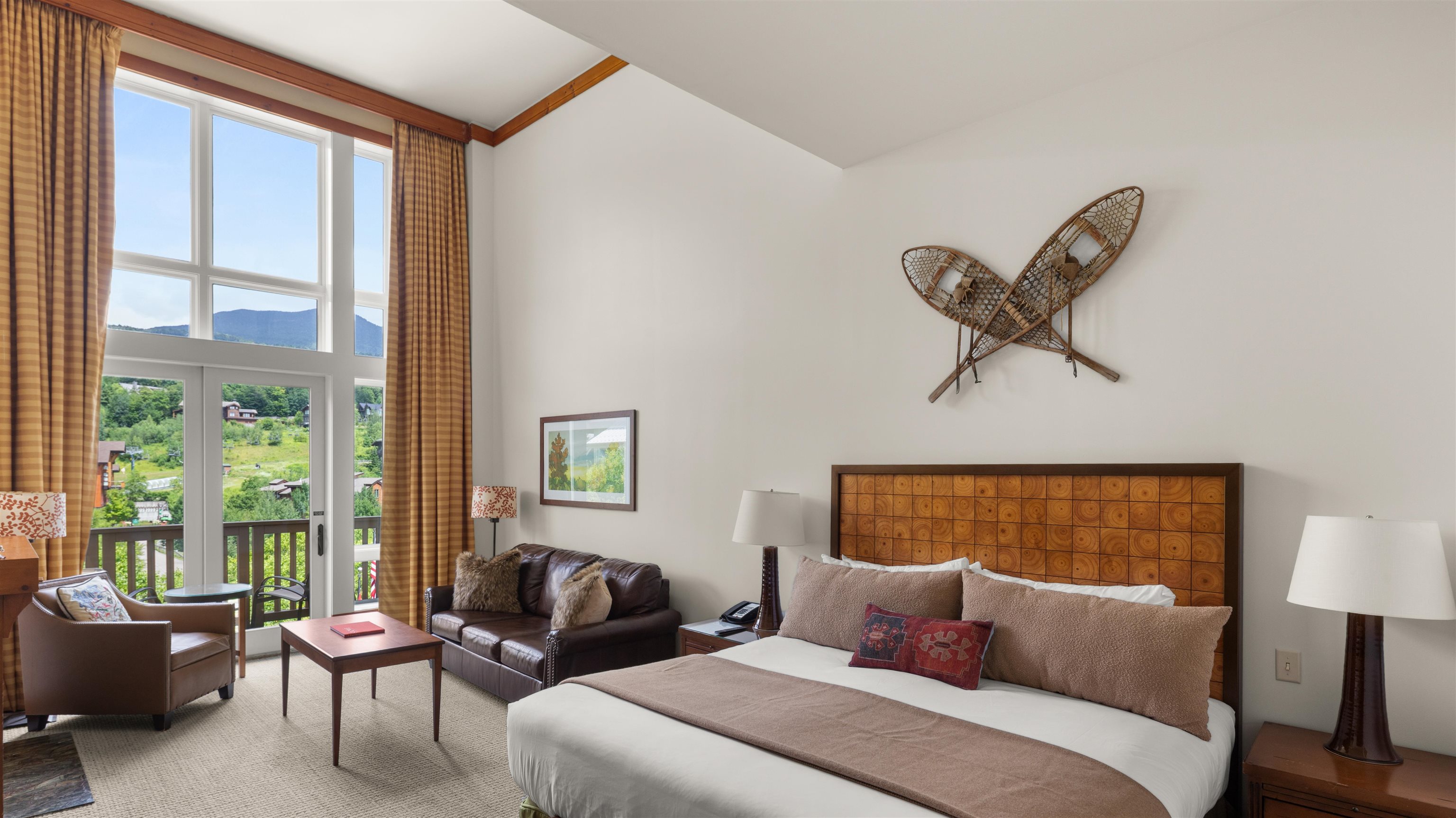 First Chair? You’re There! Enjoy ownership at the Stowe Mountain Lodge in a ridge-line studio, perched on the 5th floor. Floor-to-ceiling windows frame breathtaking views of Spruce Peak, immersing you in the beauty of Vermont year-round. The 518 sq ft studio room features a private deck, King Bed, a queen-sized sleeper sofa in the spacious sitting area and a stone-framed gas fireplace, making this the perfect retreat for Après ski, hiking, biking, golfing and all Vermont has to offer. This unit stands apart the unit has been totally renovated with furniture upgrades, the bathroom is appointed with marble sink, floor, and vanity. You’ll have both a walk-in shower and a separate relaxation tub to suit your mood. The well equipped kitchenette is complete with a stove top, microwave and dishwasher. This one checks all the boxes for vacations with ease and boasts an excellent rental history as well.