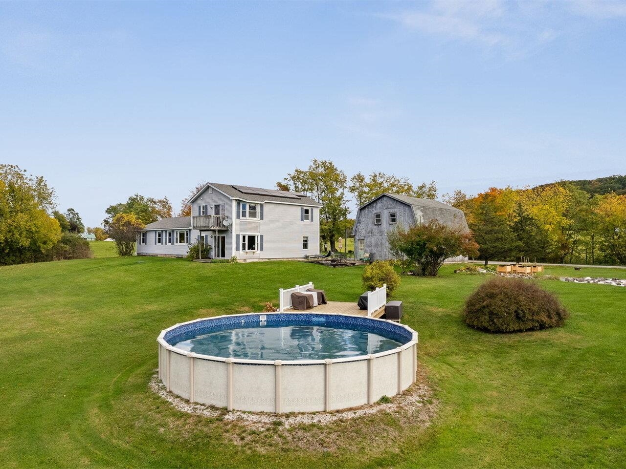 Welcome to this spacious and well-maintained home with a newer heating system, some new windows, hot water tank, and more. Sitting on a generous 1.5-acre lot with stunning views, this property is ideal for those who value country living while remaining within easy commuting distance to Vergennes and Burlington. Step inside to a large foyer that leads you through the home’s thoughtfully designed layout. The main floor features three bright bedrooms and a full bath, along with convenient first-floor laundry. The inviting living room provides plenty of space for gatherings, while the kitchen offers an abundance of storage and counter space, making it a perfect fit for both daily living and entertaining. The second floor expands the living options with an additional bedroom, a spacious office, another bathroom, and a charming balcony where you can take in the Vermont scenery. A full basement adds even more storage and potential. Outside, you’ll find a detached garage with storage above, providing room for vehicles, tools, or hobbies. A pool offers a refreshing retreat during summer months, while the private road ensures peace and quiet. With its blend of modern conveniences and serene surroundings, this property delivers the best of Vermont living.
