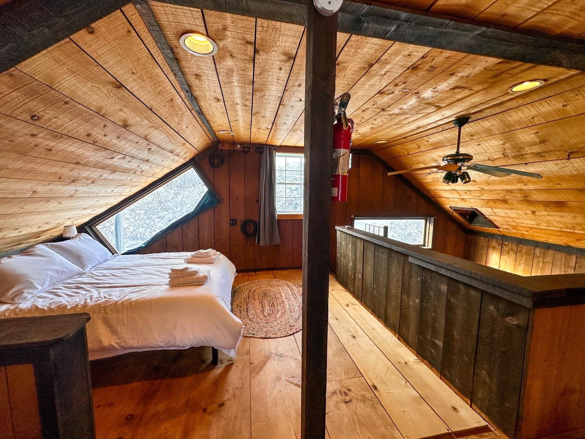 Escape to Your Mountain Retreat! Discover this charming 800 sq ft cabin, perfect for a weekend getaway or a cozy full-time residence. Nestled on a beautifully landscaped 10.9-acre lot, this property offers stunning mountain views, serene frontage on Tamarac Brook, and charming stone walls that add to its rustic appeal. Inside, you'll find a loft bedroom, 3/4 bath, cathedral ceiling, and a large window that fills the space with natural light. Step out onto the deck to take in wildlife and breathtaking sunsets. Designed for comfort and enjoyment, this cabin features amenities to make your stay memorable. Located close to all your recreational desires—from snowmobiling, 4-wheeling, mountain biking, snowshoeing, to downhill and cross-country skiing—your outdoor adventures are right at your doorstep. Whether seeking a peaceful retreat or a permanent home in nature, this mountain cabin has it all!