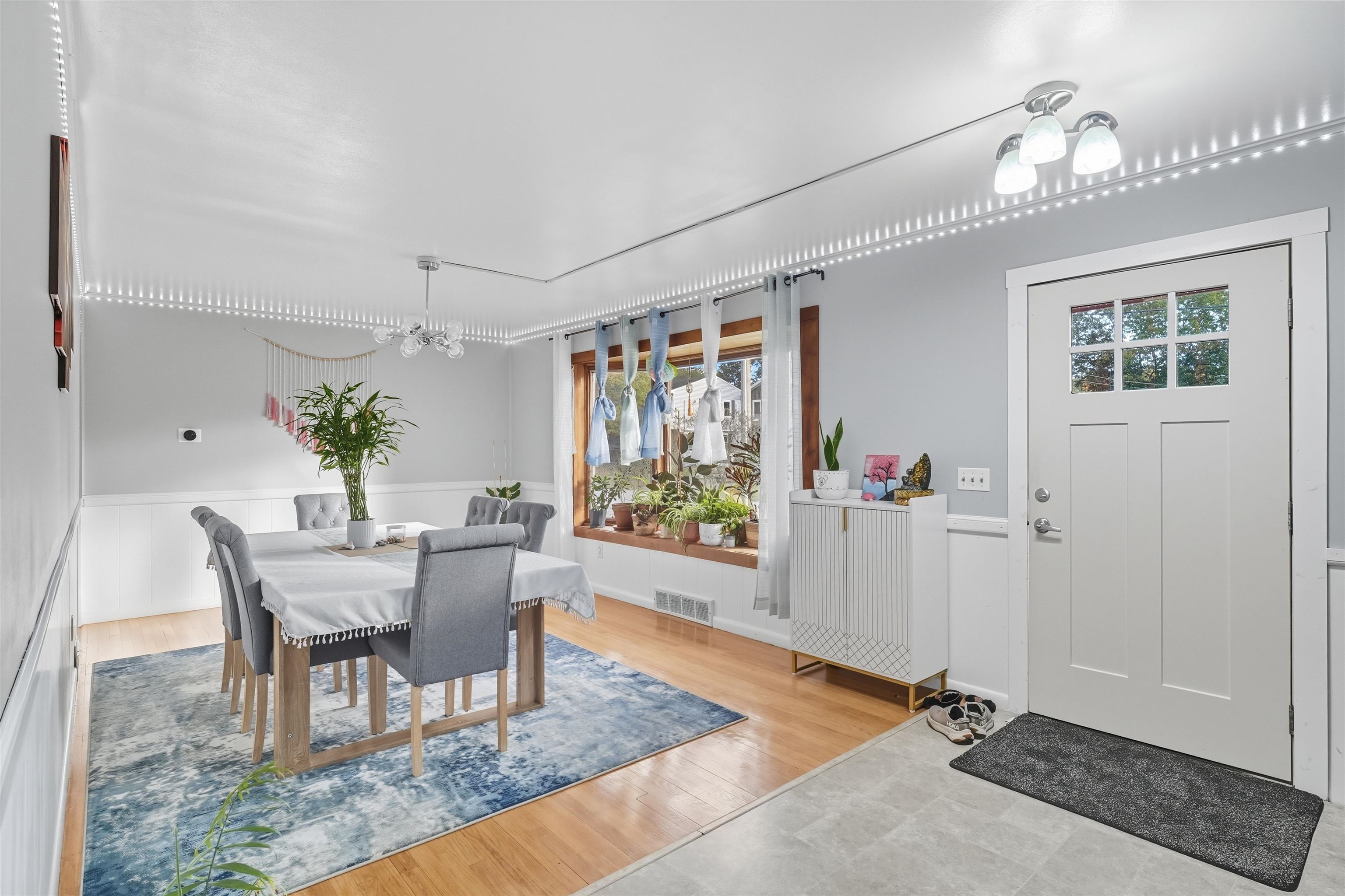 Welcome to this beautifully renovated 3-bedroom, 2-bath home nestled in highly desirable South Burlington neighborhood. Thoughtfully designed for both comfort and style, this residence offers multiple inviting living spaces ideal for today’s lifestyle. The front dining room immediately impresses with its expansive bay window, warm natural light, and charming brick hearth and fireplace, perfect for gathering or an elegant formal space. The updated kitchen sits at the center of the home and features wide-plank hardwood flooring, stainless steel appliances, and convenient access to a well-appointed mudroom. Beyond the kitchen, a stunning secondary family room offers vaulted ceilings, hardwood floors, a cozy gas stove, and a custom built-in shiplap entertainment center. The spacious primary suite includes an updated bath with a soaking tub for ultimate relaxation. Two additional bedrooms and a second full bath are located nearby, making the layout functional and family-friendly. The lower level provides flexible bonus space and laundry, ideal for a playroom, gym, office, or future expansion. Step outside to find a back deck overlooking a spacious patio and sunny backyard with garden potential. Shed for storage. A separate mudroom entry makes Vermont winters easy—keeping snow and mud contained. An attached 1-car garage and ample driveway parking add everyday convenience. Just moments from Chamberlain School, shops, restaurants, and all that South Burlington has to offer!
