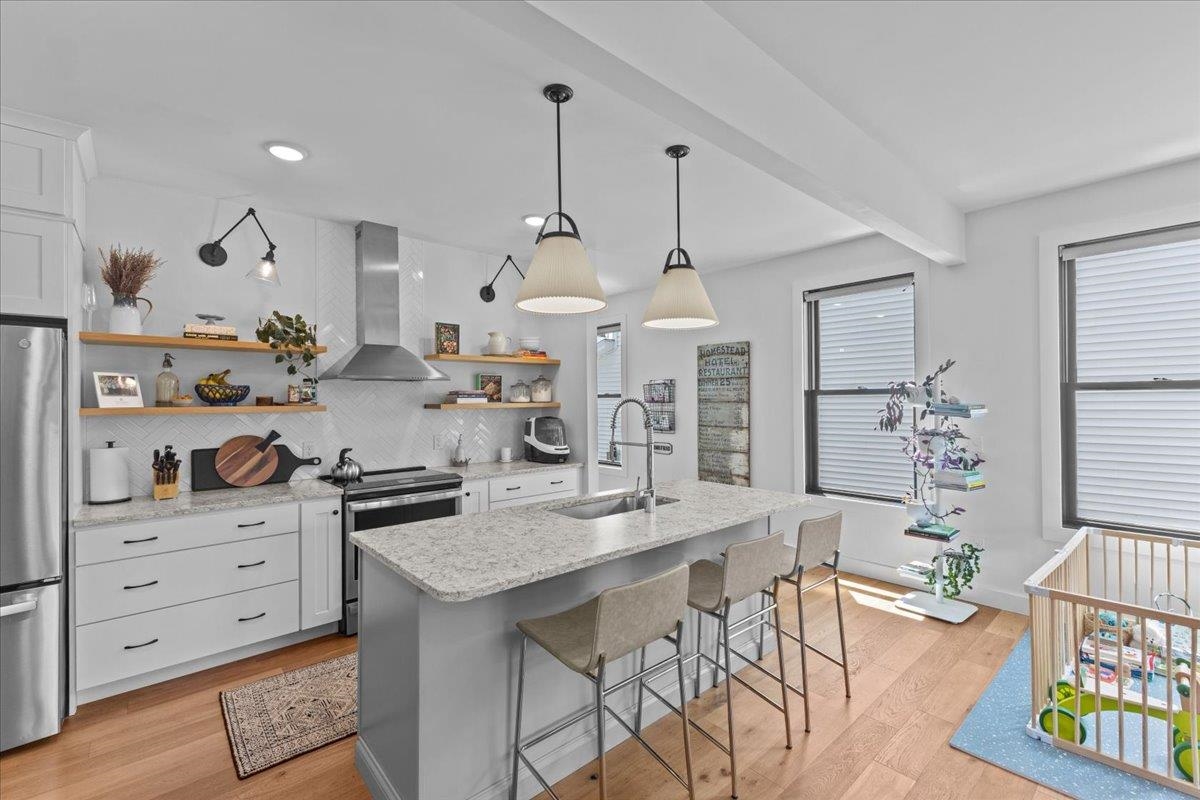 - Blinds, Dining Area, Gas Fireplace, Kitchen Island, Kitchen/Living, Living/Dining, Primary BR w/ BA, Walk-in Closet, Smart Thermostat