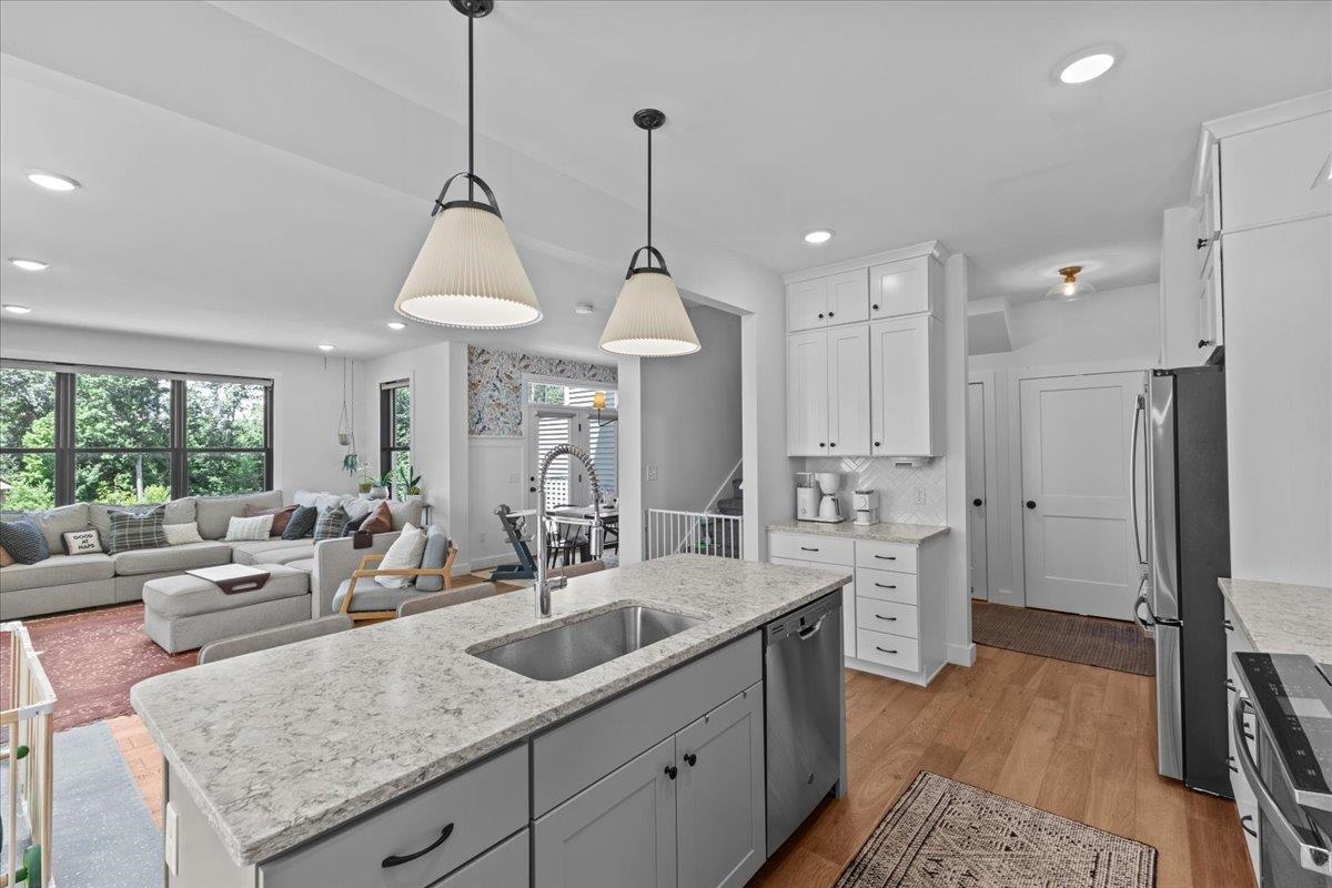 Welcome Home! This is the largest townhome available at Hillside, offering an expansive 2, 579 sq. ft. of beautifully finished living space, thoughtfully designed with elevated finishes & upgrades throughout. From the moment you step inside, you'll notice the attention to detail - hardwood floors, quartz countertops, kitchen cabinetry extended to the ceiling, and a gas fireplace with custom shiplap surround. The dining room features elegant wainscoting, while custom molding & trim flow seamlessly through every room. Designed with both beauty & function in mind, this home includes custom closet systems, a functional mudroom, and a stylish loft area on the second floor. Enjoy the convenience of motorized blinds, an electric car charger, and smart thermostats. Unique pops of designer wallpaper and curated finishes bring an interior designer’s flair to every corner. The light-filled walkout lower level offers even more living space with luxury vinyl plank (LVL) flooring, an additional bedroom, full bathroom, and a spacious bonus family room—perfect for guests, hobbies, or entertaining. Step outside to your private deck or explore the community’s natural beauty with wooded walking trails, gardens, and a community park—all just steps from your front door. Energy-efficient and built by an award-winning construction team, this home offers both style and sustainability. With close proximity to shopping, schools, and major employers, you truly can have it all at Hillside.