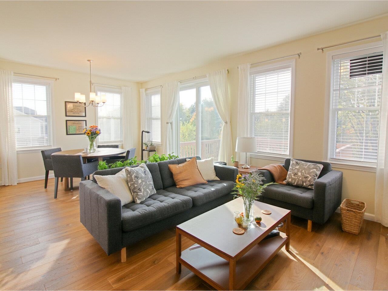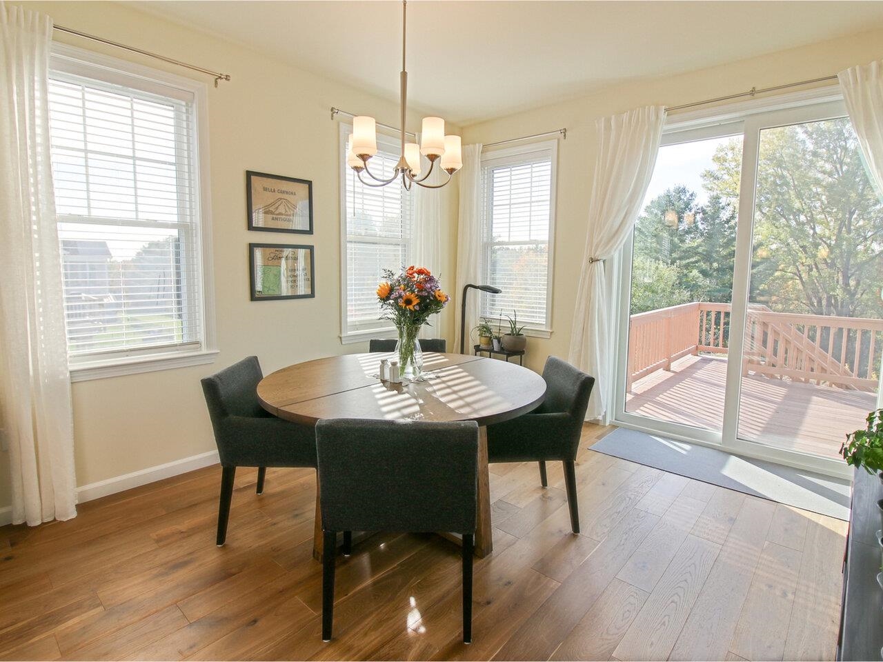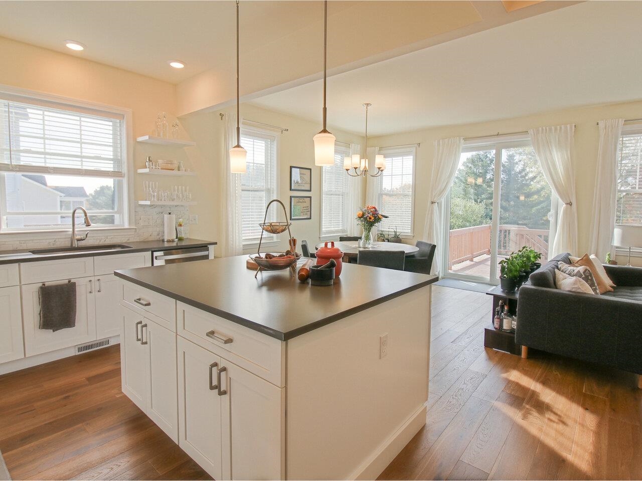 Like-new and built in 2022 by award-winning Sterling Homes, this energy-efficient contemporary ranch in desirable Clearview Estates combines modern comfort with thoughtful design. Offering 3 bedrooms and 3 baths, this home includes a spacious main level and an additional 875 sq. ft. of quality finishes in the walkout lower level - perfect for a gym, home office, guests, or a rec room. The heart of the home is a stunning chef’s kitchen featuring Corian countertops, abundant cabinetry, tile backsplash, stainless-steel appliances, and an oversized center island with extra storage. The open-concept layout is enhanced by lots of windows, 9-foot ceilings, engineered composite wood flooring, and a bright, airy feel throughout. The primary suite features a private bath with double vanity and tiled walk-in shower plus a large walk-in closet, while the main level also includes convenient laundry and a mudroom. Enjoy year-round comfort with central AC and a cozy gas fireplace. Outdoors, the property is a gardener’s dream with raised garden beds, new landscaping, young trees, and an impressive collection of plantings - raspberries, blueberries, currants, chestnuts, and aronia berries among them. A perfect blend of modern living and natural beauty awaits. Minutes to Milton village or Westford.