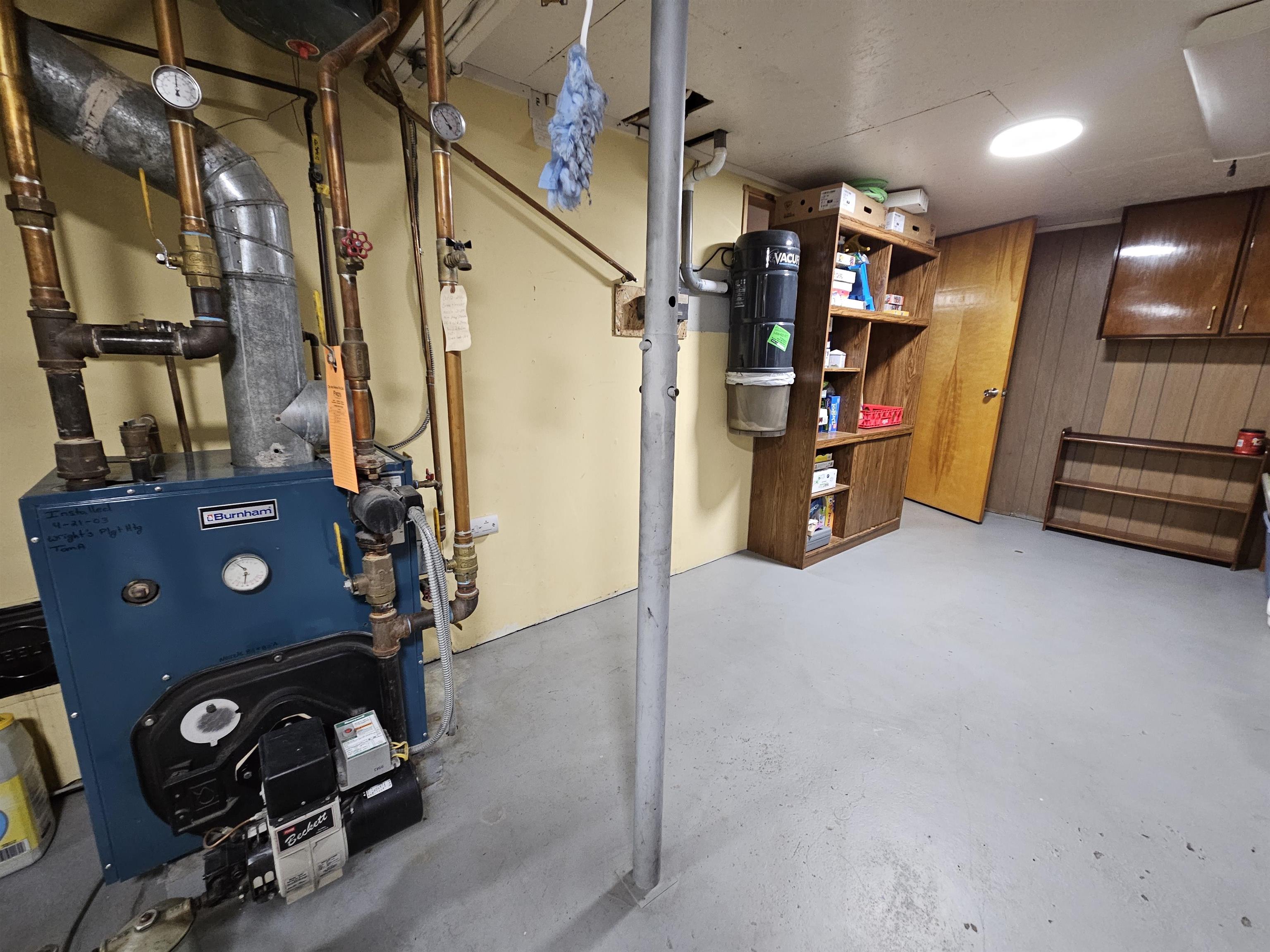 Welcome to this expansive single-story home nestled in a quiet neighborhood in the charming Village of Derby Line. The open-concept layout offers a spacious living room, formal dining area, and a modern kitchen filled with natural light from the bright skylight. The main level includes three bedrooms—featuring a primary suite with its own private bath—along with a mudroom and a full bath. The lower level is partially finished, providing a family room, two guest rooms or home offices, a laundry area, half bath, utility room, and a workshop/storage space. Enjoy the convenience of an attached one-car garage with a bonus partial bay for bikes, yard equipment, or extra storage. Outdoor highlights include a large back deck, covered patio, and detached storage shed. The home is efficiently heated with baseboard hot water via either the oil or pellet boilers and is connected to public water and sewer, with access to high-speed Xfinity internet and cable. The private, partially fenced backyard features mature lilac bushes and blueberry plants, perfect for relaxing or entertaining. Ideally located within walking distance to Derby Elementary School, Baxter Park, the library, and village amenities, this well-maintained property offers comfort, efficiency, and exceptional value in a desirable neighborhood.