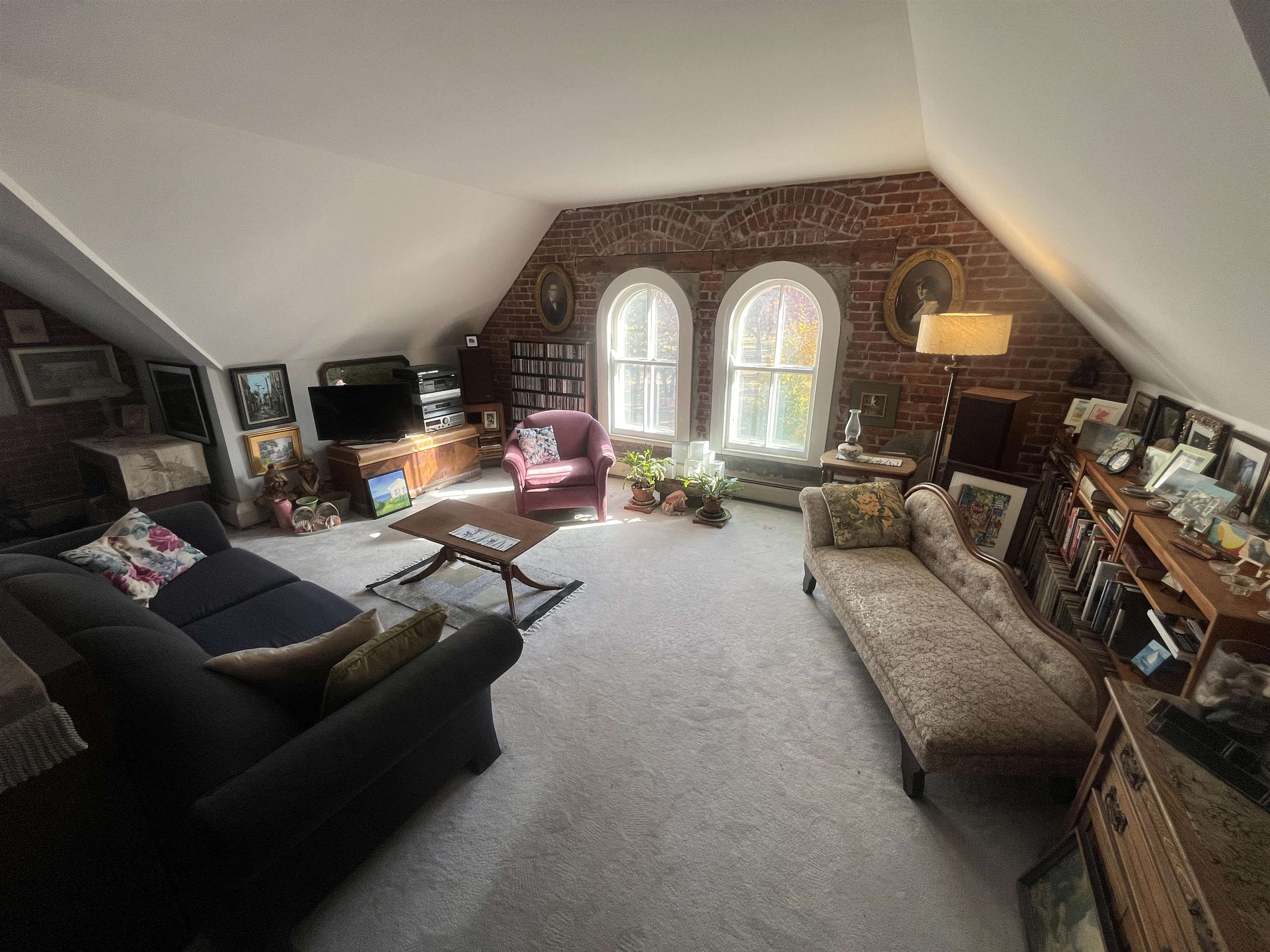 Don't miss out on this one of a kind 3rd floor flat in the sought after Historic Officers Row community. This 1 bed, 1 bath condo has been meticulously maintained by the original owner for the past 33 years. Exposed brick, arched windows and angled ceilings makes this home truly one of a kind. This home is drenced in natural sunlight from all 4 sides of the condo. An open floor plan with almost 500sqft of open living area. Most recent updates include a new high efficiency boiler in 2025 ($11, 000), Bedroom egress window custom rebuilt to meet Fire Safety standards while also maintaining the historical integrity of the building 2021 ($2, 000), Updated stainless kitchen appliances include Refrigerator, 5 burner gas range, microwave and Dishwasher. "Nest" smoke and C0 detectors. This unit also has a 16x26ft approx. 424sqft additional secure basement storage room. There is ample parking in front for guests and owners have parking behind each building. Front and back stairways have direct access to this unit. Large common wraparound covered porch. This building is directly across from the treed section of the 19+/- acre community park. Walking path offers approx. a mile loop around the edge of the park. The park offers tennis, pickleball, basketball, playground and playing fields. Located on the bus line and minutes to Downtown Burlington, UVM, St. Mike and points north and south on I89. CUSFSH, all dimensions approx. Home feels & lives much larger than the sqft town assessors card