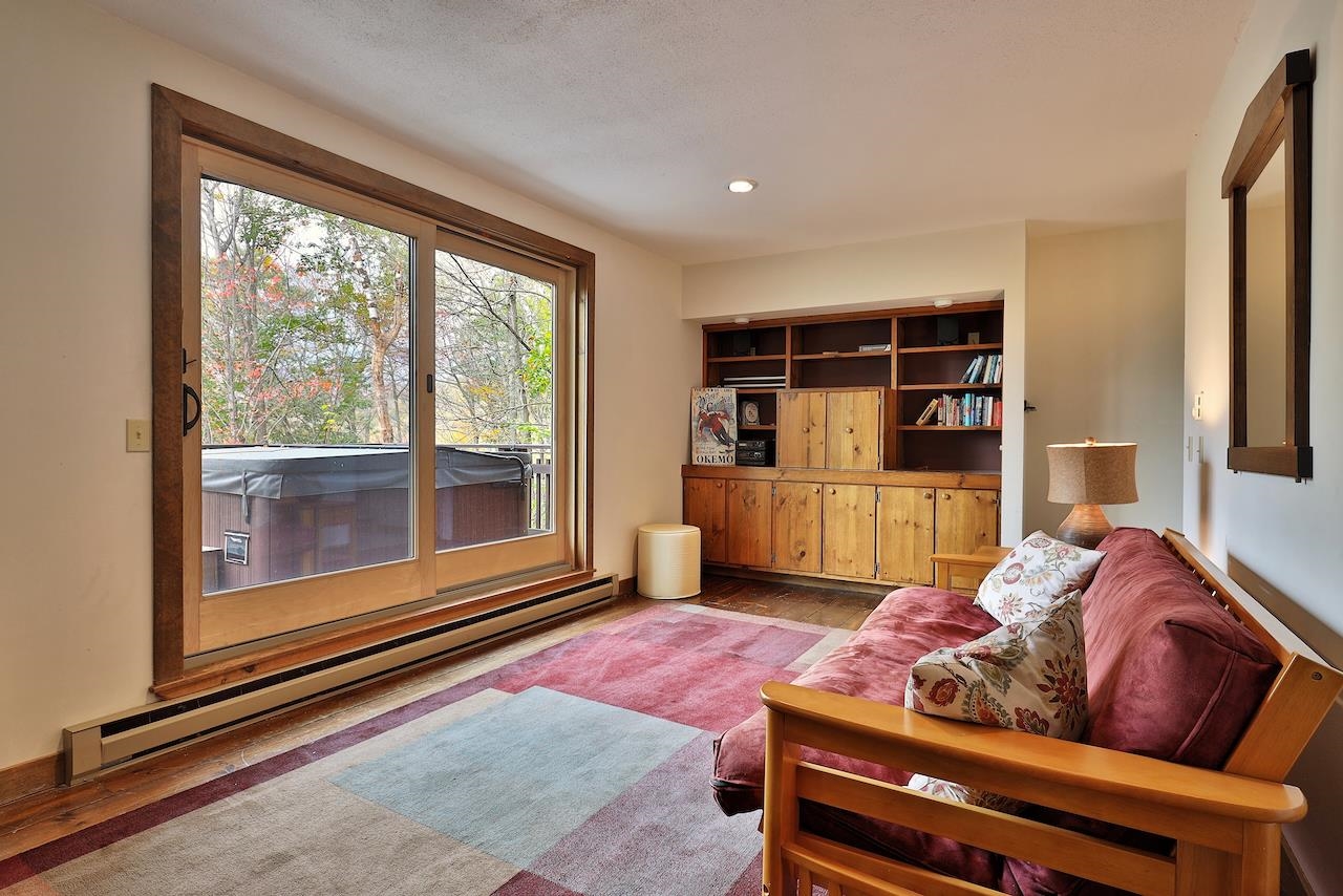 Spacious Hawk Resort Home with Scenic Views Enjoy the perfect blend of comfort, space, and mountain charm in this inviting Hawk home. Designed for family gatherings and entertaining, the generous open-concept living area features a beautiful fieldstone fireplace and updated greenhouse windows that bring in natural light and picturesque views. The primary suite offers a cozy fireplace, private bath with a whirlpool tub, and sliding glass doors leading to a private balcony. The second bedroom and bunk room share a full bath. The lower level provides even more living space, with a spacious family room that opens onto a deck with a hot tub, a full bath with a sauna, and an additional bedroom. Pine floors flow throughout the home, adding warmth and character. Located between Okemo and Killington and close to area lakes.