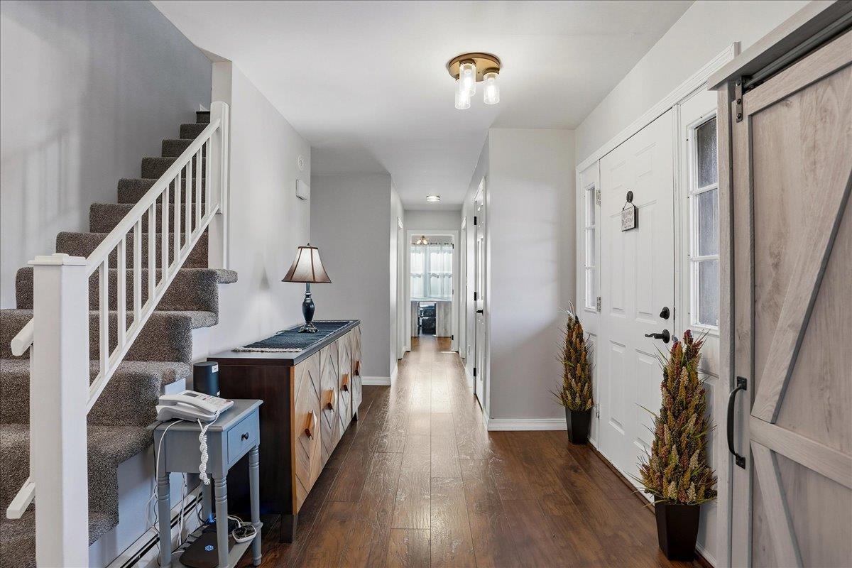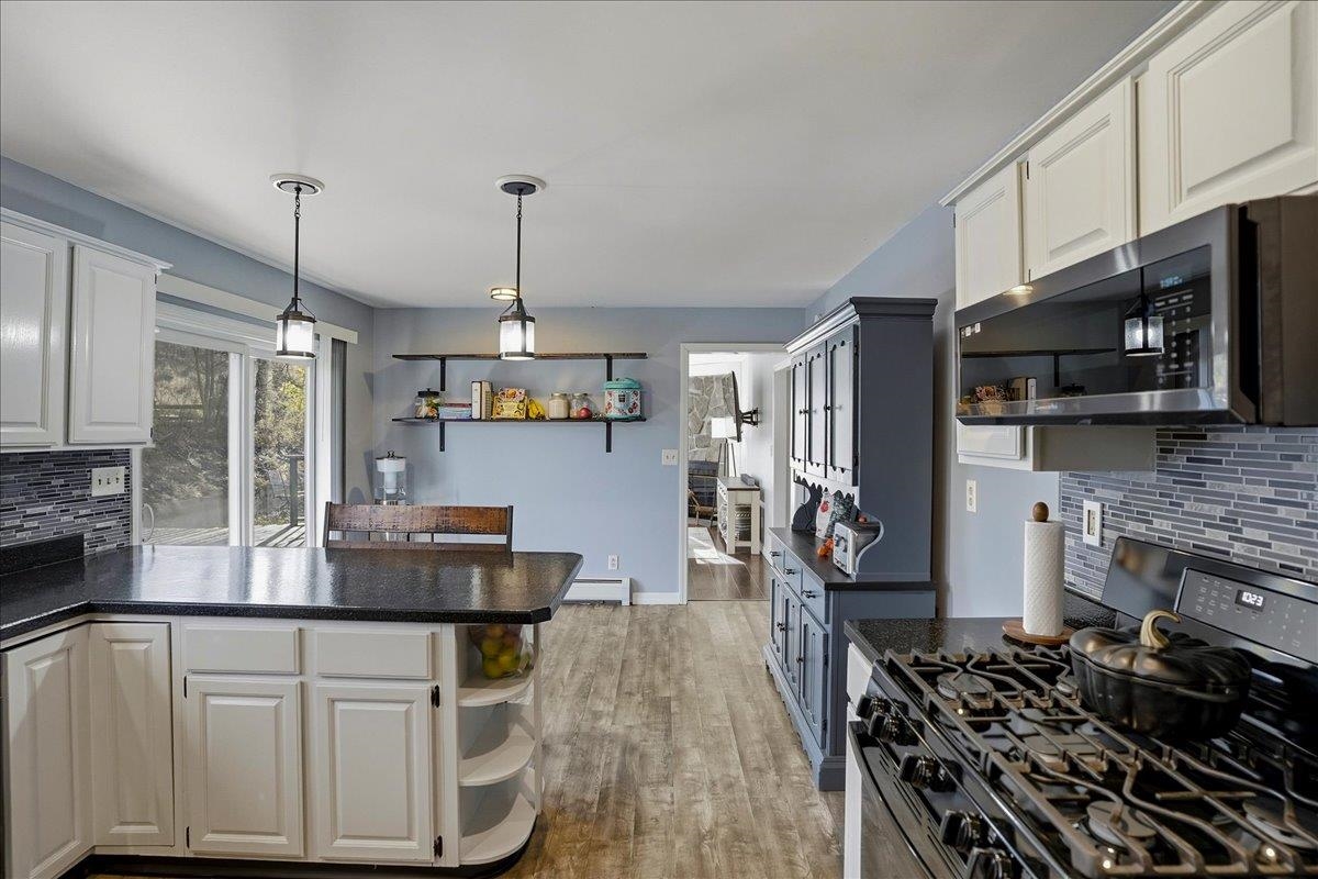 Spacious colonial in the quaint village of Waterville, perfectly positioned across from popular swimming holes along the North Branch of the Lamoille River and just 15 minutes to Smuggler Notch Resort and endless area outdoor recreation! With nearly 3, 000 finished sqft, this 5-bedroom, 4-bath wonderfully updated home offers room for everyone. The great room boasts vaulted ceilings and skylights allowing natural light to fill the space & a cozy hearthstone wood stove adds warmth while a family room on the opposite end of the home boasts a wood burning fireplace. The kitchen abuts the formal dining room and features a peninsula bar ideal for morning prep with direct access to the spacious back deck and partially fenced yard perfect for entertaining or relaxing. The upper level features a primary suite with a walk-in closet and double en suite baths, while a second primary suite on the opposite end of the home provides a shared bath ideal for guests or multi-generational living. The lower level offers additional finished space great for a home office or exercise room plus a workshop area for hobbies or storage. Recent updates include updated flooring and paint throughout, and a brand-new on-demand boiler, ensuring peace of mind for years to come. Enjoy grilling with friends on the back deck or taking a dip in the river in this peaceful setting with reasonable commute times to amenities and surrounding areas. Come see all this wonderful property has to offer today!