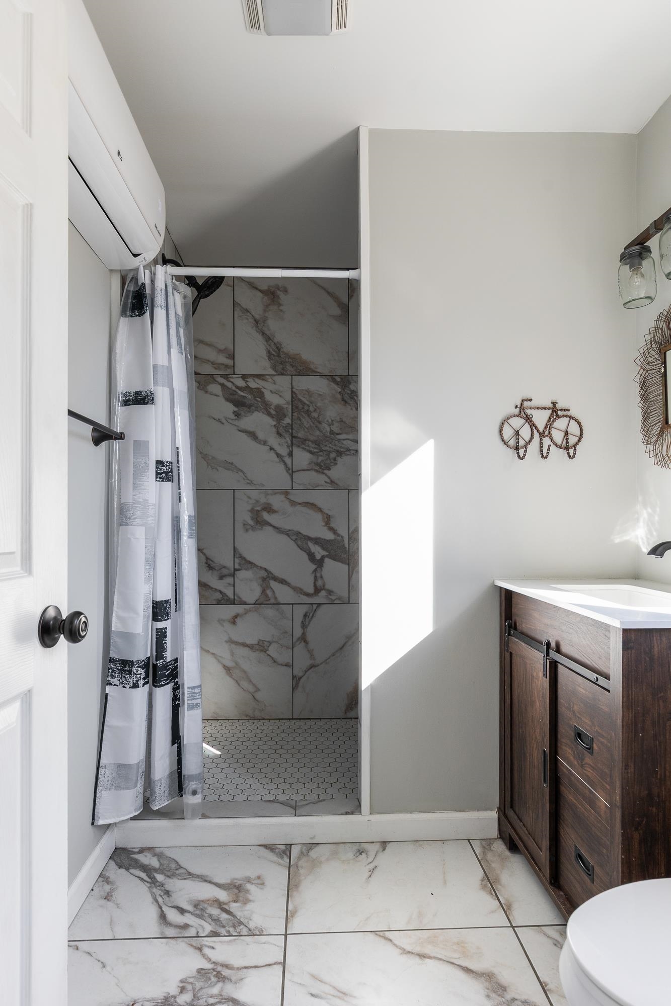 Tucked on nearly 2 acres, at the end of a quiet road, this 2023 "tiny" home offers modern comfort and a true sense of privacy. The open concept main level connects the living room and kitchen, where vaulted ceilings and large windows fill the space with natural sunlight, creating a seamless flow thoughout the house. The kitchen features an island with a farmhouse sink, contemporary cabinetry, wood countertops, and stainless steel appliances. A convenient half bath completes the main level. Upstairs, the primary suite spans the width of the home, offering generous closet storage and an attached 3/4 bath. The suite also includes a private balcony, an unexpected bonus and quiet outdoor retreat. With 900 square feet of thoughtfully designed space, the home offers efficient, low-maintenance living without sacrificing style or comfort. Heat Pumps offer heat in the winter and a/c in the summer. Enjoy a sense of retreat while still being minutes from Johnson Village amenities, including dining, shopping, and Vermont State University. You will appreciate nearby skiing, hiking, biking, and river access. Approx. 30 min from Stowe, Jay Peak, and Smugglers’ Notch ski resorts. Current septic and well permitted for a 3 bedroom house if expansion is desired. Sold fully furnished with an estimated gross income of $60, 200 as an short term rental and an 82% occupancy rate. Estimated CAP rate of 10.6%.