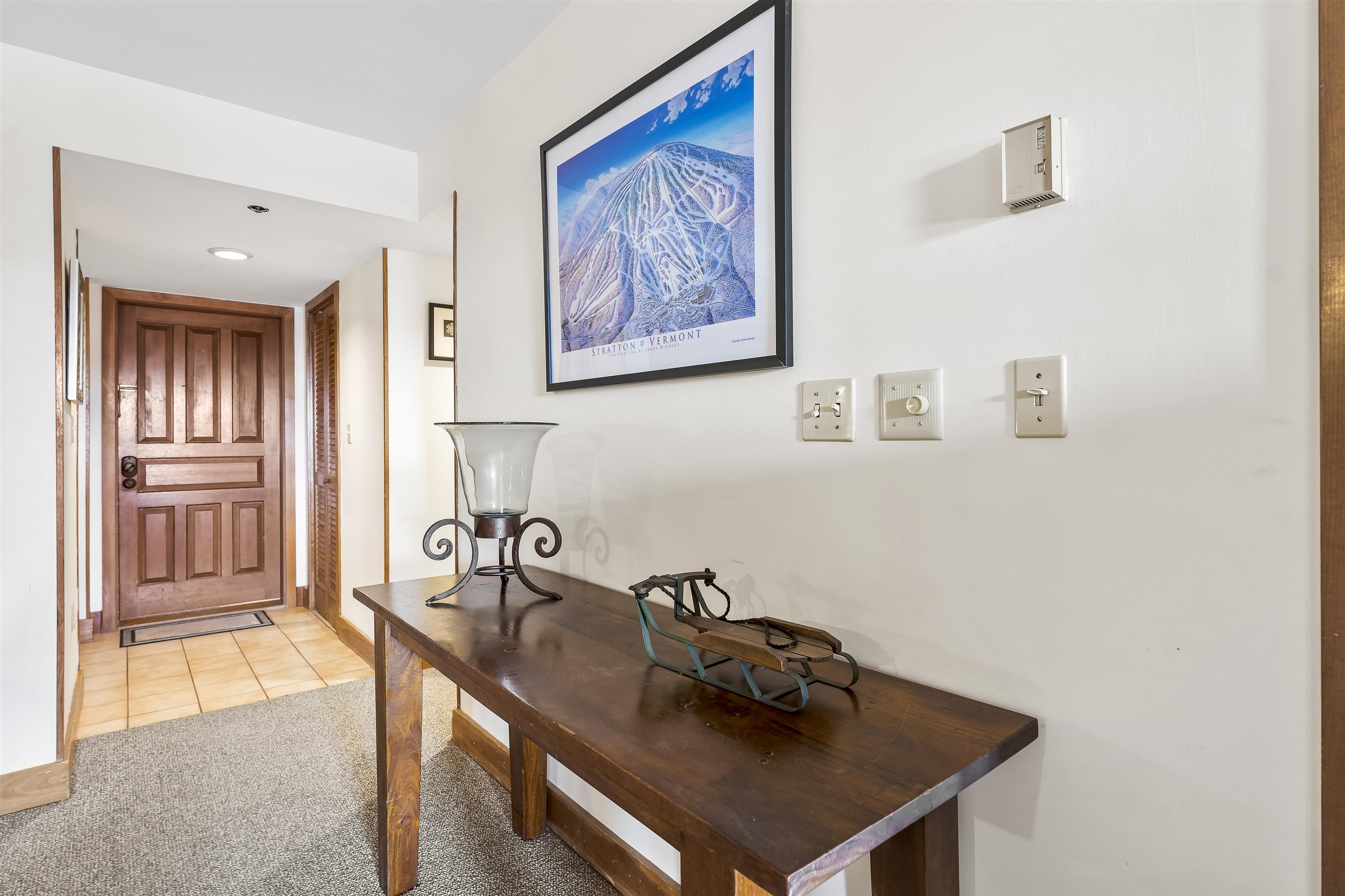 Nestled right on the slopes of Stratton Mountain Resort, this two bedroom two ensuite bathroom condominium offers true ski-in/ski-out convenience for your winter getaway. You'll find yourself just steps from the Villager chairlift, beginner ski area as well as a stone's throw to the shops and restaurants in the Stratton Village. An open-concept living/dinning/kitchen area that features a stone wood burning fireplace perfect for gathering after a day on the slopes. Enjoy the eastern exposure and distant mountain views from the balcony. Home is being offered furnished and has good rental history. Come home to Stratton Mountain Vermont!