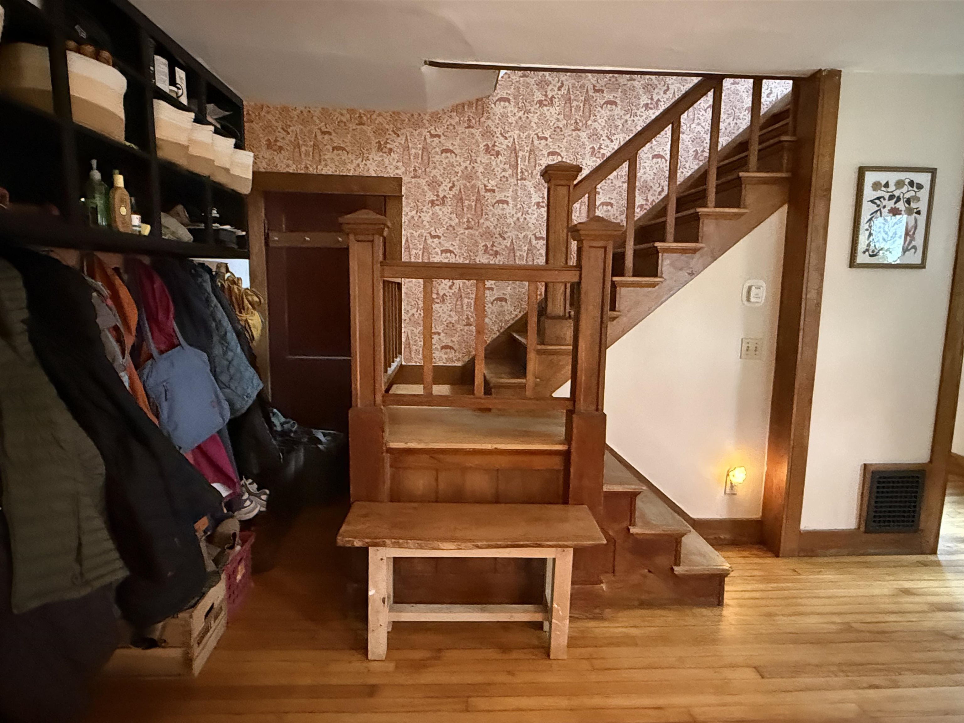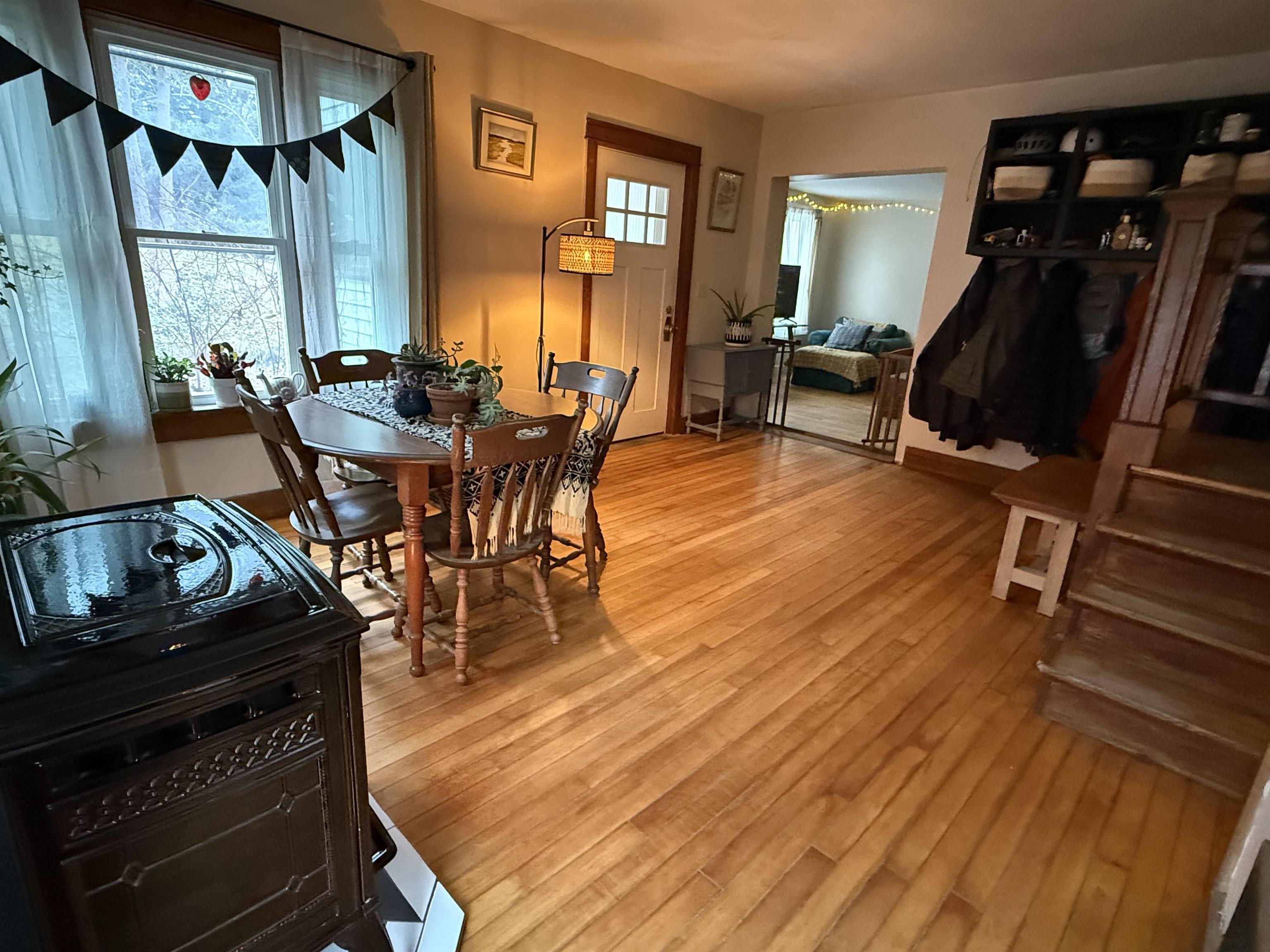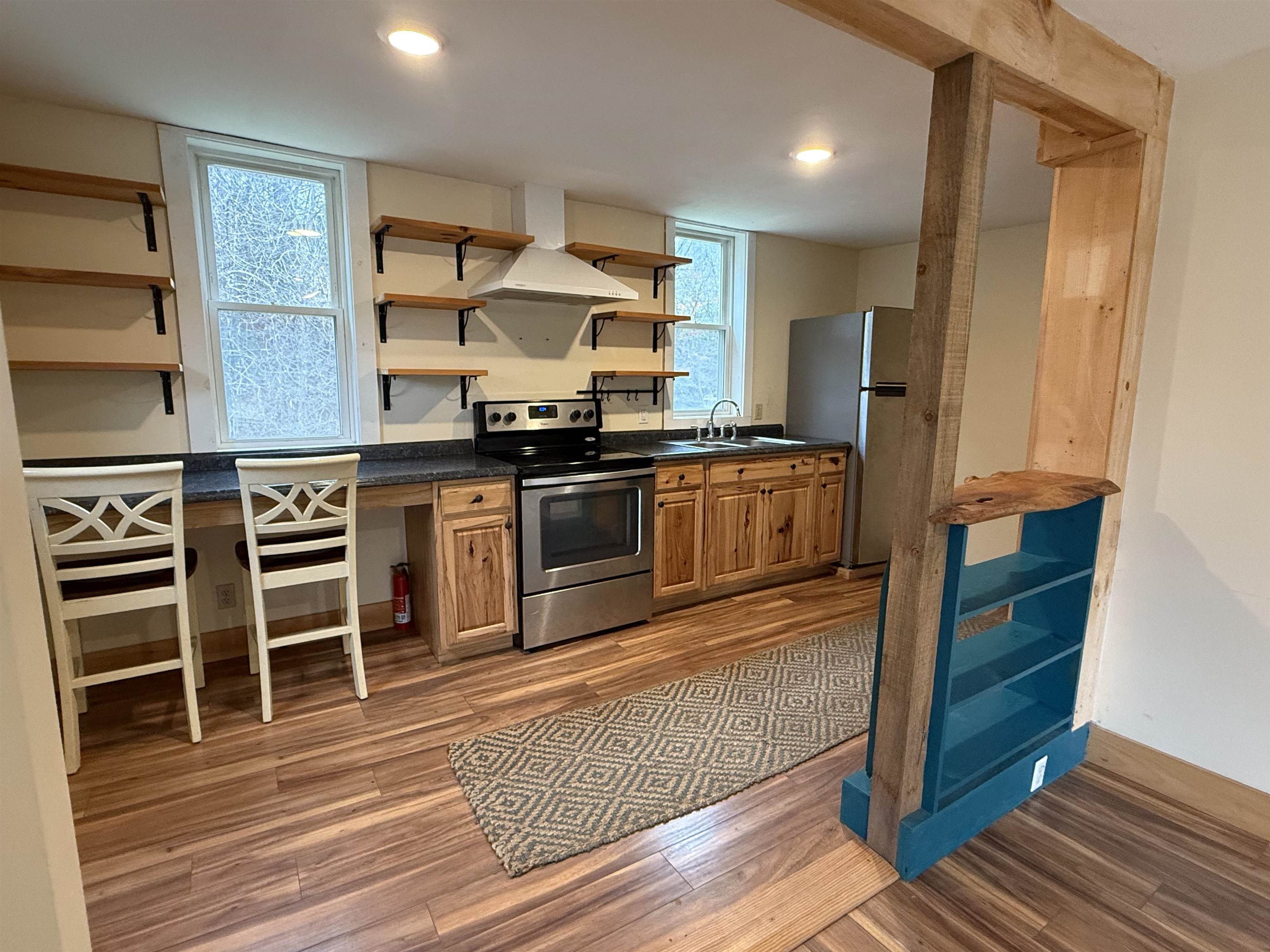 The perfect set up to live in a charming country home and enhance your finances with rental income OR open this farmhouse up for a larger single family home. Updated and well cared for! Hardwood and softwood floors, custom kitchen, lots of character, deck overlooking the brook and waterfall. A separate barn, garage and a chicken coop to round out the country life. All located near NVU and Smugglers Notch. Lots of character! *not in a floodplain but the benefit of a brook with waterfall and your own swimming hole*