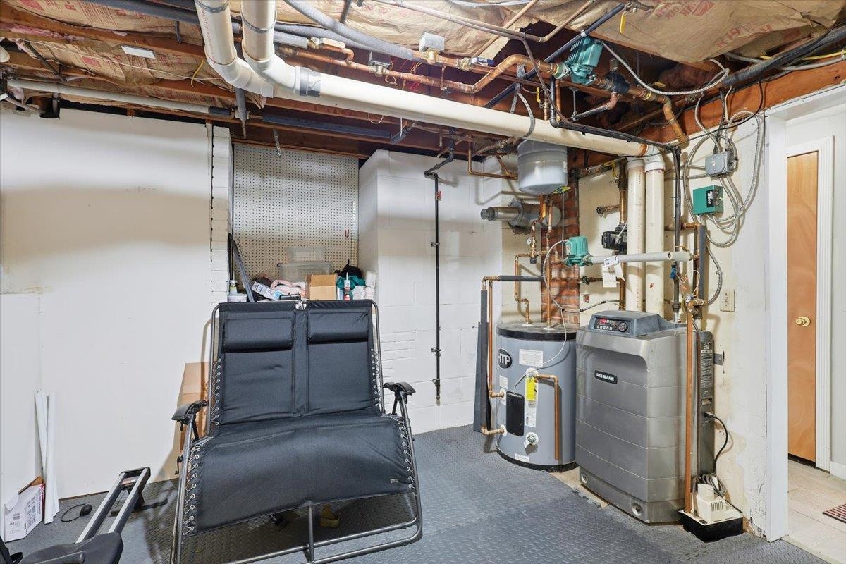 - Dishwasher, Disposal, Dryer, Microwave, Double Oven, Gas Range, Refrigerator, Washer, Natural Gas Water Heater, Water Heater off Boiler, Owned Water Heater, Tank Water Heater