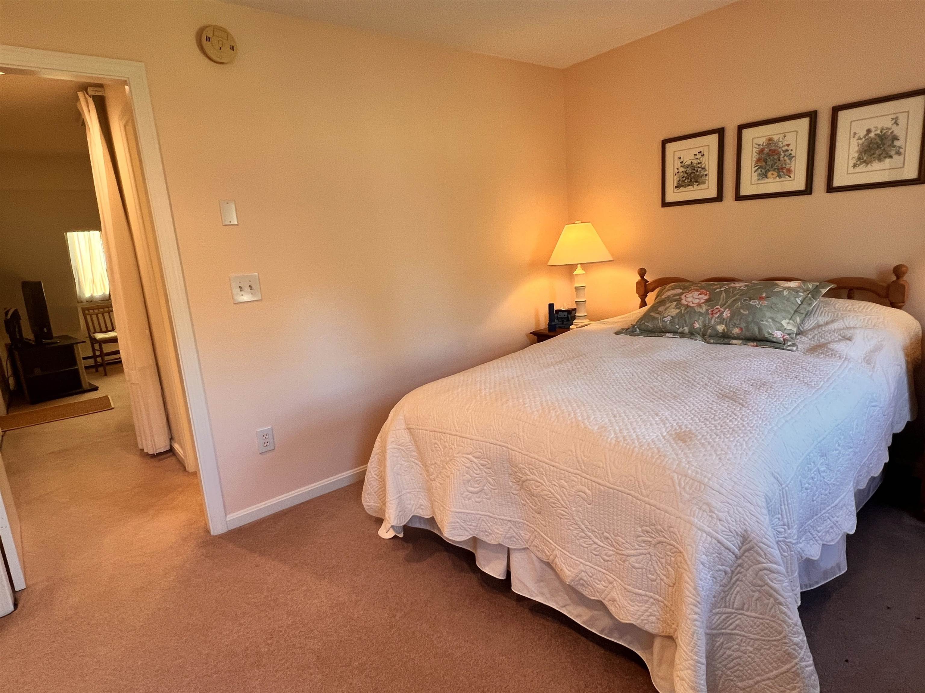 Welcome to your Woodstock affordable retreat! This inviting, end-unit, two-level townhouse in the sought-after Heritage Condominium community is nestled on a dead-end road just minutes west of the historic village of Woodstock. This bright 856 sq/ft two-level home offers an open-concept first floor with a carpeted living/dining area warmed by Empire gas heat (plus electric backup). From this space, step through a newer sliding door to a private deck overlooking landscaped, level grounds on 7 acres of shared land. The kitchen is light-filled and efficient, ideal for everyday living. Hardwood hallway and stairs with dual handrails lead to the second-floor loft, a versatile space with a newer skylight - perfect for an office, studio, or reading nook. The spacious bedroom features newer double-hung windows for an easy-insert air conditioner, Empire gas heat, carpet, and an extra-large closet. The full shower/bath is fully appointed and has electric heating. Additional highlights include; attic storage and a large red barn on the property offering shared storage for bikes, plus an individual security stall for each condominium. Conveniently located near golf, skiing, schools, and shopping, this home blends efficiency and comfort in a serene Woodstock setting—ideal as a year-round residence or weekend retreat.