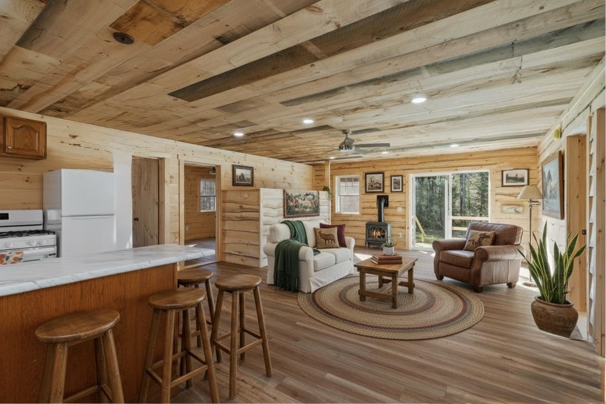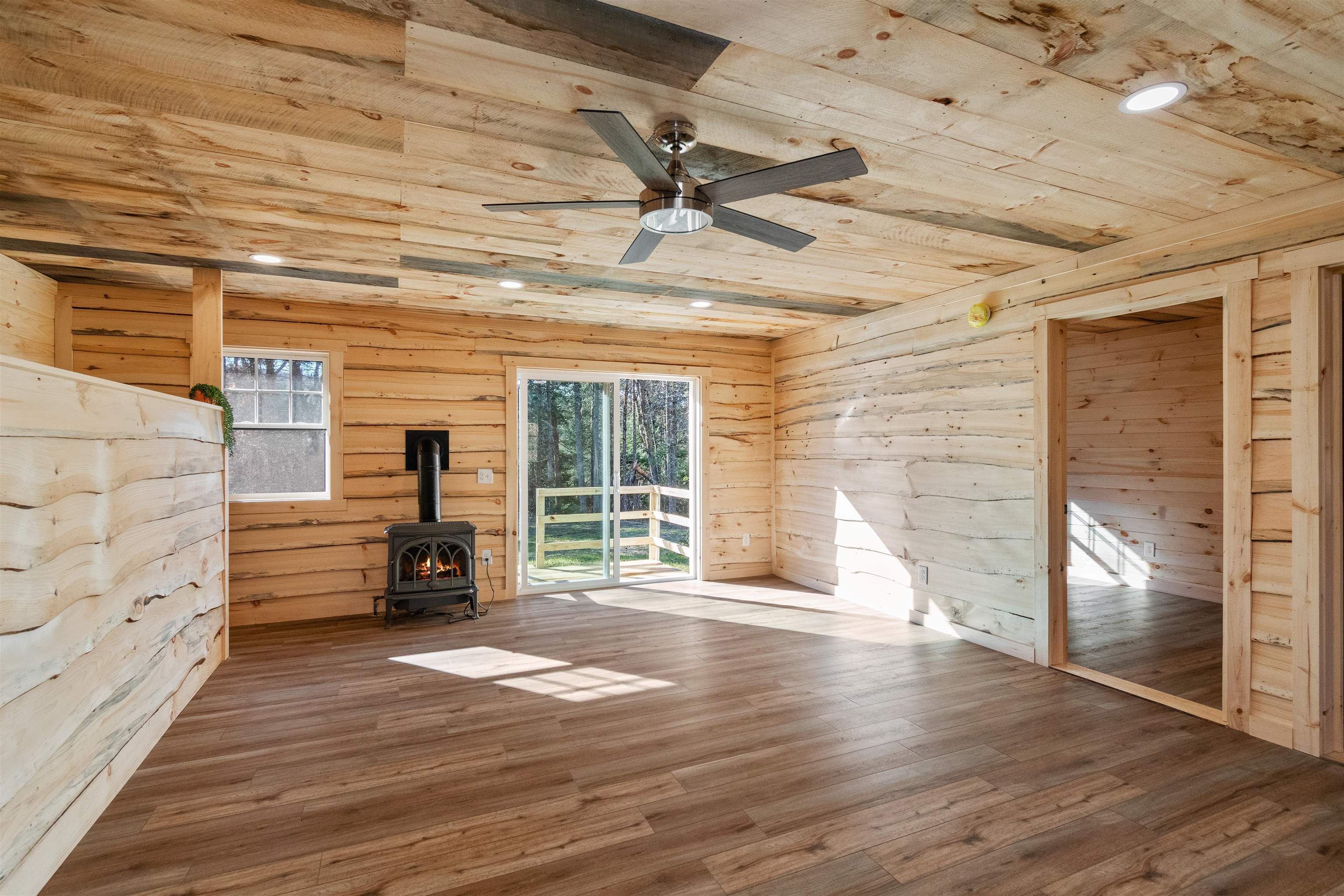 This custom-built off-grid home combines craftsmanship, privacy, and self-sufficiency in the wilderness of Vermont. Backed up to and surrounded by more than 400 acres of state land, it offers unmatched peace and seclusion while remaining easily accessible, only 0.7 miles off the paved road. The three-bedroom, one-bath home features warm wood finishes throughout, a practical open floor plan, and large windows that draw in the surrounding forest views. A brand-new, top-tier solar power system provides full off-grid living with a 25-year panel warranty and a 15-year battery warranty. Propane heat and hot water, and the home’s efficient insulation helps maintain comfortable temperatures year-round. The full walkout basement includes an egress window, all systems, and space that could be finished or used as a workshop or studio. Outside, wildlife is abundant, moose, deer, and fox often pass through, and you can launch a kayak from your backyard to explore miles of conserved wetlands along the headwaters of the North Branch in the Belvidere Bog. Located within easy reach of Jay Peak, Stowe, and Smugglers’ Notch, this property offers a rare mix of adventure, independence, and comfort in one of Vermont’s most serene settings.