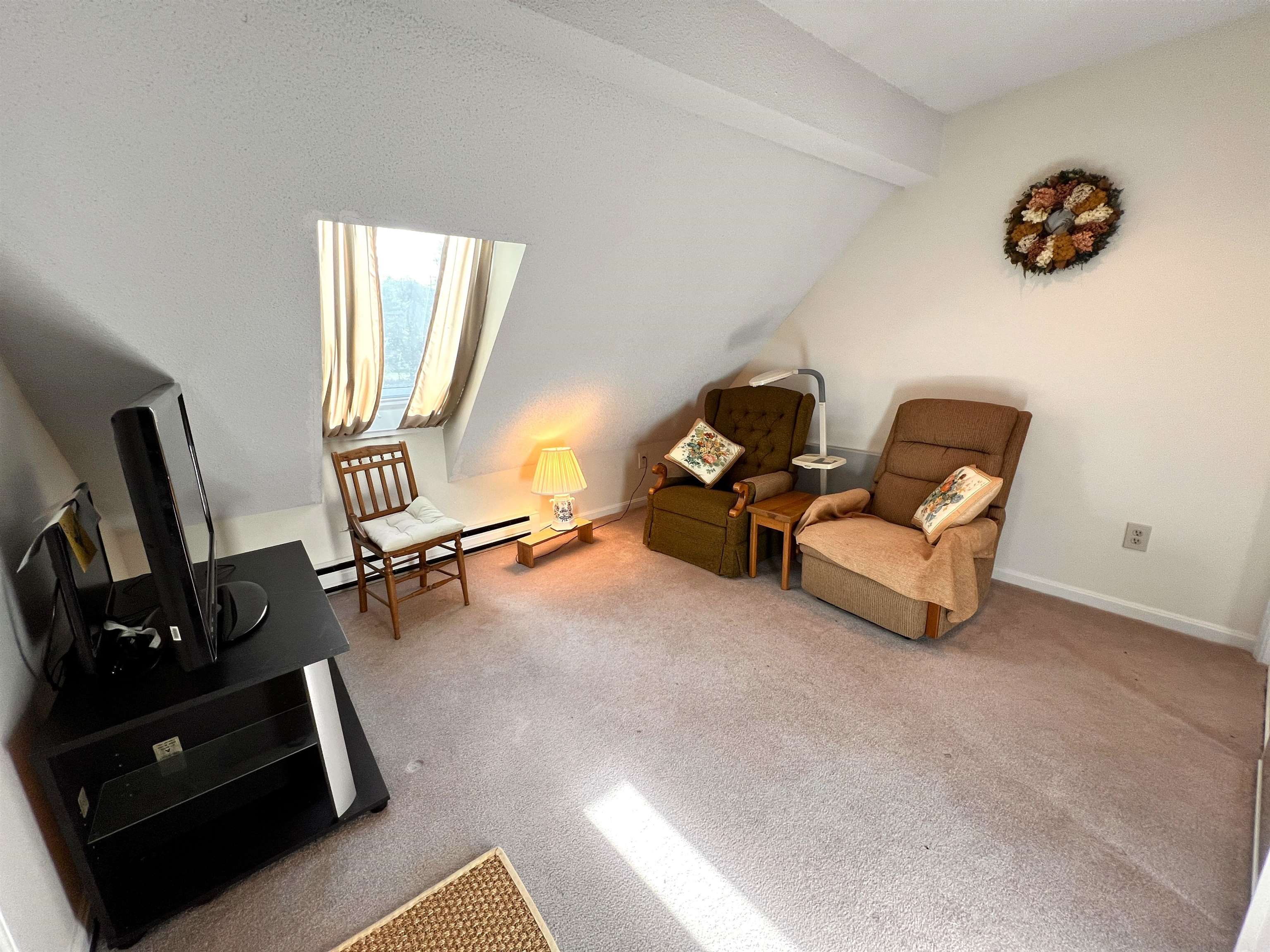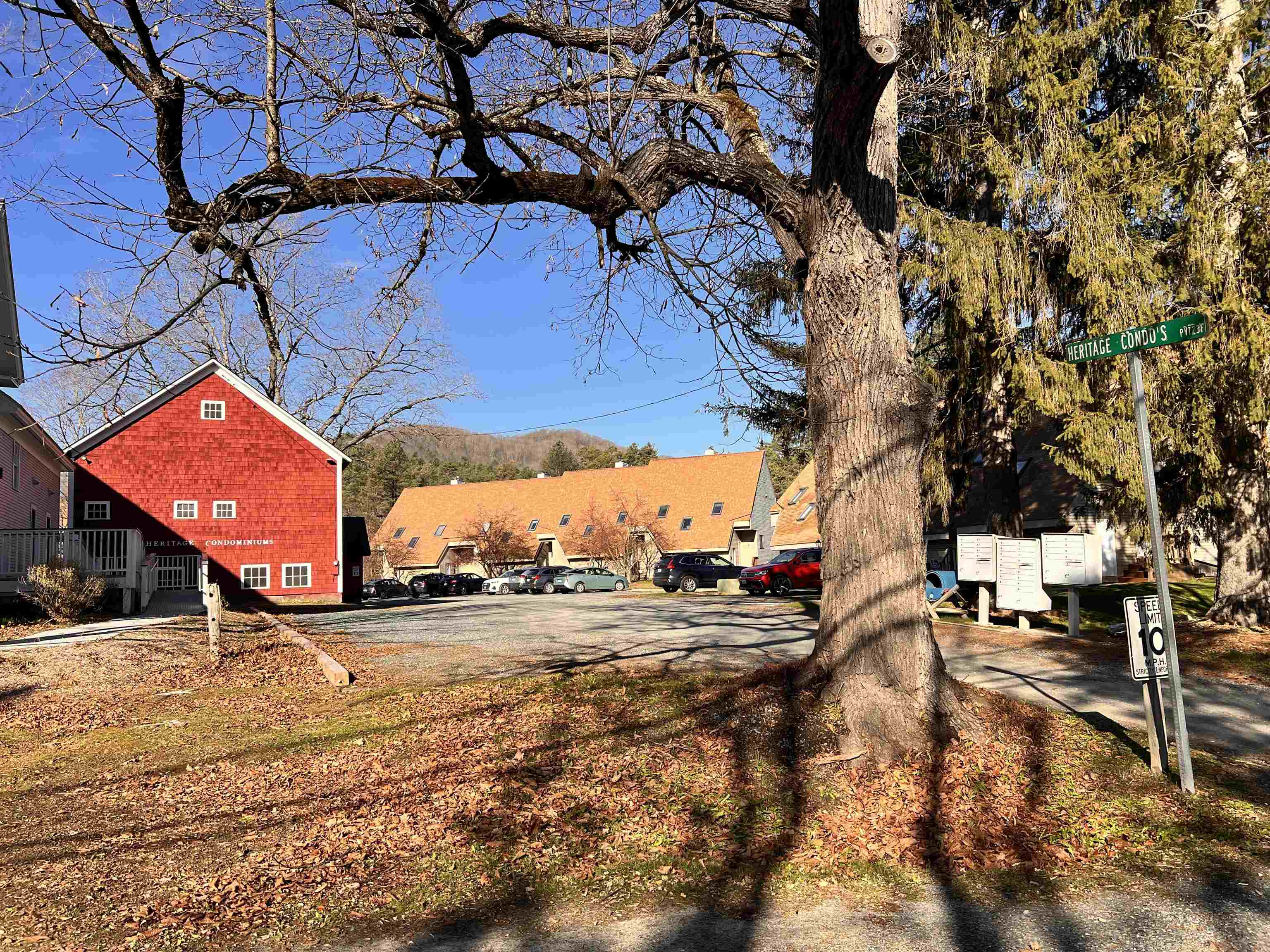 Welcome to your Woodstock affordable retreat! This inviting, end-unit, two-level townhouse in the sought-after Heritage Condominium community is nestled on a dead-end road just minutes west of the historic village of Woodstock. This bright 856 sq/ft two-level home offers an open-concept first floor with a carpeted living/dining area warmed by Empire gas heat (plus electric backup). From this space, step through a newer sliding door to a private deck overlooking landscaped, level grounds on 7 acres of shared land. The kitchen is light-filled and efficient, ideal for everyday living. Hardwood hallway and stairs with dual handrails lead to the second-floor loft, a versatile space with a newer skylight - perfect for an office, studio, or reading nook. The spacious bedroom features newer double-hung windows for an easy-insert air conditioner, Empire gas heat, carpet, and an extra-large closet. The full shower/bath is fully appointed and has electric heating. Additional highlights include; attic storage and a large red barn on the property offering shared storage for bikes, plus an individual security stall for each condominium. Conveniently located near golf, skiing, schools, and shopping, this home blends efficiency and comfort in a serene Woodstock setting—ideal as a year-round residence or weekend retreat.