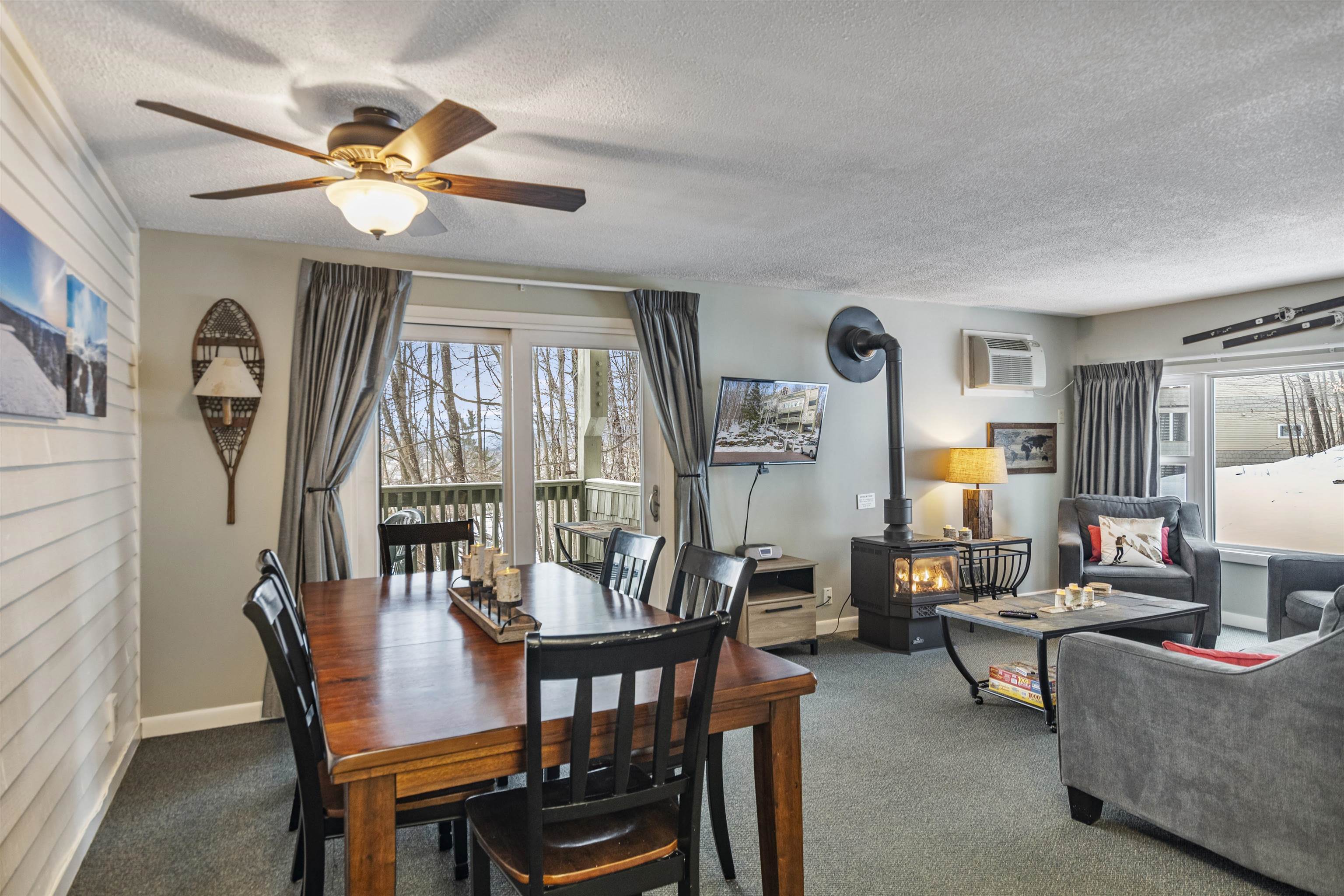 We are excited to present a unit that is truly ready for immediate occupancy. Complete with included furnishings and perfect for those ready to hit the slopes this season. This world-class complex offers an unparalleled location near all of Stowe's essential amenities. Situated at the bottom of the complex's hill, you are just steps away from local favorites such as The Alchemist Brewery, Idletyme Brewing Company and Restaurant, Picasa, and access to Stowe's famous bike path. The unit itself has been freshly painted and decorated to embody the quintessential Vermont mountain theme. It features an open living area that flows out to a large covered deck with beautiful mountain views. The sleeping arrangements include a primary suite, a second bedroom with twin beds, and a pull-out sofa, offering ample space for guests. For recreation, the Clubhouse is conveniently located directly across from this building and provides a large indoor pool, a hot tub, a sauna, exercise equipment, and lounge areas, along with changing locker rooms. Additional conveniences include the Stowe bus line, which drives by the complex for relaxing mountain access and the allowance of both short-term rentals and pets. Seller is a licensed Realtor in the state of Vermont.