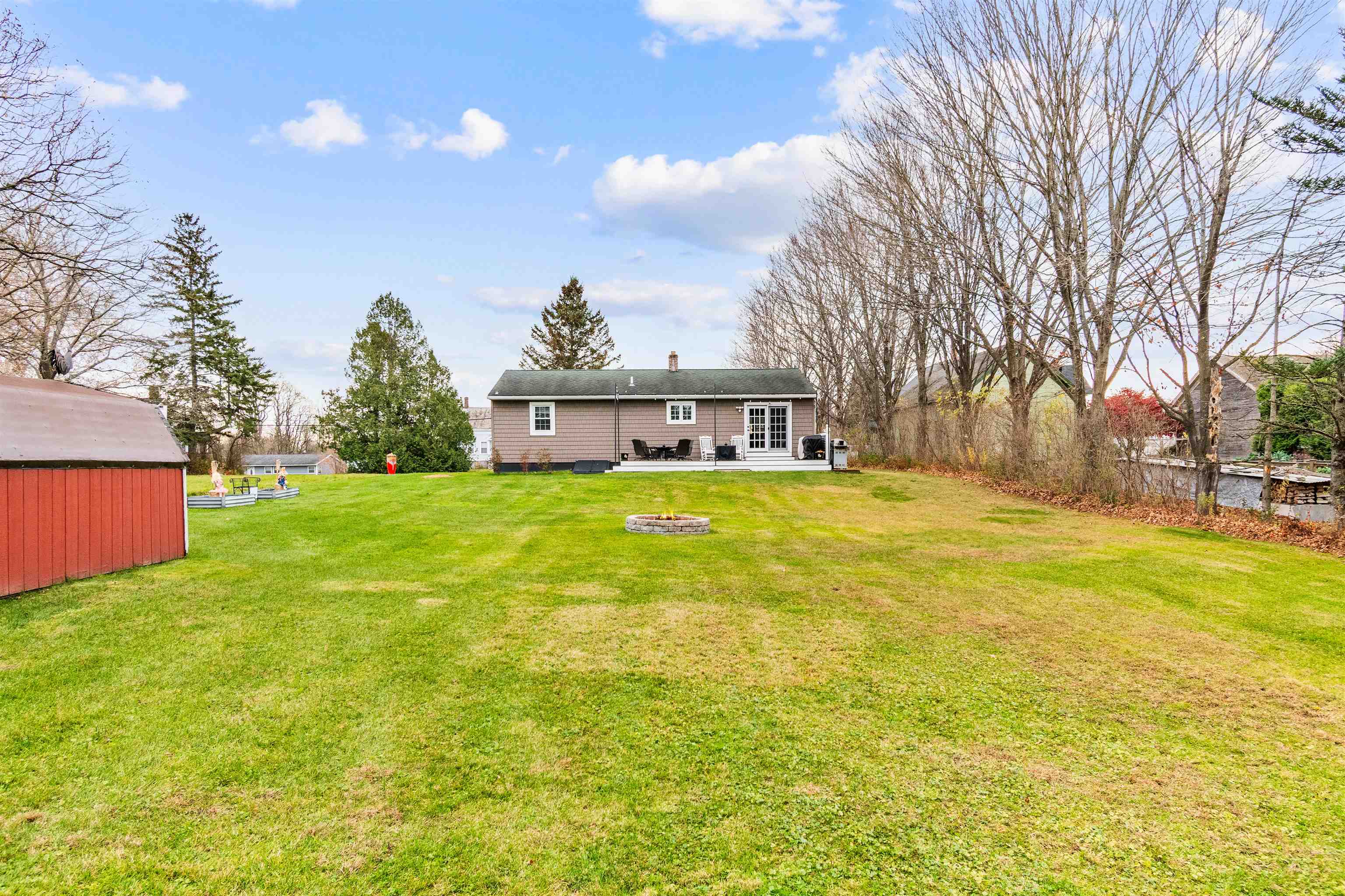 Nestled in the heart of Shelburne Village, this charming 3-bedroom home offers the perfect blend of comfort, convenience, and natural beauty. Situated on a private, flat .52-acre lot abutting the Laplatte River Nature Park, this home provides a serene setting while keeping you just minutes from local shops, dining, and beloved attractions such as the Shelburne Museum, Shelburne Farms, and the Shelburne Country Store. Come inside to discover easy one-level living with durable laminate flooring throughout, creating a warm and inviting atmosphere. The sun-filled living room features a large south-facing picture window that bathes the space in natural light, with space for a large sectional. The dining area comfortably accommodates a table for eight, making it ideal for gatherings. The spacious kitchen offers plenty of room for meal prep and even space to add an island if desired. A french door from the dining room opens to the back deck, where you can enjoy morning coffee, alfresco dining, or simply unwind while taking in the peaceful surroundings. Outside, you’ll find raised garden beds, a garden shed, and a cozy fire pit — all set on a beautiful, private lot that invites outdoor living. With its welcoming front porch, single-level design, and unbeatable location near everything Shelburne has to offer, this home combines small-town charm with everyday convenience!