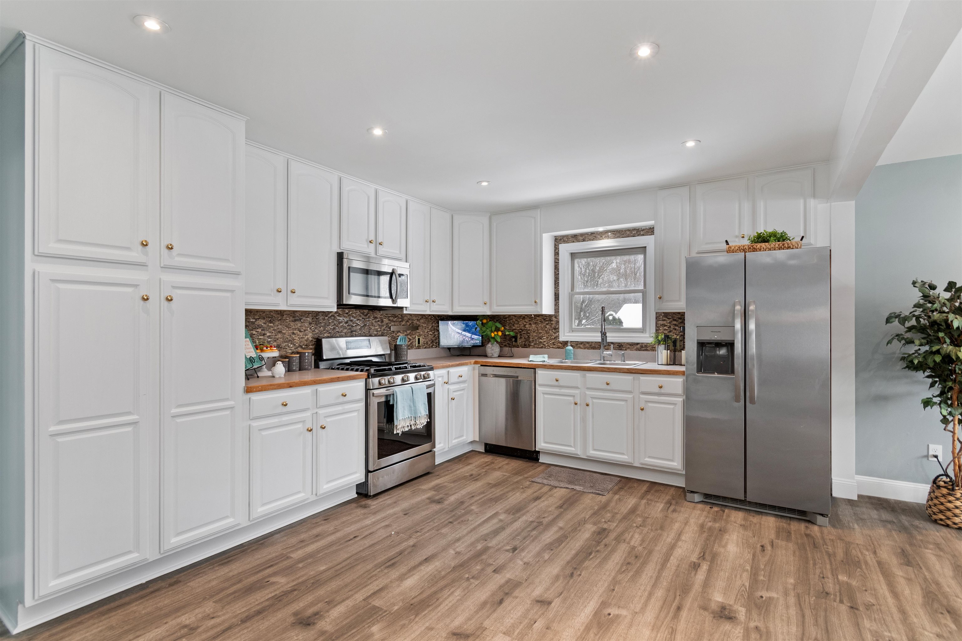Introducing this beautifully updated four-bedroom raised ranch located in the highly sought-after Jericho area. This home is conveniently situated near schools, shopping centers, and scenic hiking parks, perfect for enjoying nature. The open-concept living space seamlessly integrates the kitchen, dining, and living room, fostering a connected atmosphere. The primary bedroom features an en-suite bathroom and a laundry area, providing direct access to a partially fenced outdoor space that boasts a fully fenced stunning in-ground pool with new liner, pump and filter ideal for entertaining. The yard is spacious and level, surrounded by mature hedges that ensure complete privacy. This property is equipped with owned solar panels that generate sufficient energy year-round to meet most of the home's electrical needs. Additionally, the sellers have installed a Tesla battery wall and two electric car chargers, ensuring you stay powered throughout the year. Ample storage is available in the shed, adding to the home's appeal. The current seller is using the property as a four bedroom. The Lister‘s card has it as a three bedroom.