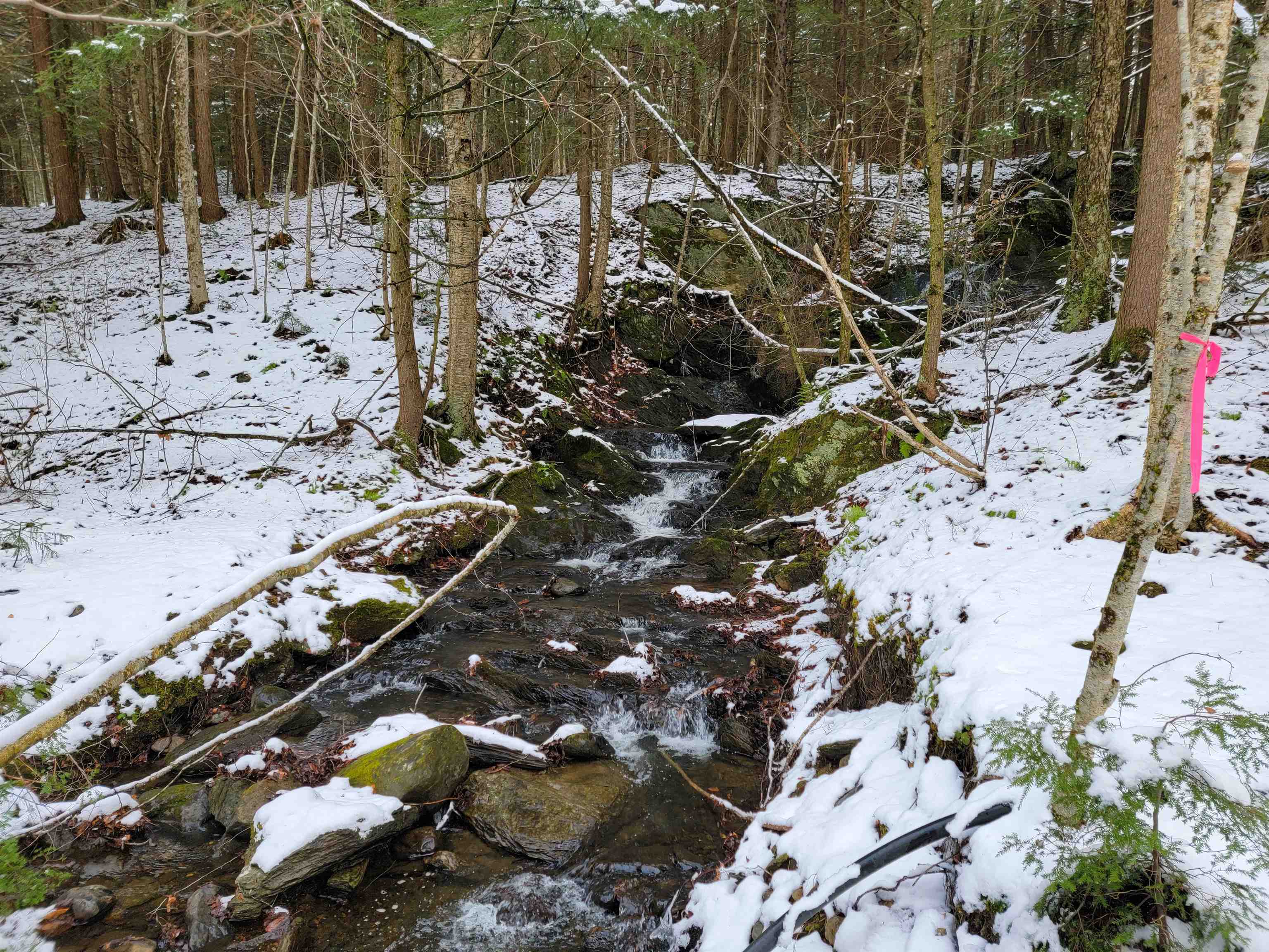 For the first time since 1984 the beautiful Majestic Falls Forest, located in the famous ski town of Stowe Vermont, is finally for sale. This expansive 19.47+/- acre woodland property sits above the VT-100 corridor with views of the valley farms to the north and Mt. Mansfield to the northwest. A very mature woodland is made up primarily of hemlock intermixed with maples and birch. Enjoy the wildlife as the deer move steadily through the property to feed in the abundant fields below. Two tributaries of the Moss Glen Brook flow gently through the property. The property is named for the incredible falls on the eastern tributary, 150+/- feet of beauty, rolling over large rock slabs and boulders. The driveway is a ROW that has been well marked and roughed in up to one of the potential home sites. Two stream crossings will be required and there is a small pond at the entrance to the property. Conveniently, a residential power line runs on the west edge of the property greatly simplifying utility access. The ROW is accessed from the end of a very nice residential neighborhood whose roads are plowed and maintained by the town. The land is gently rolling with many potential areas for a home or homes. The seller does have a preliminary 5 lot subdivision plan from the 80’s that can be provided along with soil test pit results. Stowe is well known for its year-round recreation, shopping, events and the Stowe Ski Resort. An amazing opportunity to create your private estate.