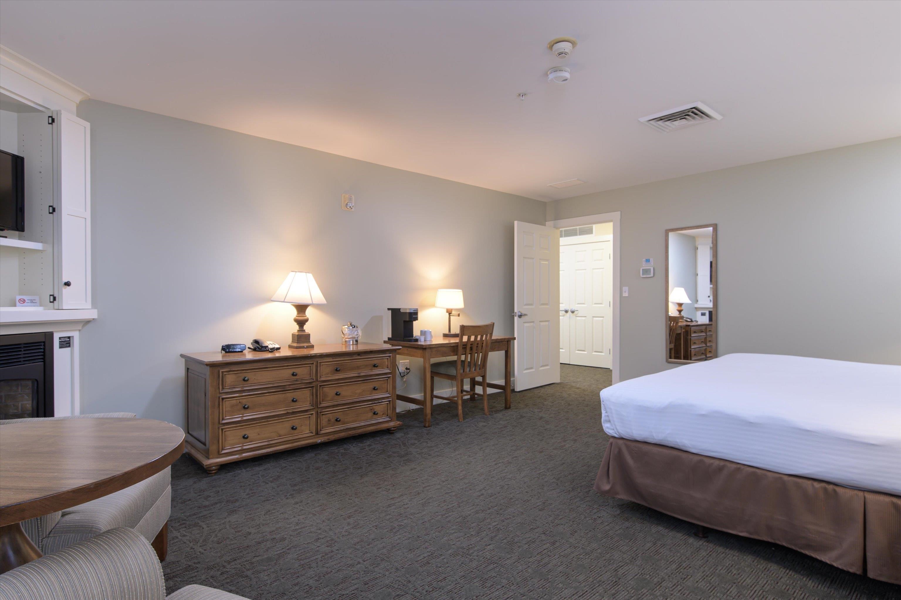 - Draperies, Gas Fireplace, 2 Fireplaces, Furnished, Living/Dining, Primary BR w/ BA, Whirlpool Tub